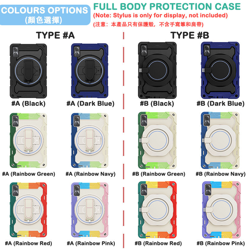 เคสกันกระแทกที่ทนทานสําหรับ Samsung Tab S7 S8 S9 S9FE T870 X710 X510 Tab S7 Plus S8 + S9 + S9FE + S7 FE T730 X810 X800 X610 360° ฝาครอบแท็บเล็ตที่จับขาตั้งแบบหมุนได้