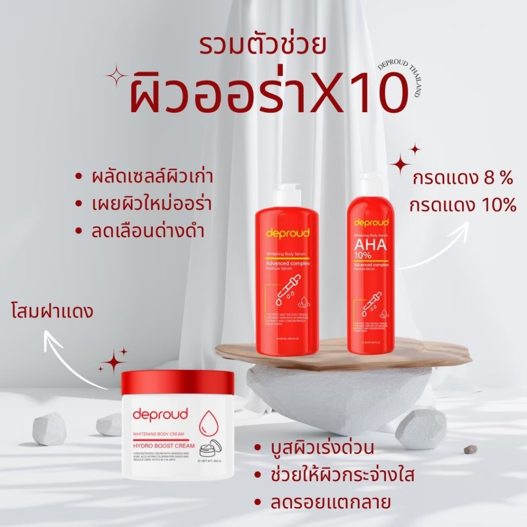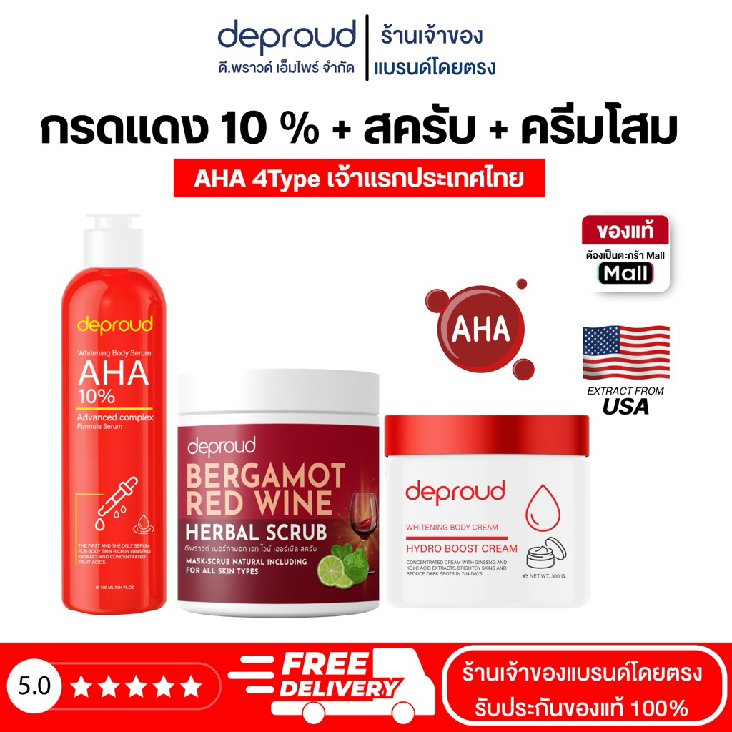 Deproud Official Store - ( ช้อปปี้การันตี ) ดีพราวด์ กรดแดง 8% 10% 12% ครีมโสมแดง สครับ ( สูตรใหม่ )