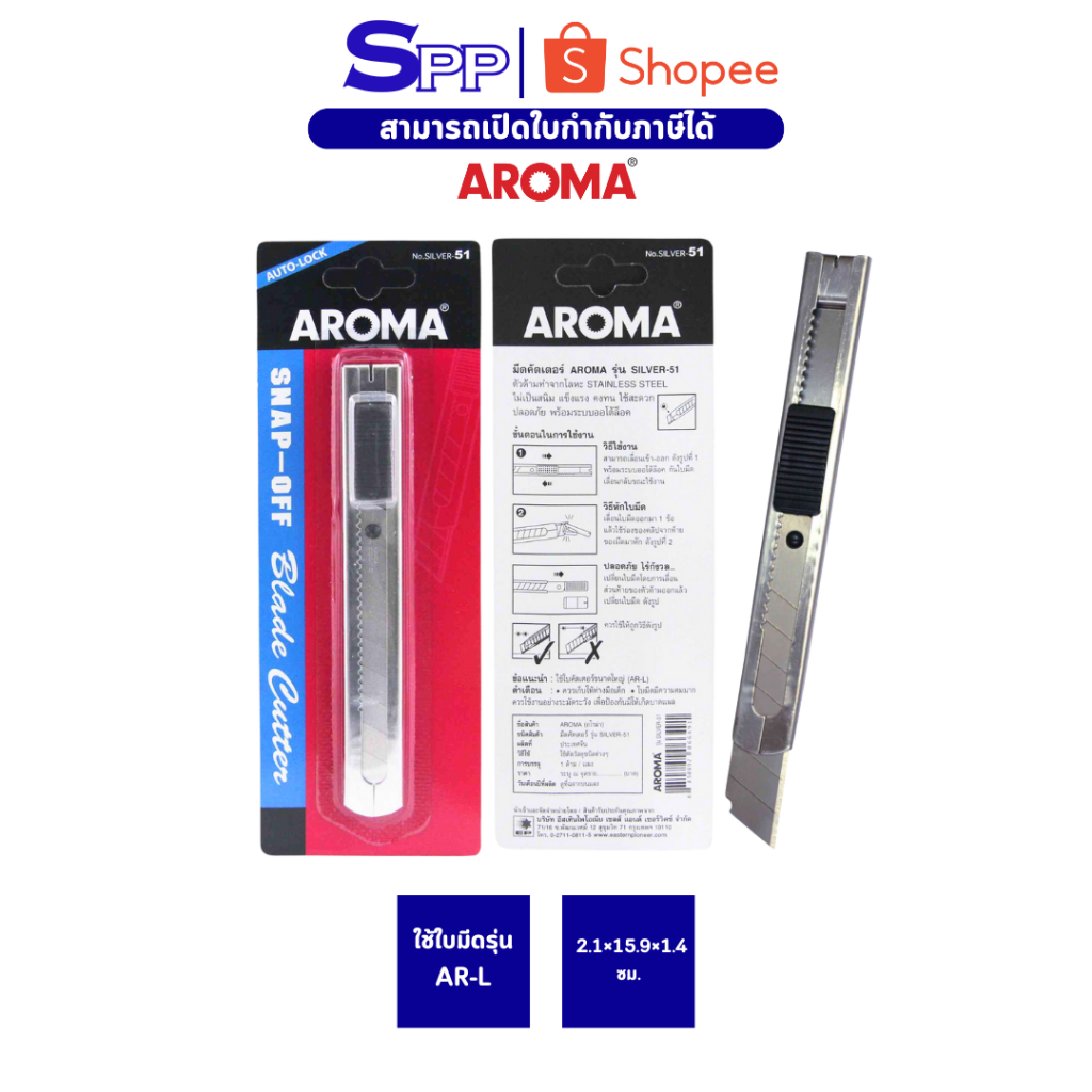 Aroma อโรม่า คัตเตอร์ มีดคัตเตอร์ รุ่น Silver-51จำนวน 1 อัน