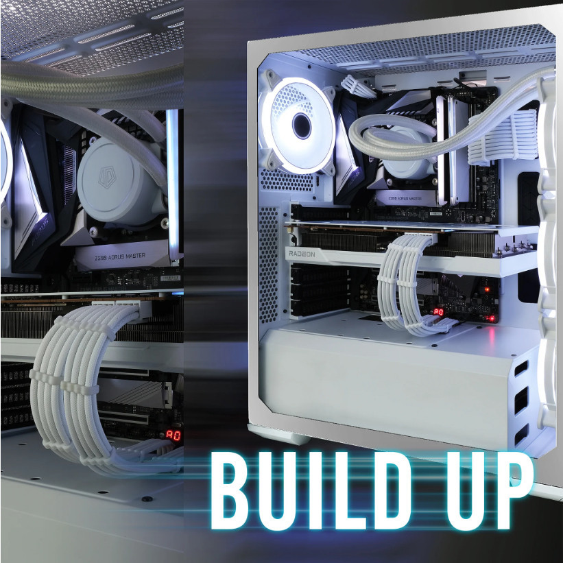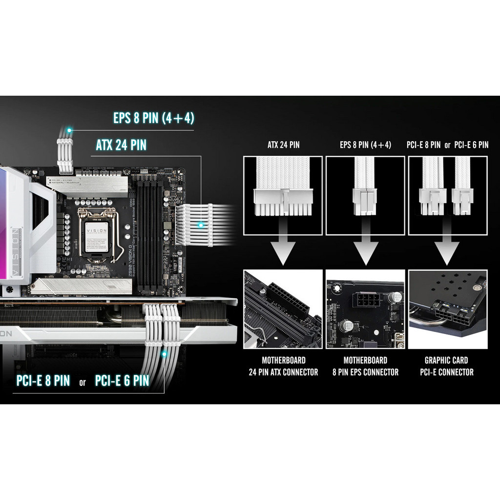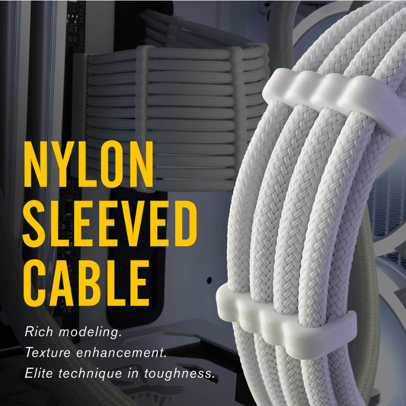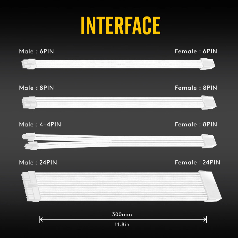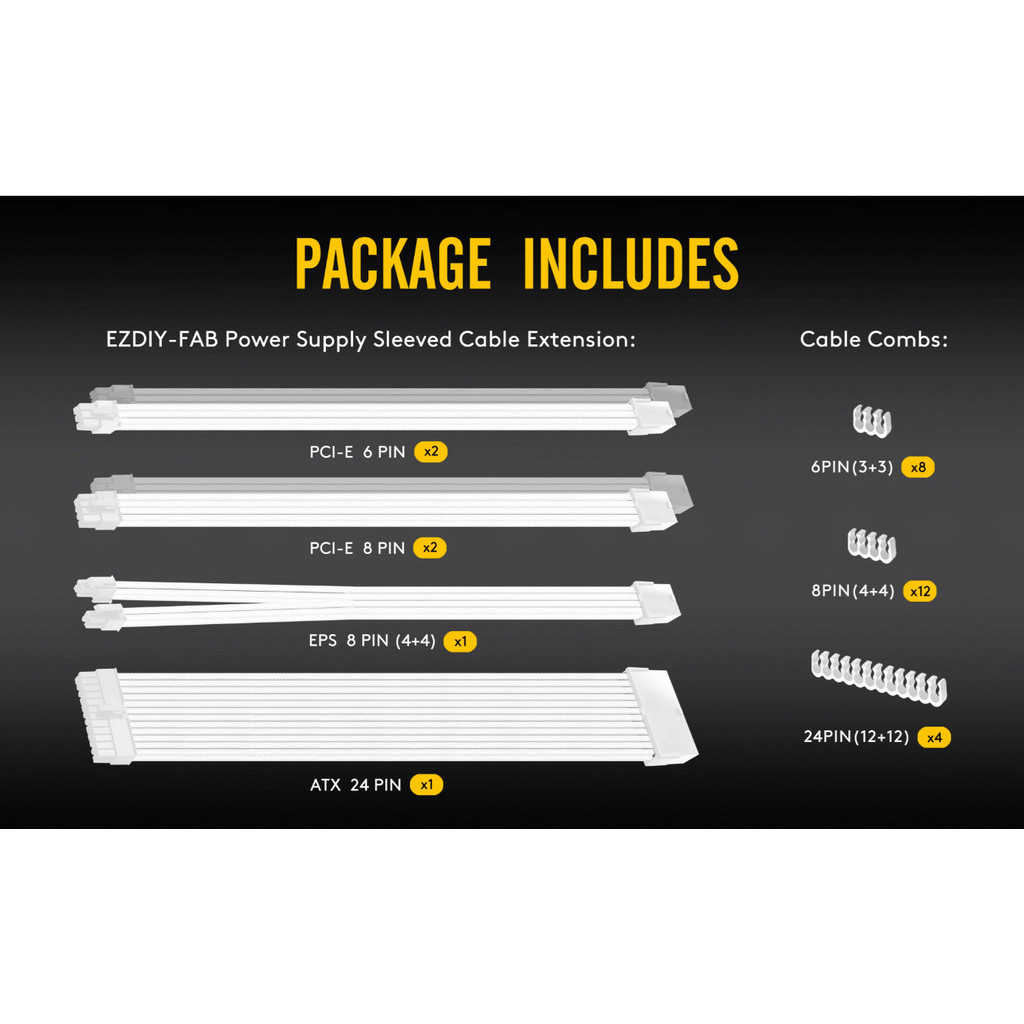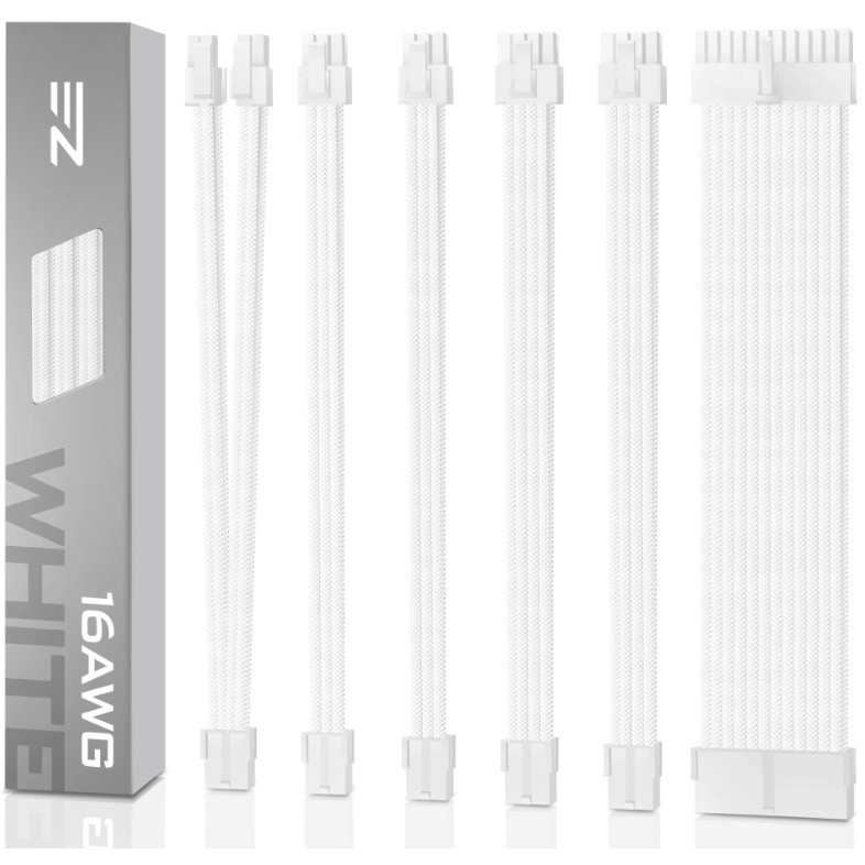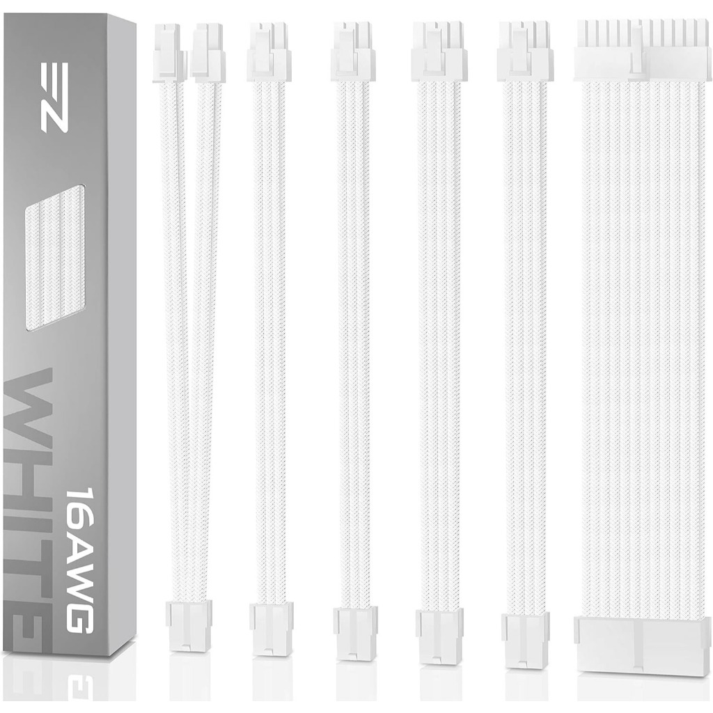 EZDIY-FAB (สายถักแต่งคอม) 16AWG PSU Cable Extension 6 Cables - All White Black (ทั้งเซ็ต)