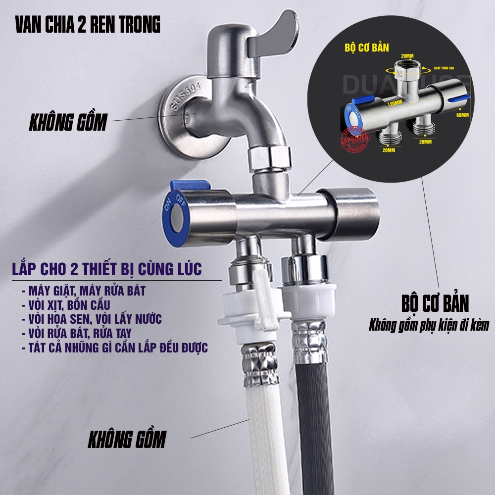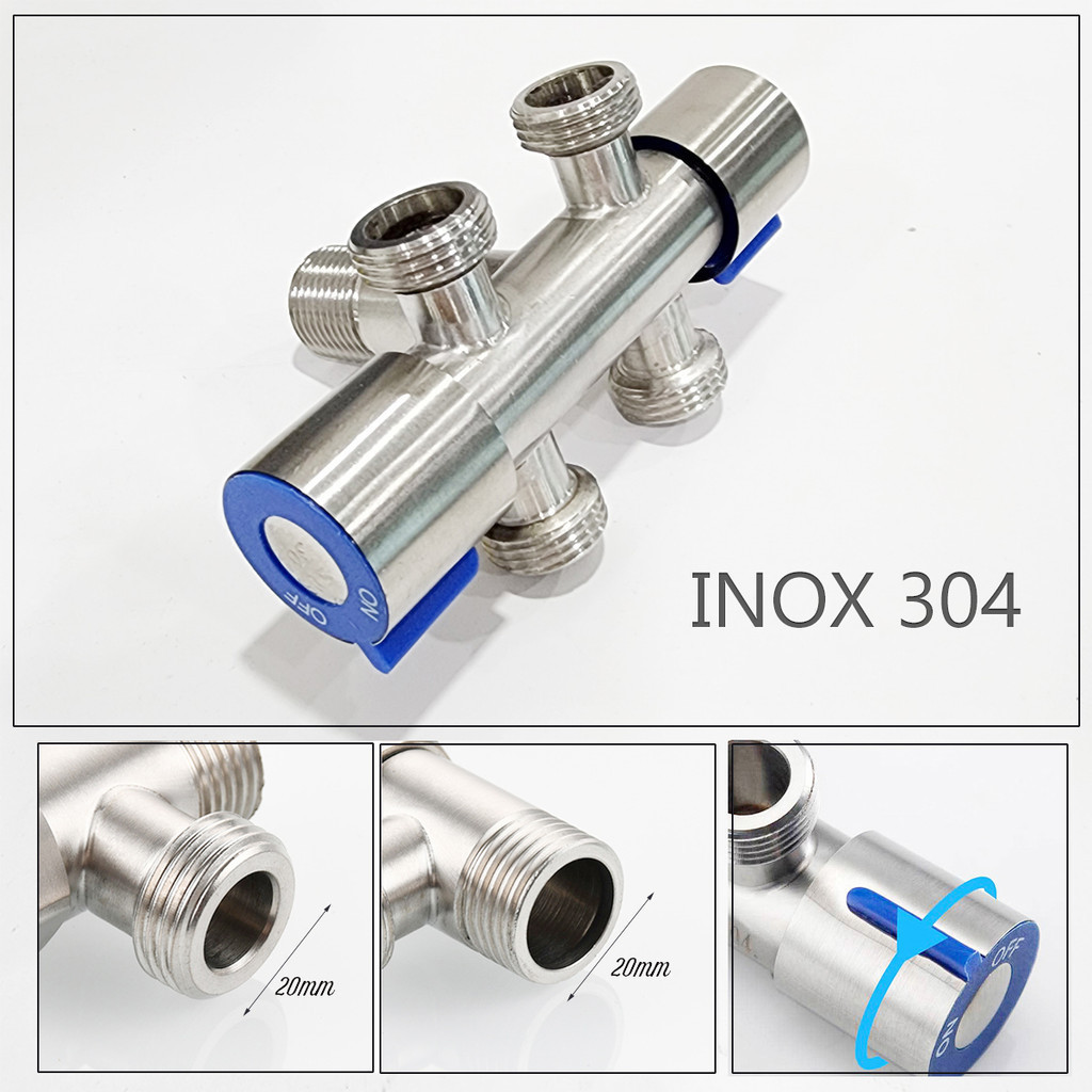 วาล์วน้ําแบ่ง 2, 3, 4 ช่องแยกเปิดปิดออก วัสดุสแตนเลส 304 เกลียวนอก 20 มม. 21 มม. บ้าน มิน