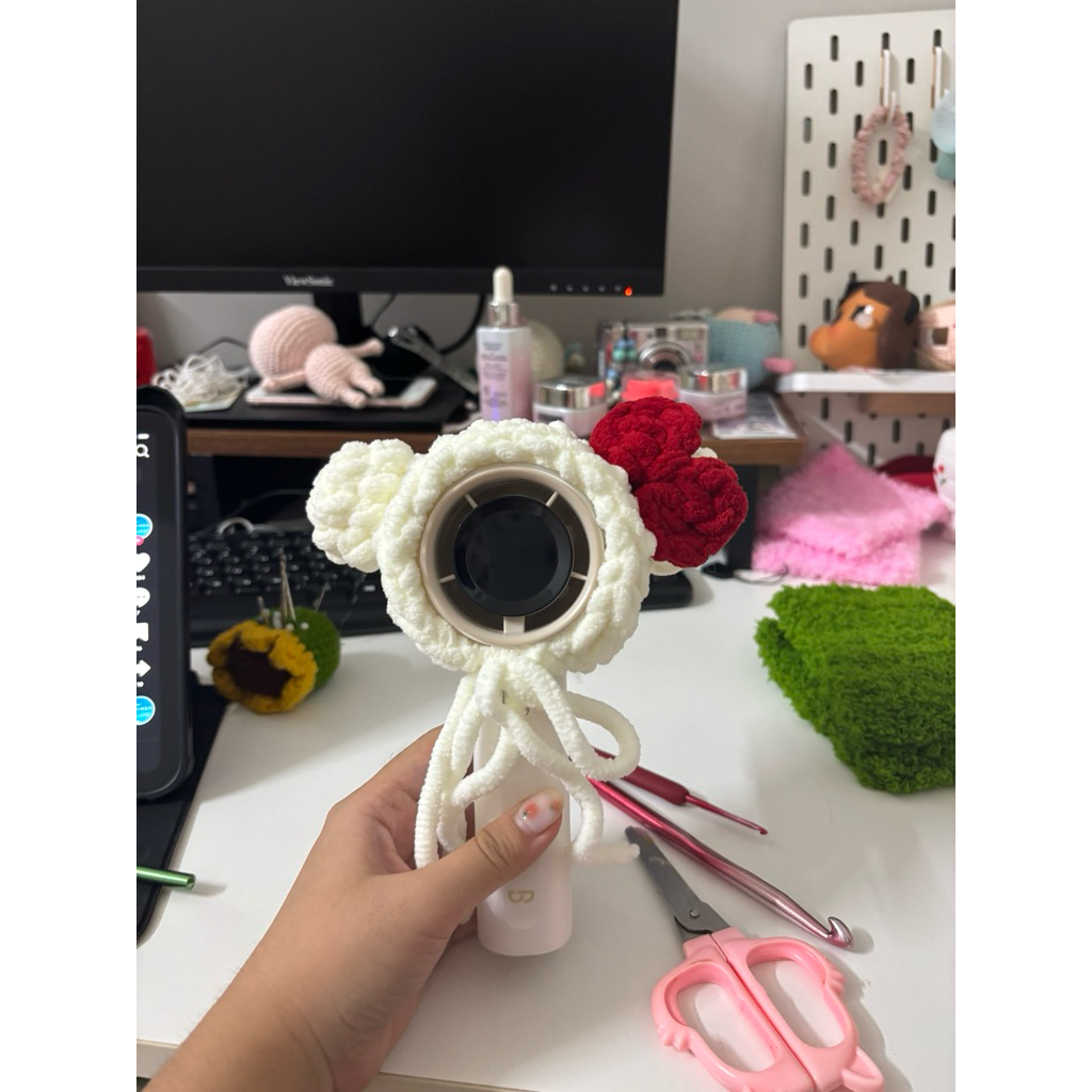 ผ้าคลุมพัดลมมือขนสัตว์แฮนด์เมดน่ารักหลายสไตล์เคสพัดลมมือขนสัตว์กํามะหยี่หลากสี