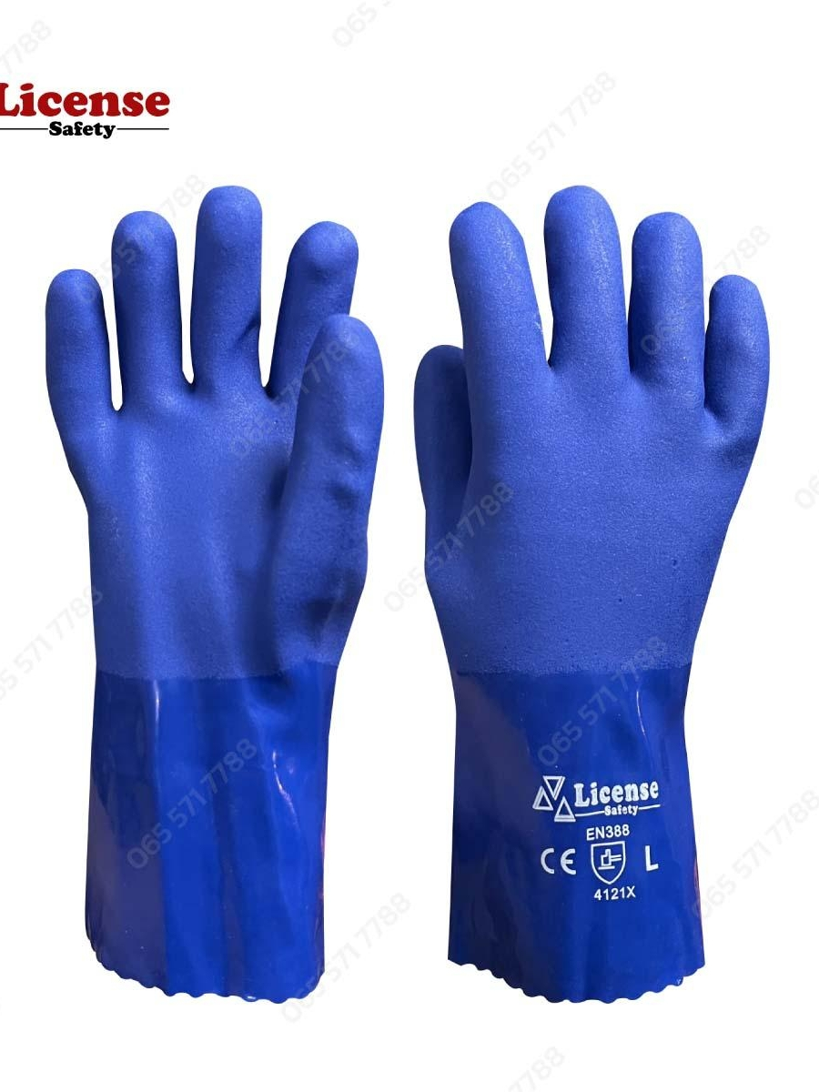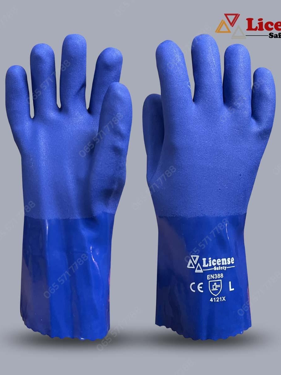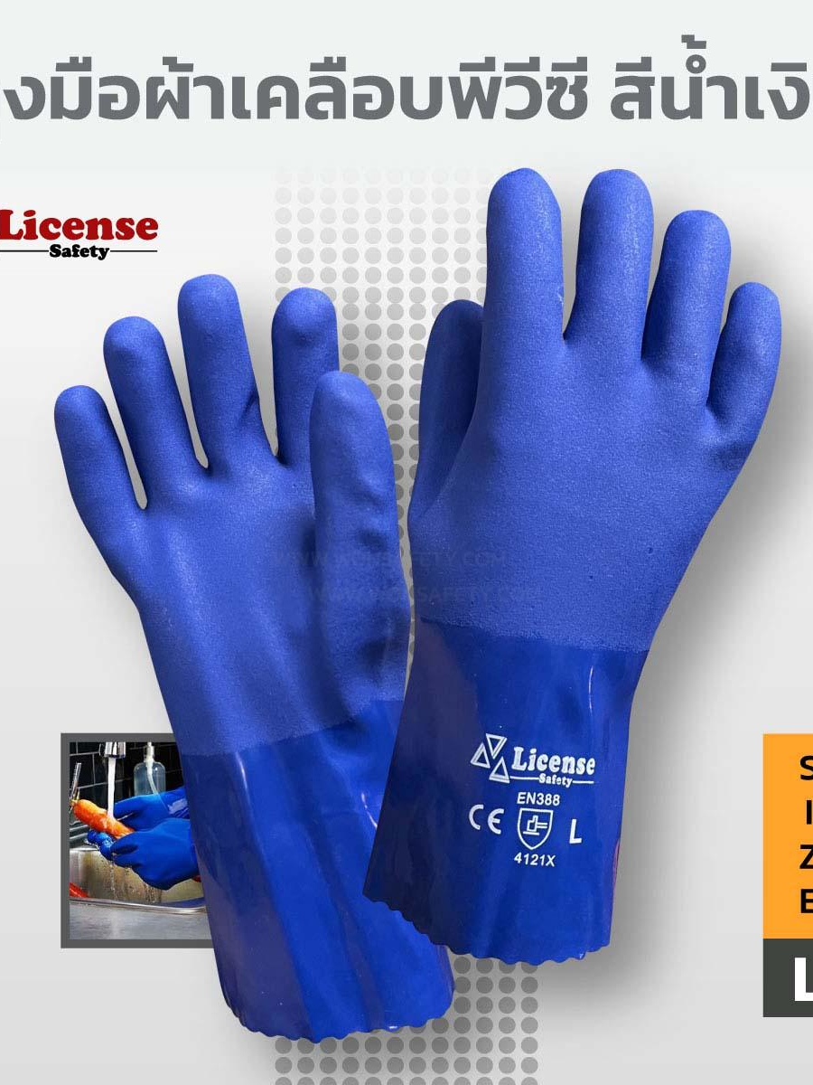 ถุงมือผ้าเคลือบพีวีซี สีน้ำเงิน (PVC glove Cotton lining ) รุ่น PVC8065 ยี่ห้อ License(1คู่/แพ็ค)