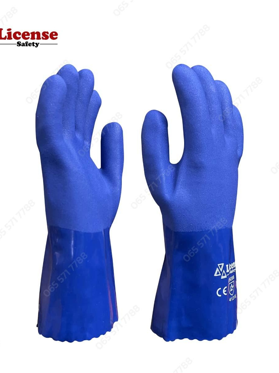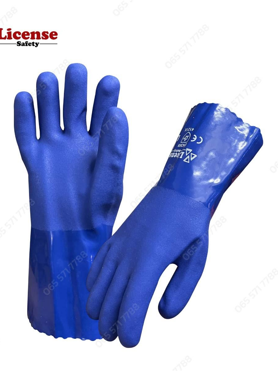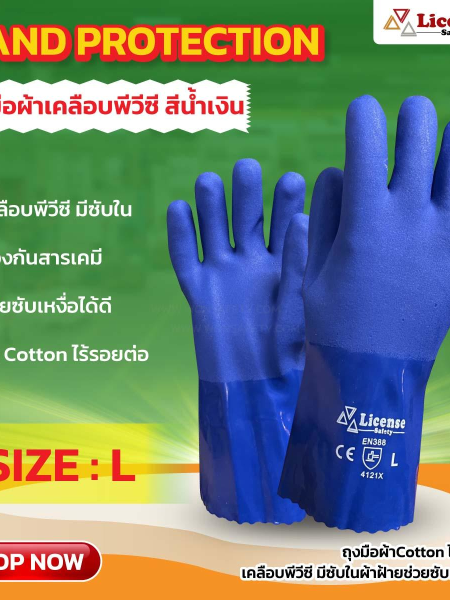 ถุงมือผ้าเคลือบพีวีซี สีน้ำเงิน (PVC glove Cotton lining ) รุ่น PVC8065 ยี่ห้อ License(1คู่/แพ็ค)