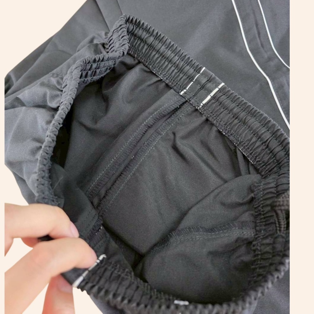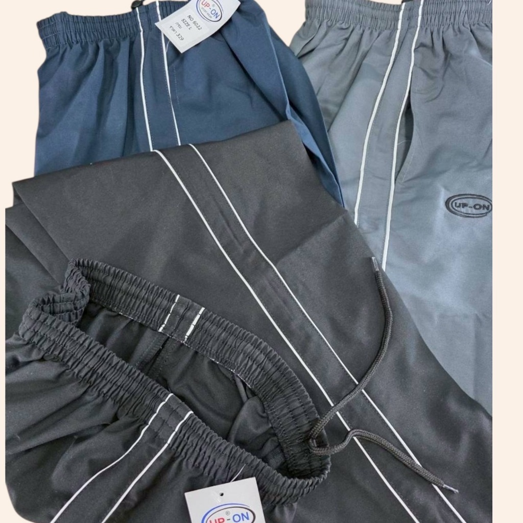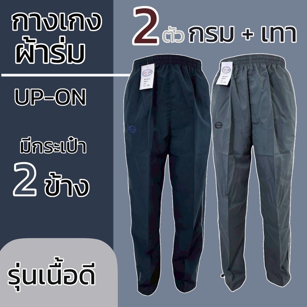 กางเกงผ้าไมโคร ขายาว กางเกงผ้าร่ม ขาสามารถรูดได้ สีดำ แถบ2เส้นสีขาว ยี่ห้อ UP-ON มีกระเป๋า2ข้าง ไม่มีซิป M20