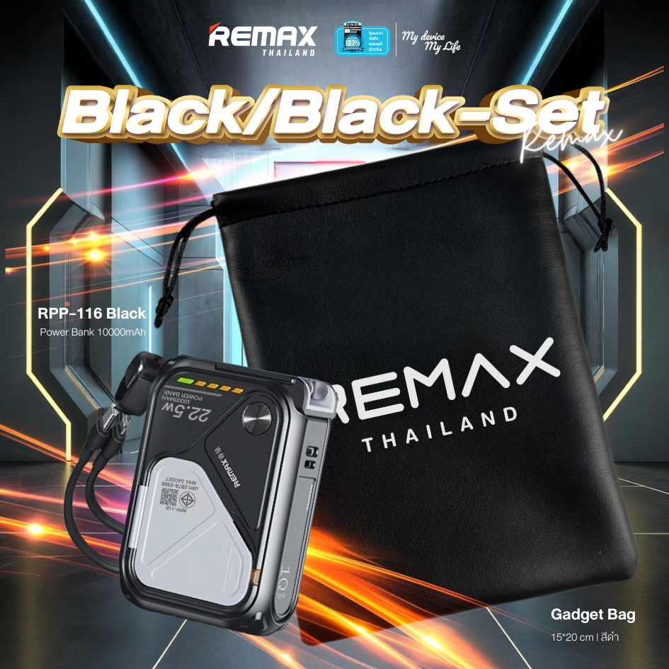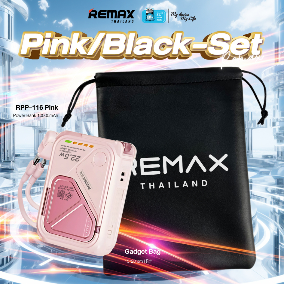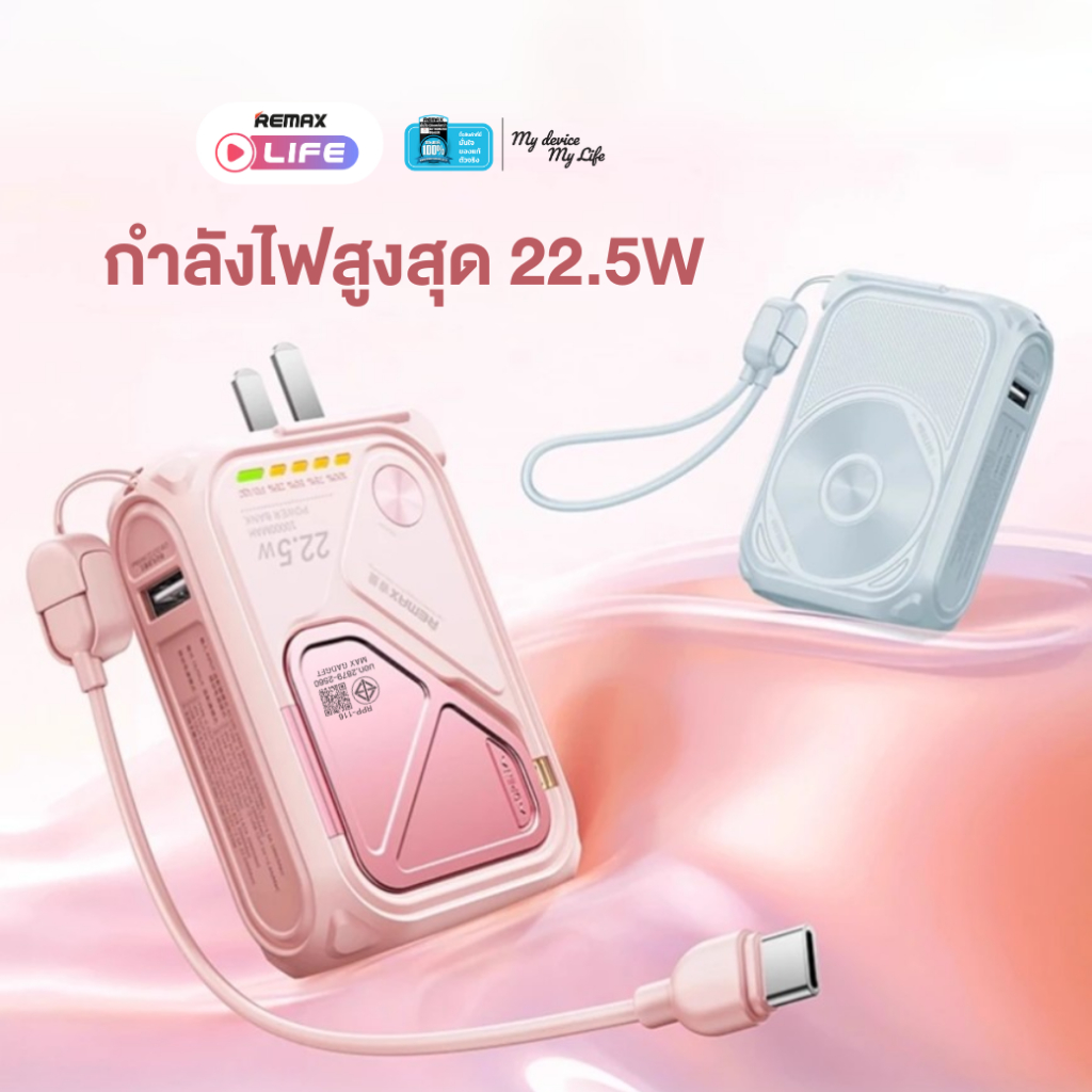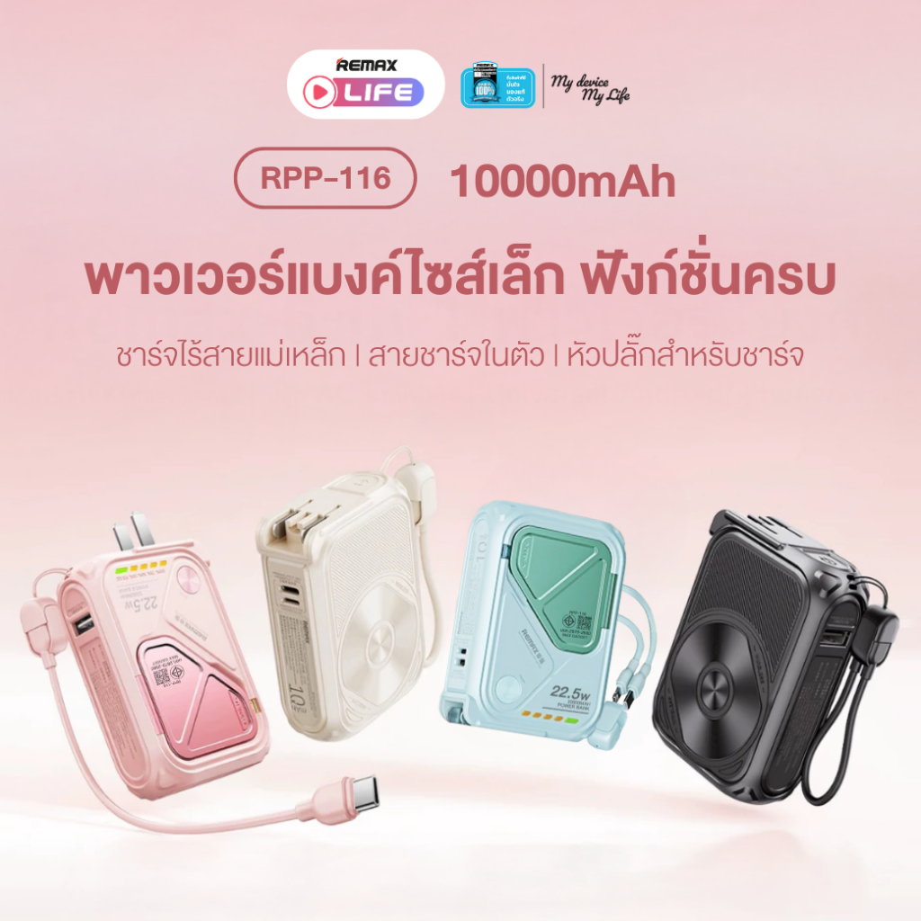 [ CCC ] Remax Wireless Power Bank 10000mAh รุ่น RPP-116 แบตสำรอง มีสายในตัว ชาร์จไว 15W มีประกันศูนย์ไทย มาตรฐาน มอก.