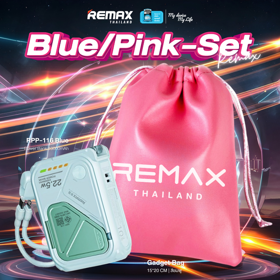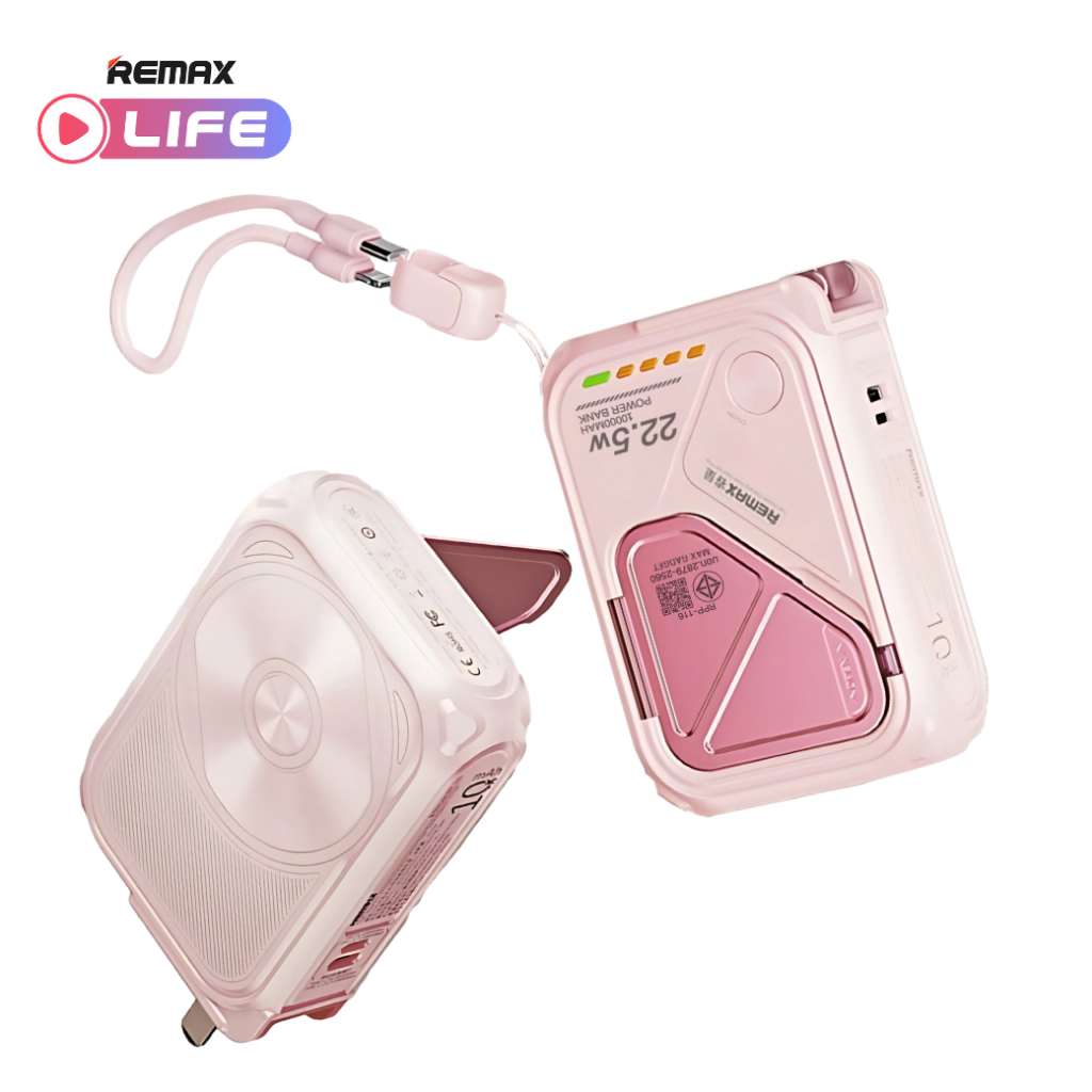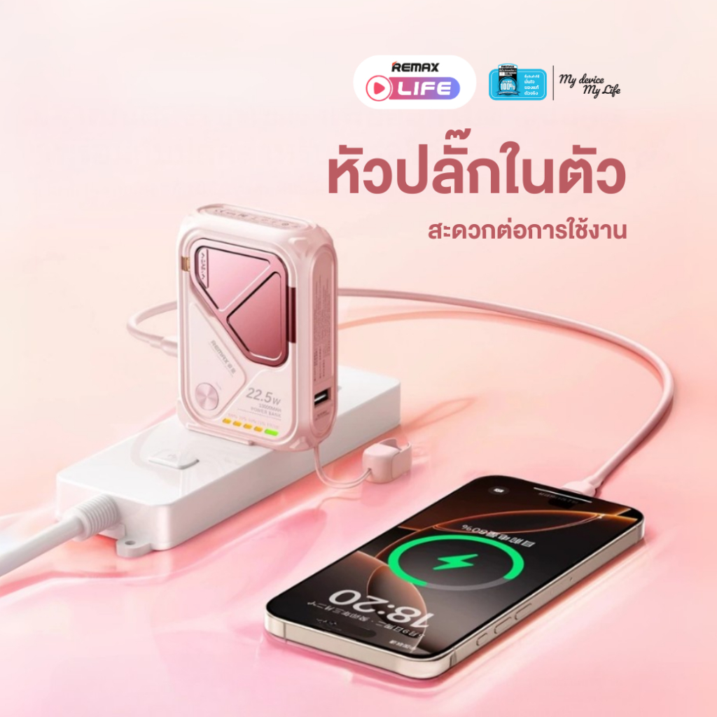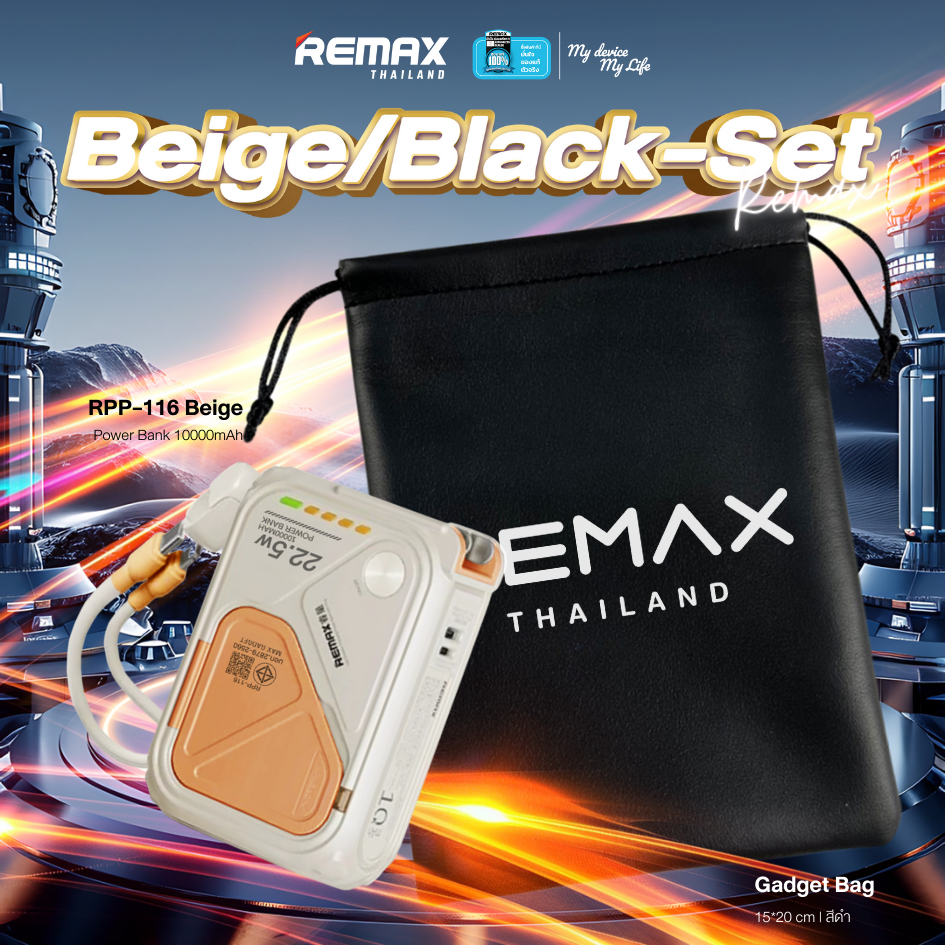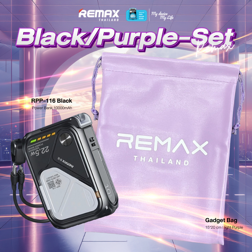 [ CCC ] Remax Wireless Power Bank 10000mAh รุ่น RPP-116 แบตสำรอง มีสายในตัว ชาร์จไว 15W มีประกันศูนย์ไทย มาตรฐาน มอก.