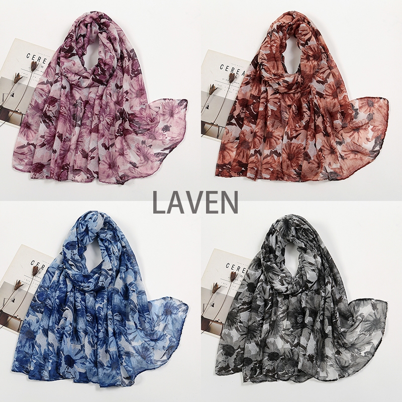 Laven สีสันนุ ่ มเหนียวฮิญาบมุสลิมฮิญาบผ ้ าพันคอดอกไม ้ Headscarf ฮิญาบผู ้ หญิงดอกไม ้ พิมพ ์ ฮิญาบฤดูร ้ อนบางผ ้ าคลุมไหล ่