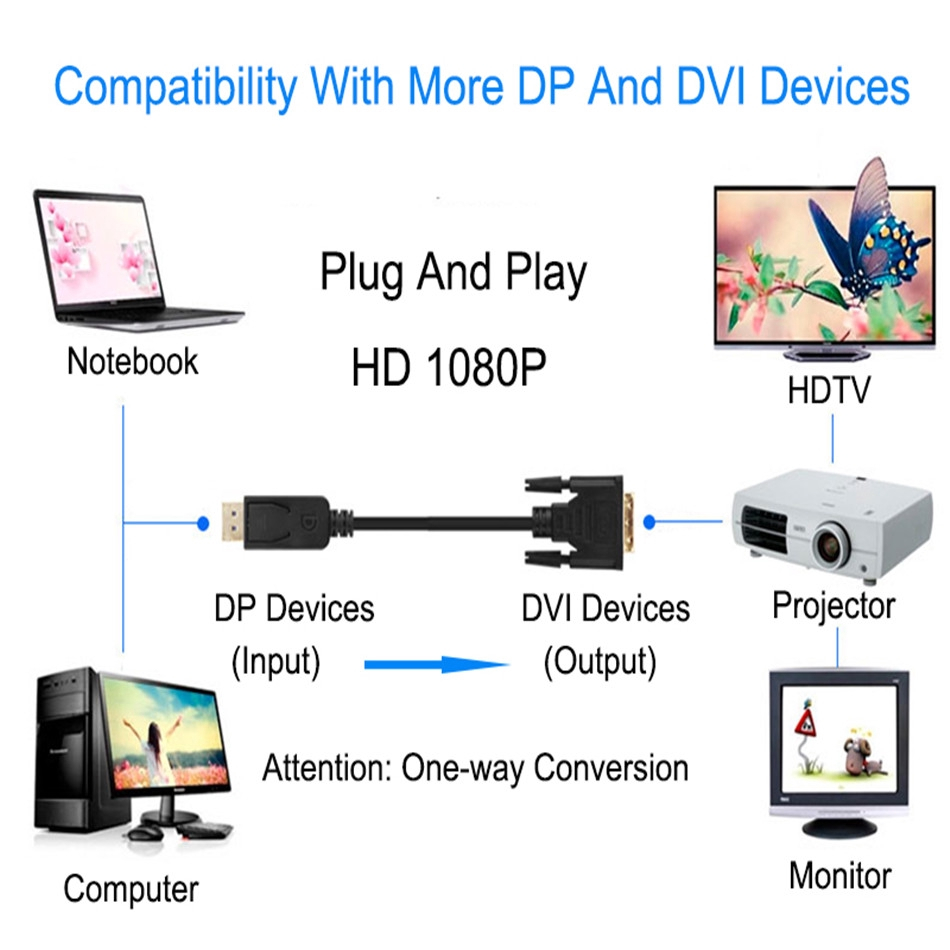 Dp Display-port to DVI Cable 1.8M DP to DVI Adapter Converter Displayport ไปยัง DVI Out สําหรับคอมพิวเตอร์