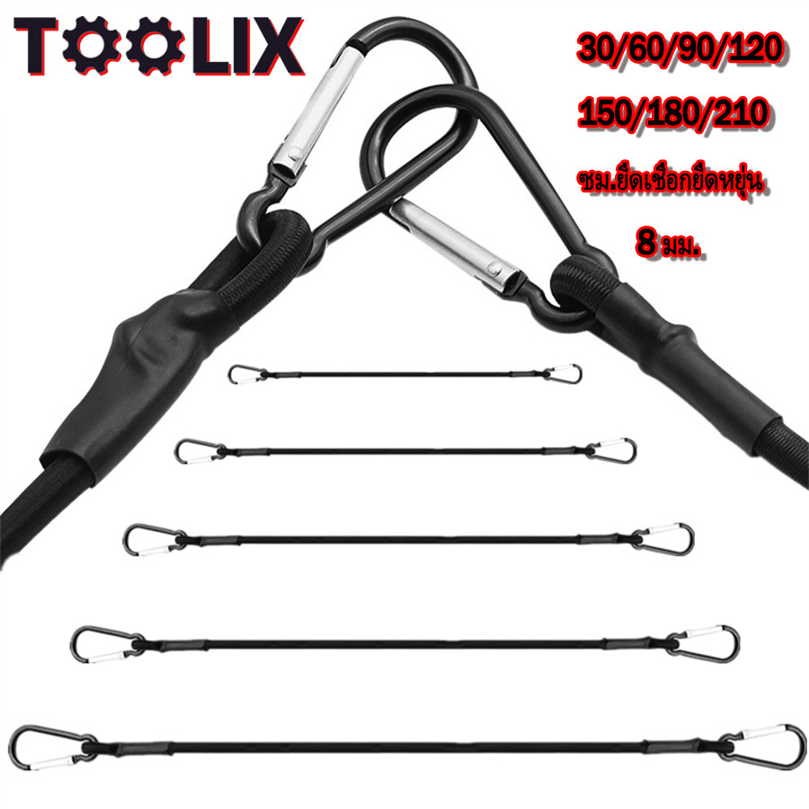 30/60/90/120/150/180/210 ซม.ยืดเชือกยืดหยุ่น 8 มม.สายบันจี้จัมตะขอน้ําหนักเบาจักรยานผูกรถกระเป๋าเดินทางบรรจุหลังคาแร็คสา