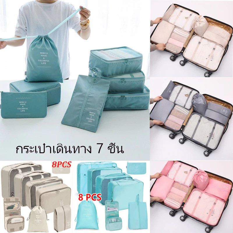 7 ชิ้น ออแกไนเซอร์ กระเป๋าเก็บของ ถุงเก็บซิปหนา กระเป๋าเดินทางชุดบรรจุกรณีการจัดเก็บ ชิ้นกระเป๋าจัดระเบียบใส่เสื้อผ้า