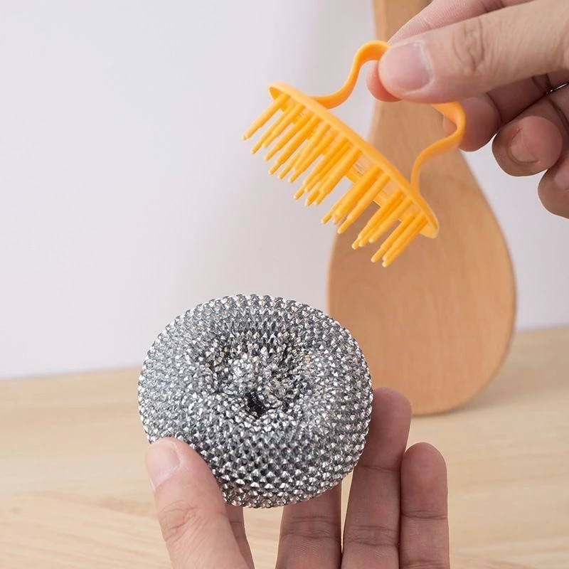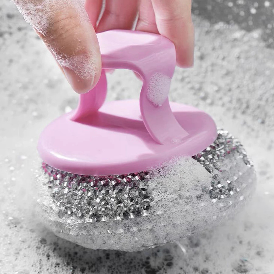 ขัดหม้อ แปรงขัดหม้อ ฝอยขัดหม้อมีที่กดน้ำยา ฝอยขัดหม้อมีด้ามจับ ฝอยขัดหม้อสแตนเลส ขัดกระทะ 1 ชิ้น