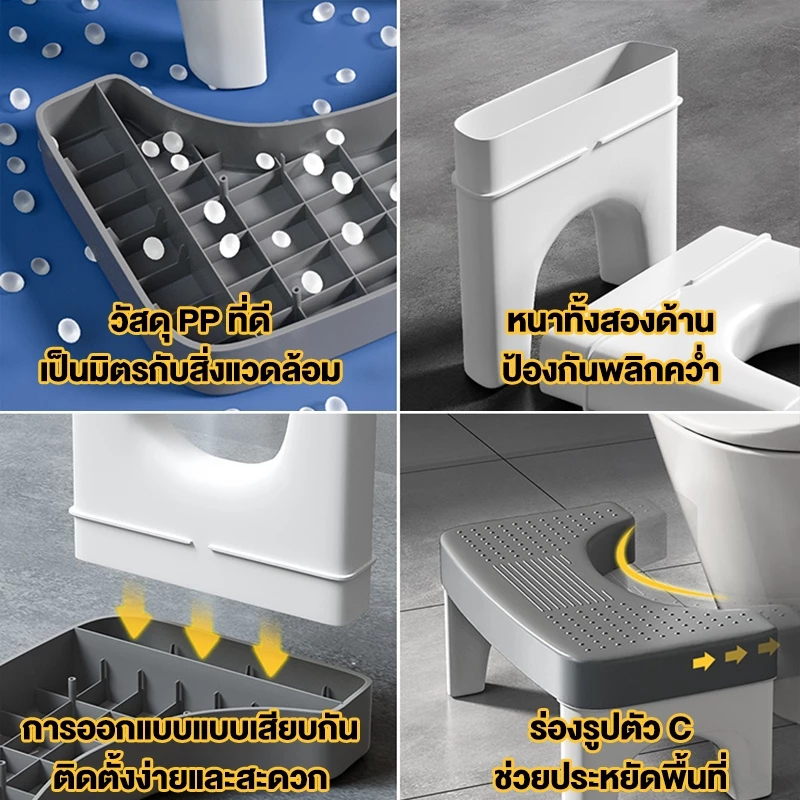 BLIVO【กันลื่น】เก้าอี้วางเท้า เก้าอี้นั่งส้วม ที่วางเท้า ถอดออกได้ รักษามุม 35° Toilet Stool มีที่รองกันลื่น