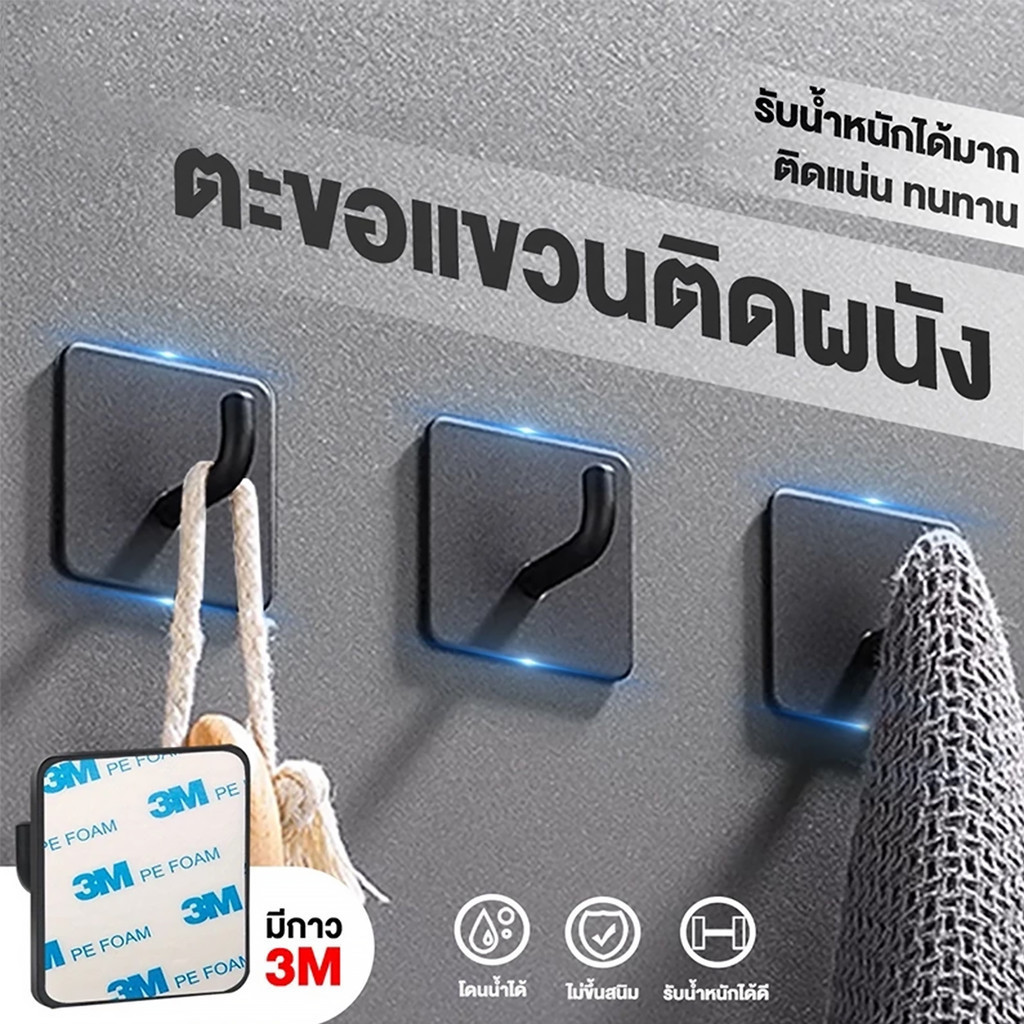 ตะขอแปะผนัง ตะขอติดผนังสแตนเลส ติดผนัง กาวเหนียว ติดทน ไม่ลอก กันน้ำ รับน้ำหนักได้ดี สเตนเลส304 เหมาะสำหรับห้องน้ำ