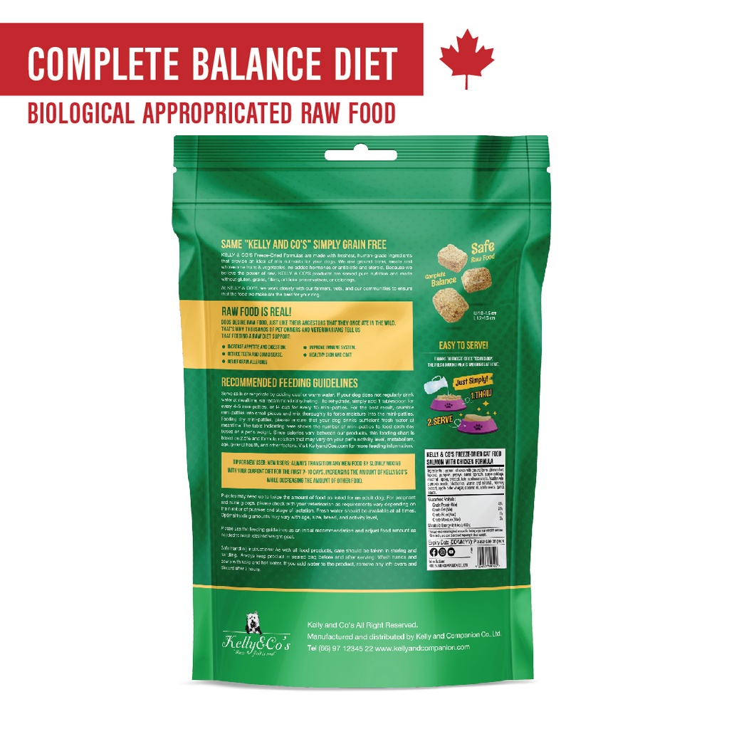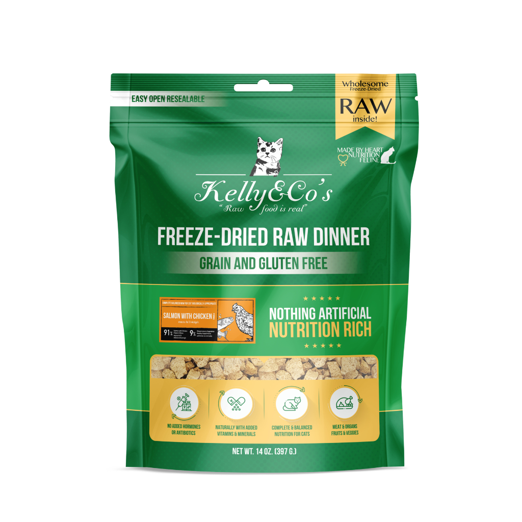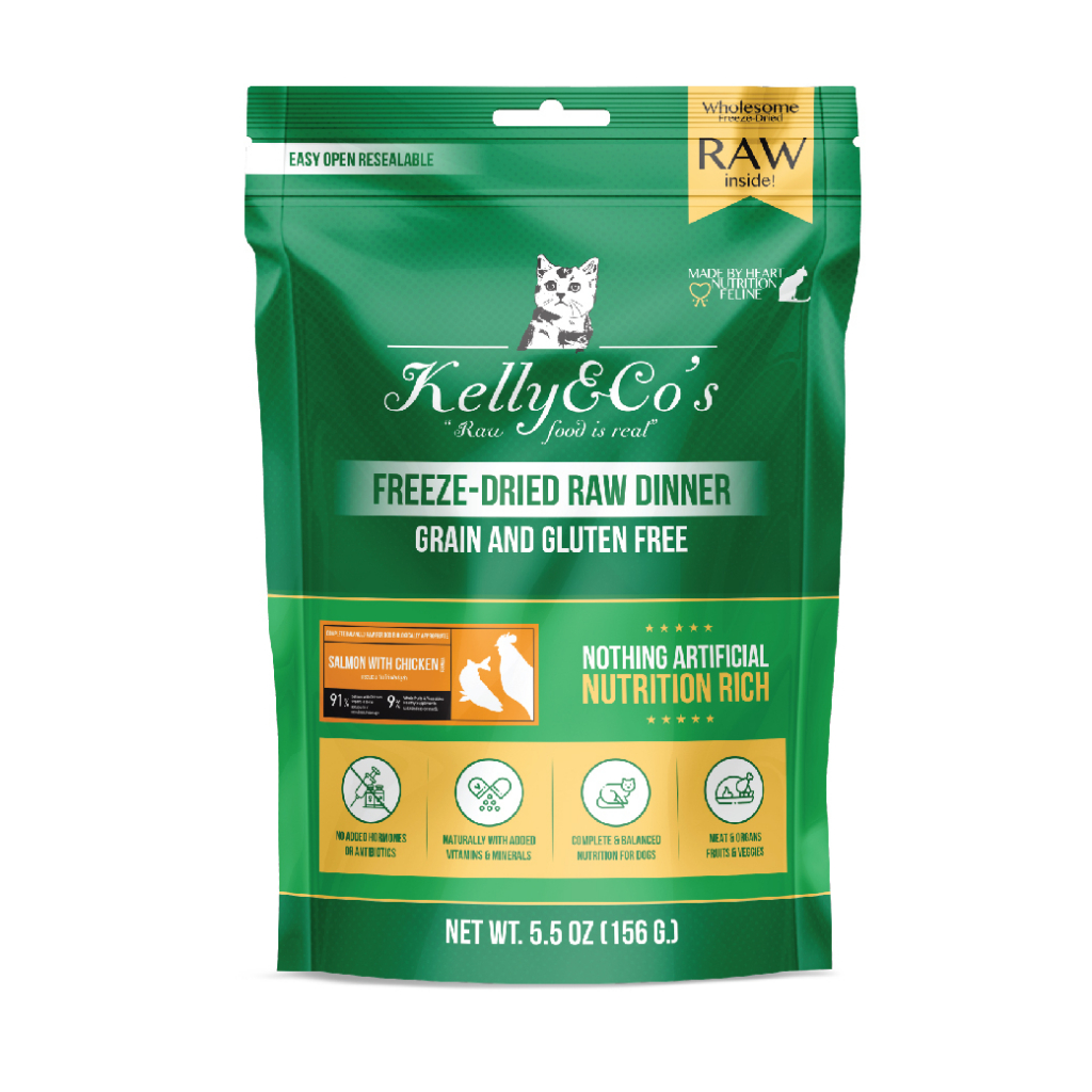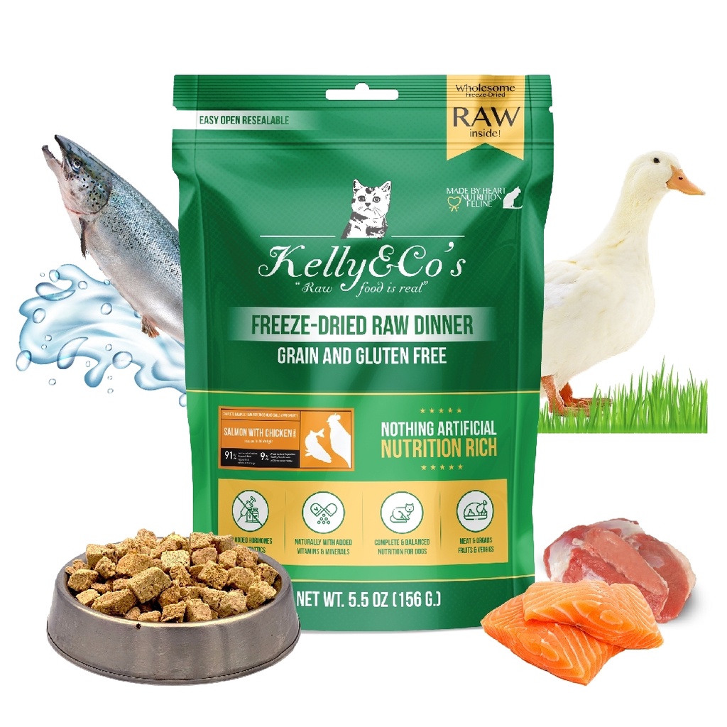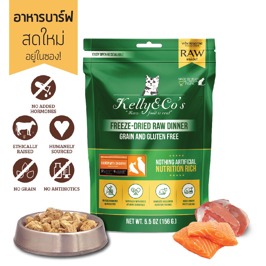 เคลลี่แอนด์โค อาหารบาร์ฟฟรีซดราย สูตรปลาแซลมอนและไก่ผสมผักและผลไม้รวม สำหรับแมว