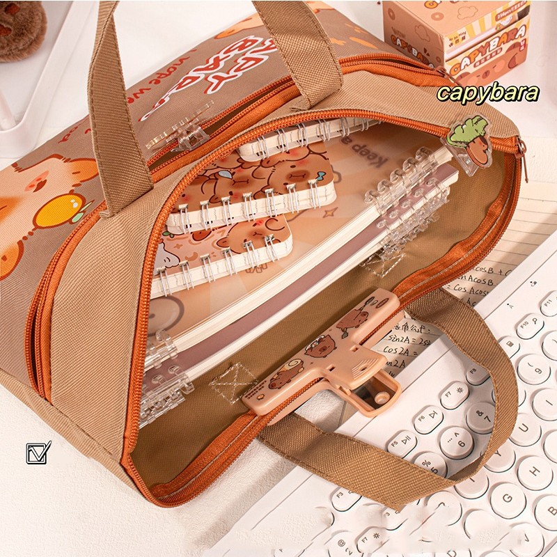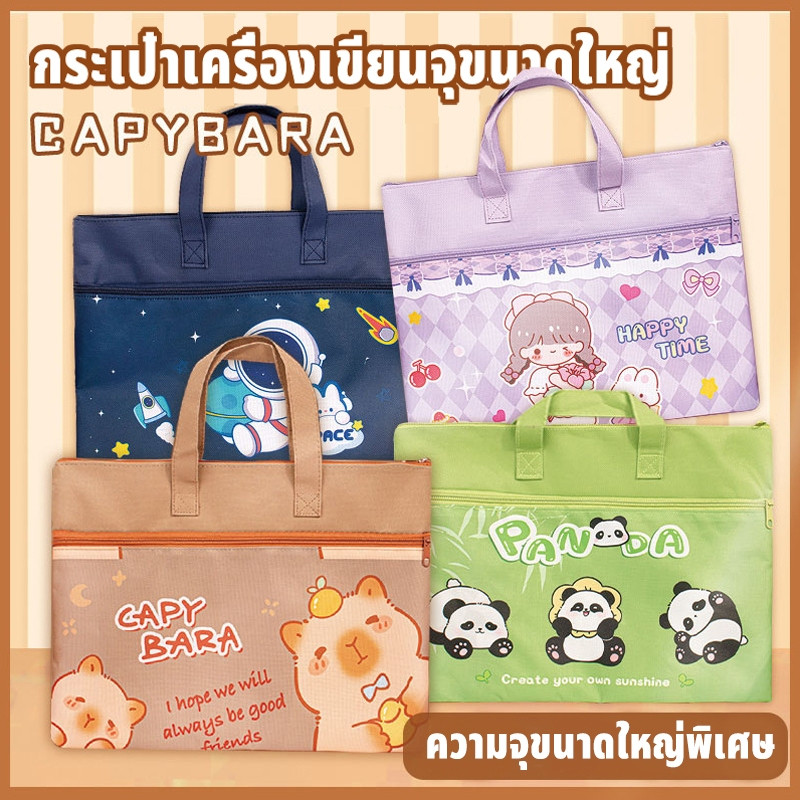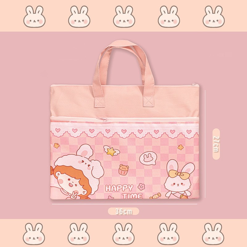 ❤ถุงเก็บเครื่องเขียน กระเป๋าใส่เอกสาร พิมพ์ลายการ์ตูนสุดน่ารัก กระเป๋าถือสไตล์ซิป วัสดุกันน้ำ