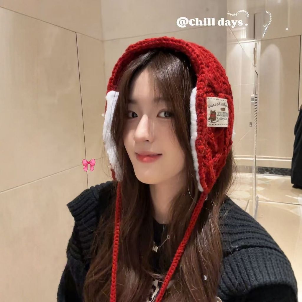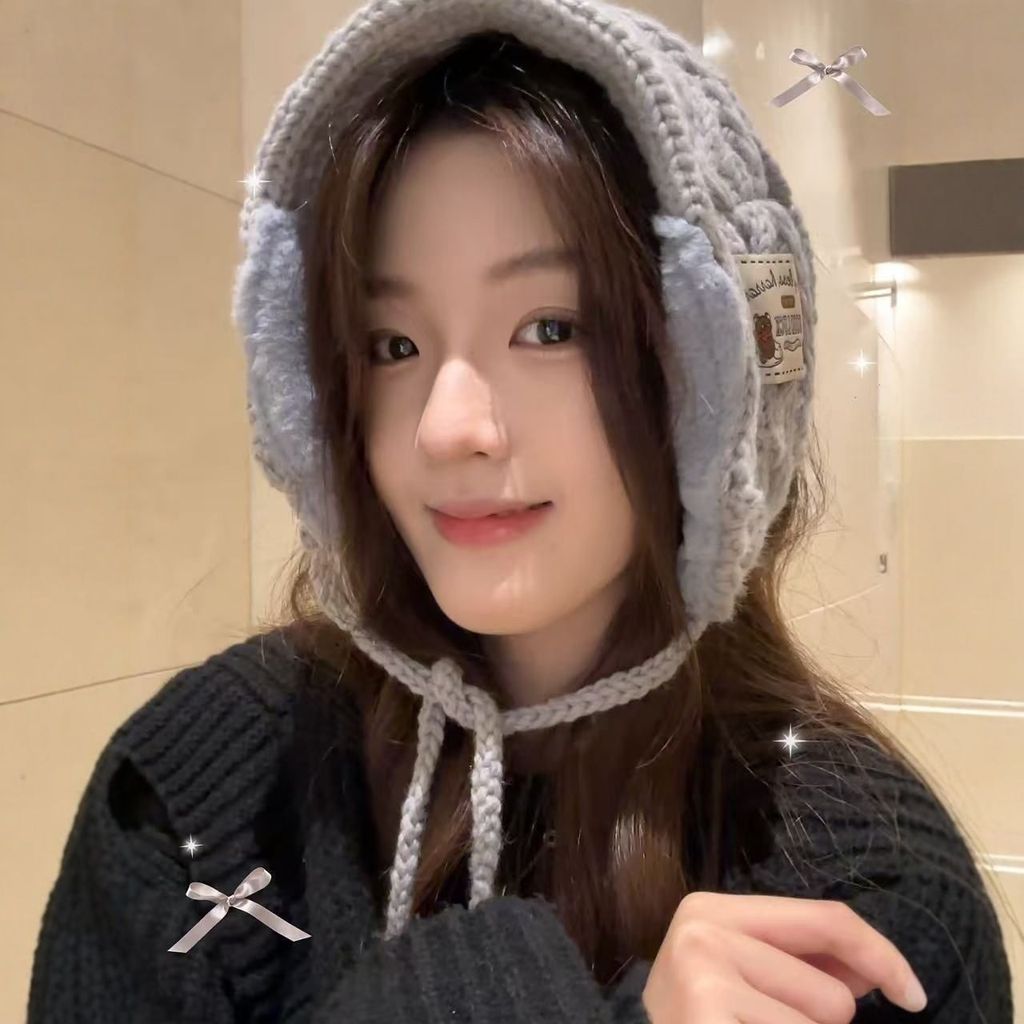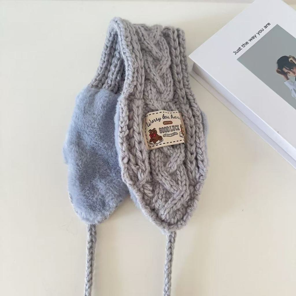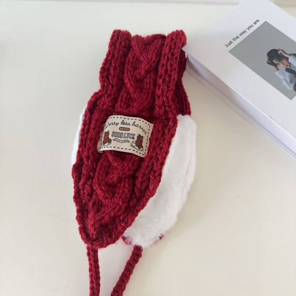[ข้อเสนอพิเศษ] ที่ปิดหูกันหนาวหมีสไตล์ใหม่ฤดูใบไม้ร่วงฤดูหนาวขนสัตว์แฮนด์เมดถักป้องกันหูที่ปิดหูกันหนาวกันลมอบอุ่นสาวน่ารักออกนอกบ้านขี่จักรยานอินเทรนด์วันหย