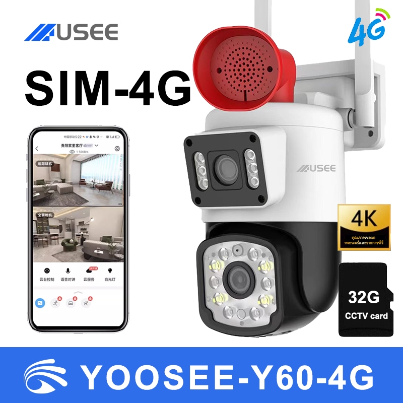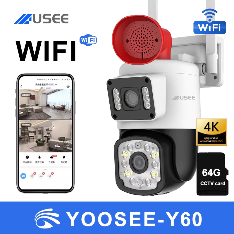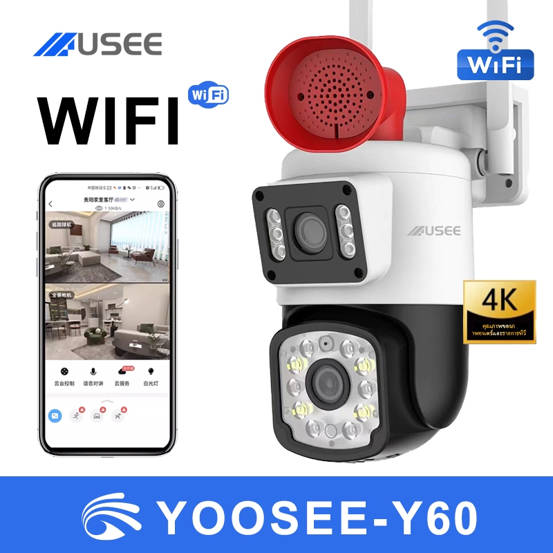 USEE Y60 yoosee กลองวงจรปิดไร้สา กล้องสองเลนส์ WiFi หน้งจอ คู่2กล้อง HD 6ล้าน พิกเชล กลงคืนภาพสี CCTVกล้องวงจรปิดไร้สา