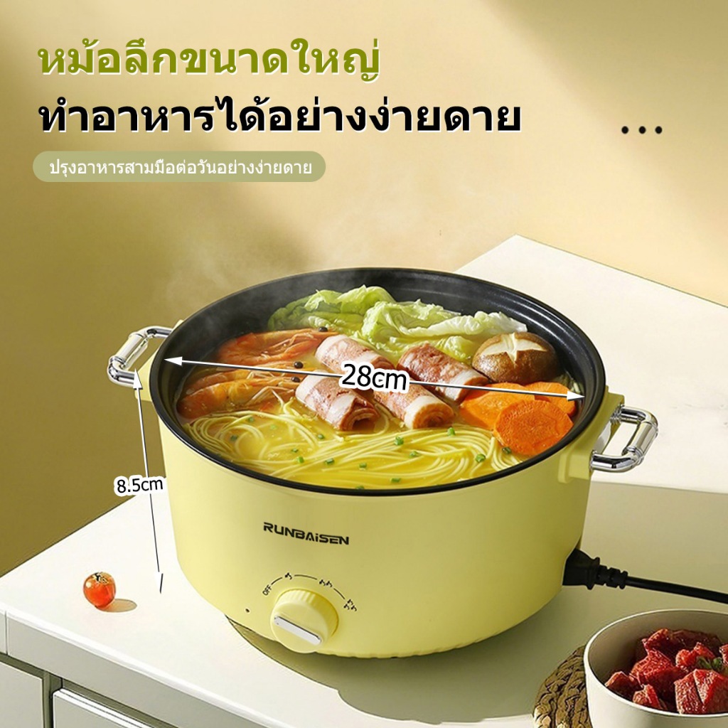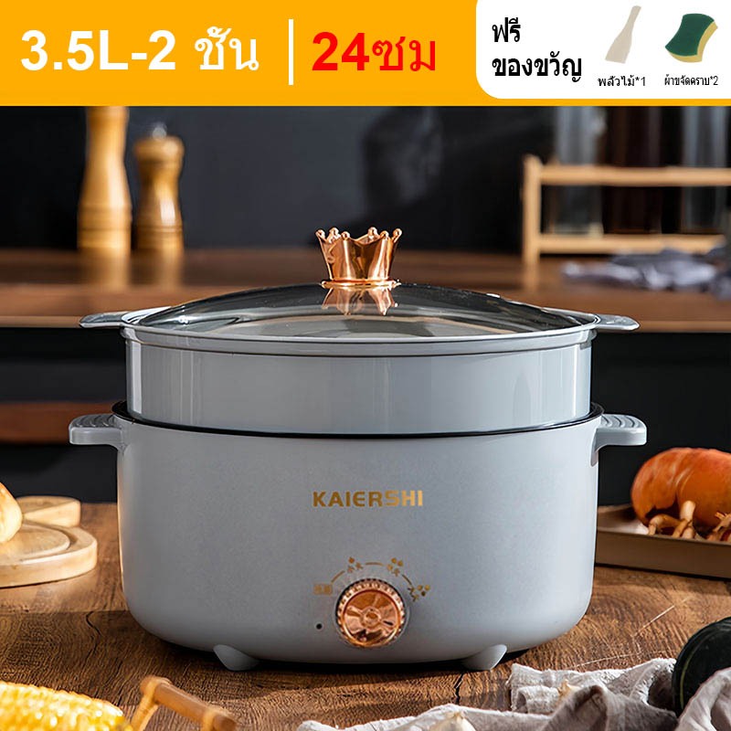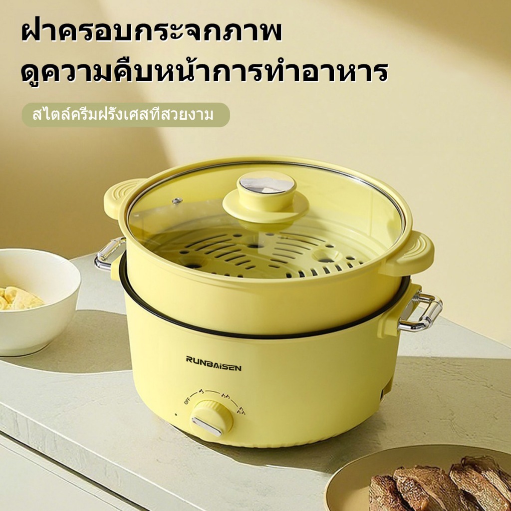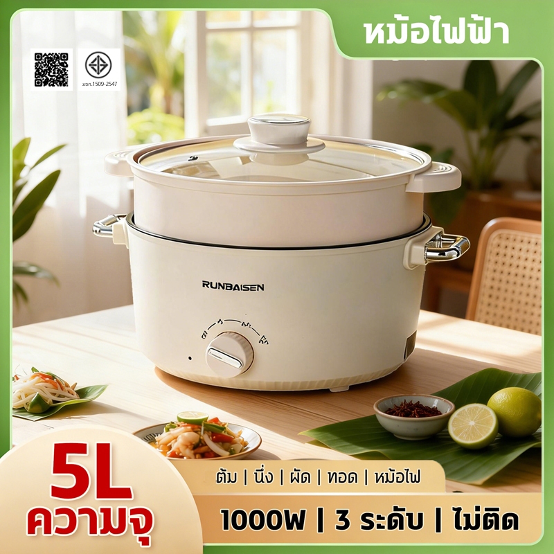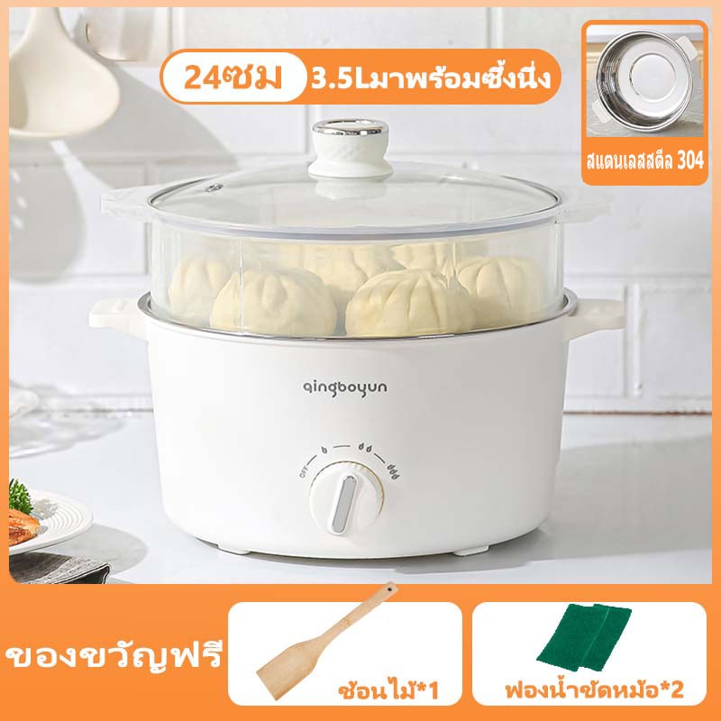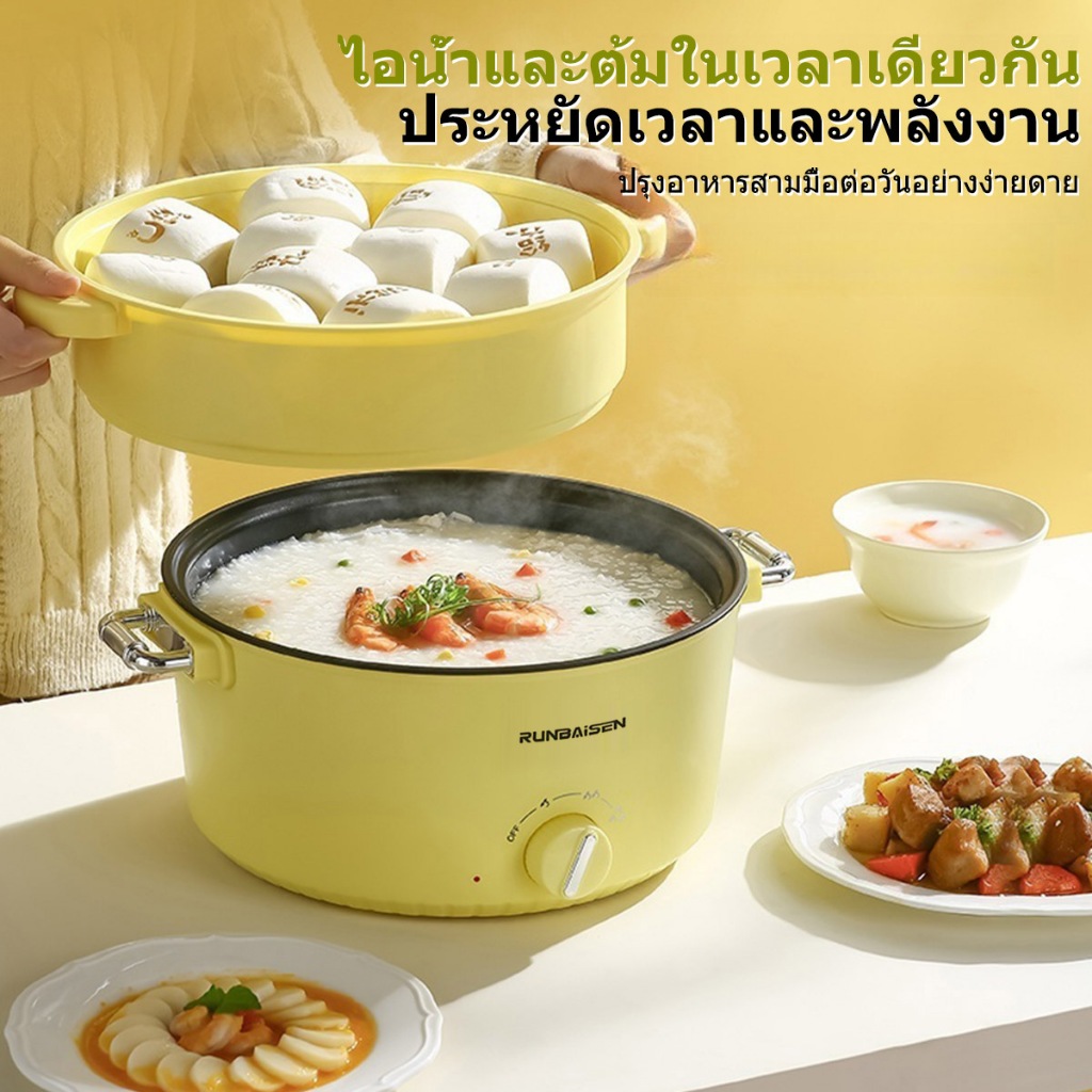 หม้อไฟฟ้า ความจุขนาดใหญ่ 5 ลิตร หม้อไฟฟ้ามัลติฟังก์ชั่น 1000W ไม่ติดหม้อ หม้อนึ่งไฟฟ้า 2 ชั้น หม้อต้มไฟฟ้า 28CM