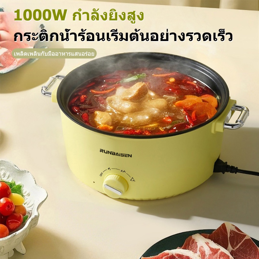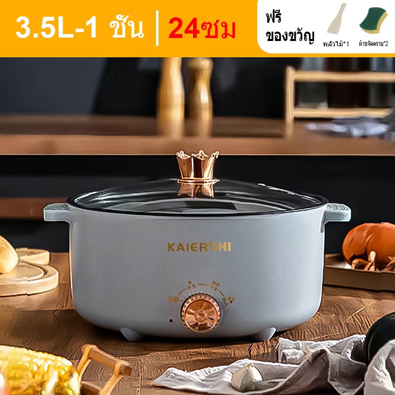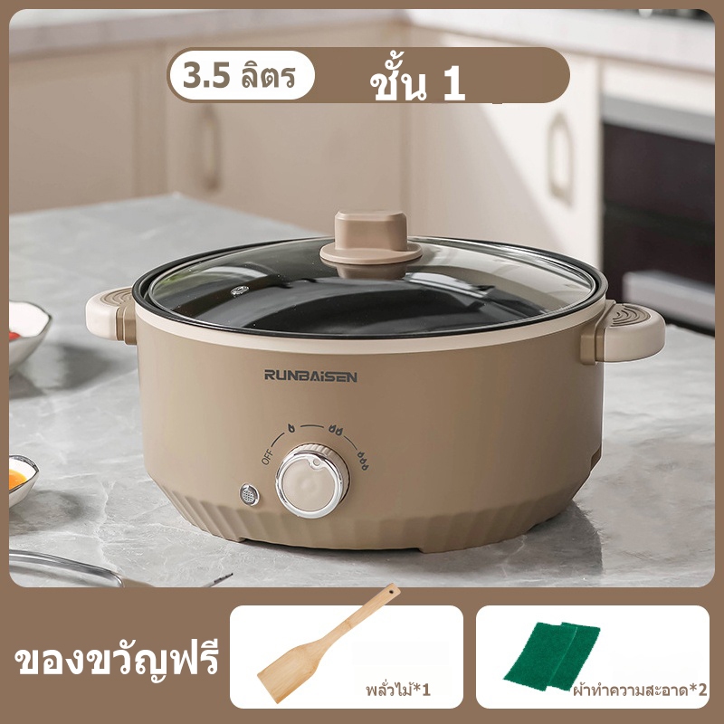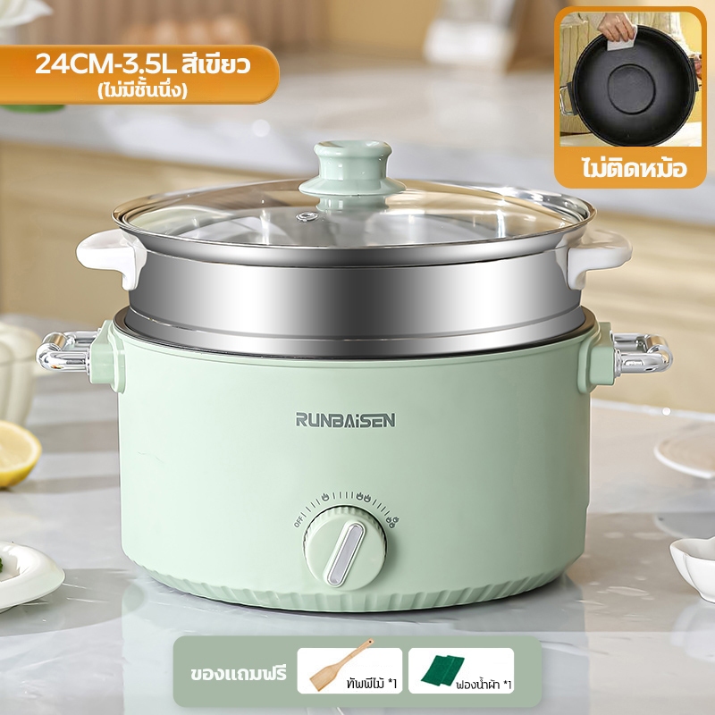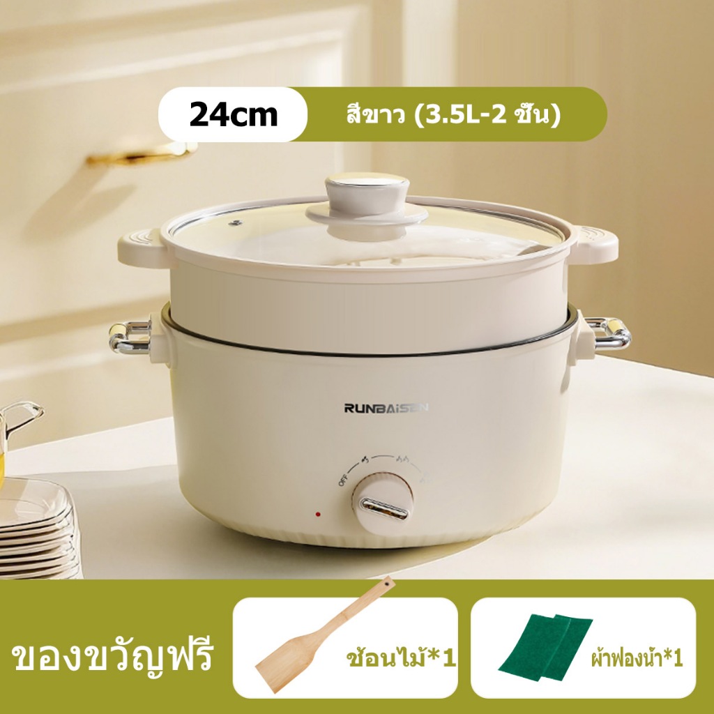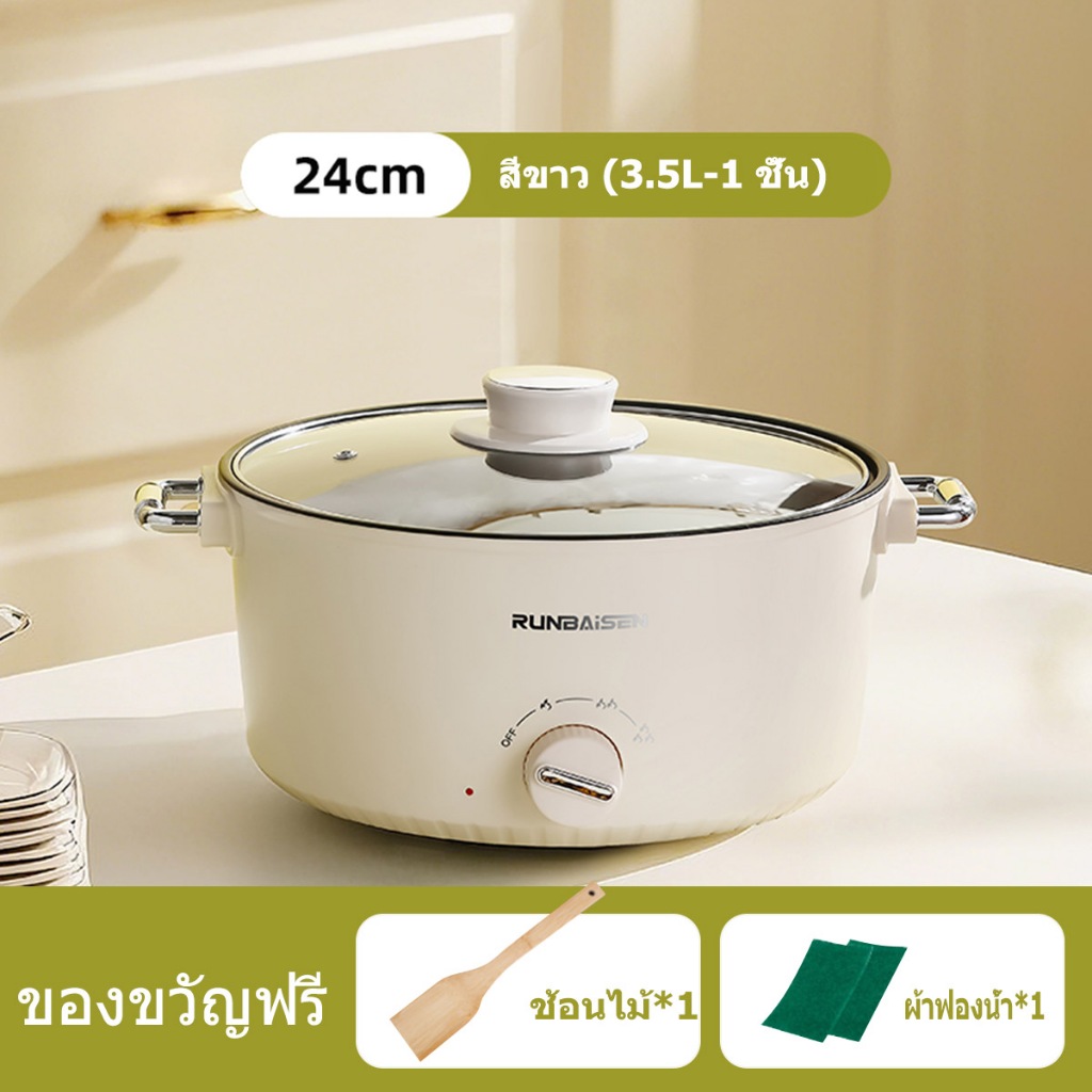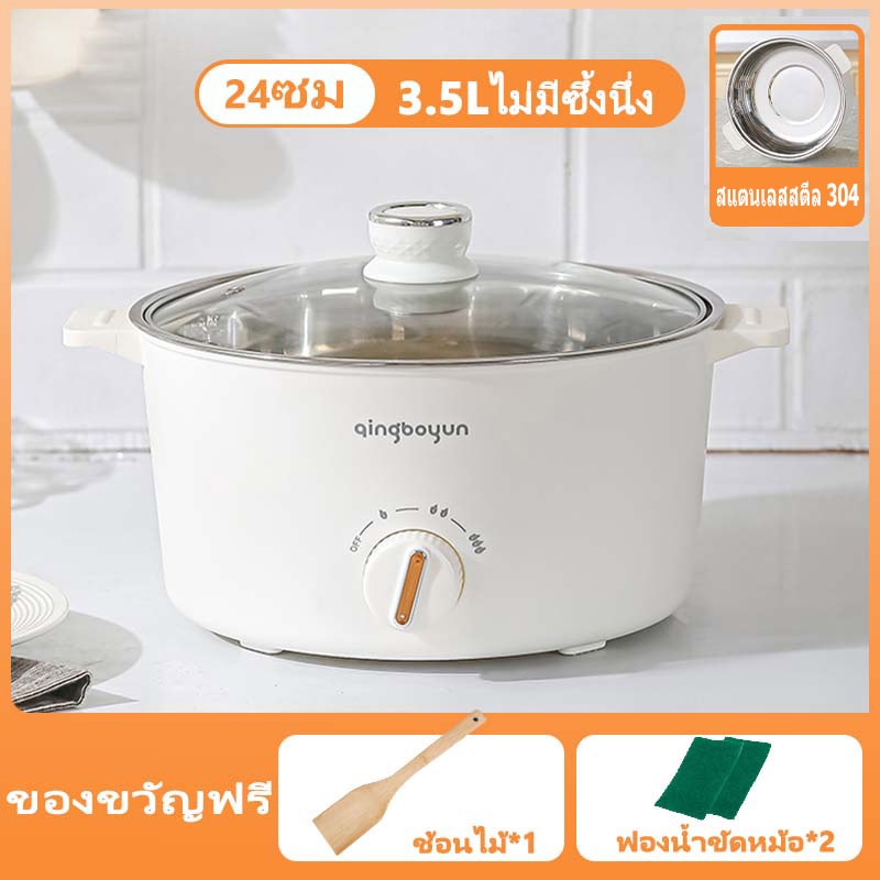 หม้อไฟฟ้า ความจุขนาดใหญ่ 5 ลิตร หม้อไฟฟ้ามัลติฟังก์ชั่น 1000W ไม่ติดหม้อ หม้อนึ่งไฟฟ้า 2 ชั้น หม้อต้มไฟฟ้า 28CM