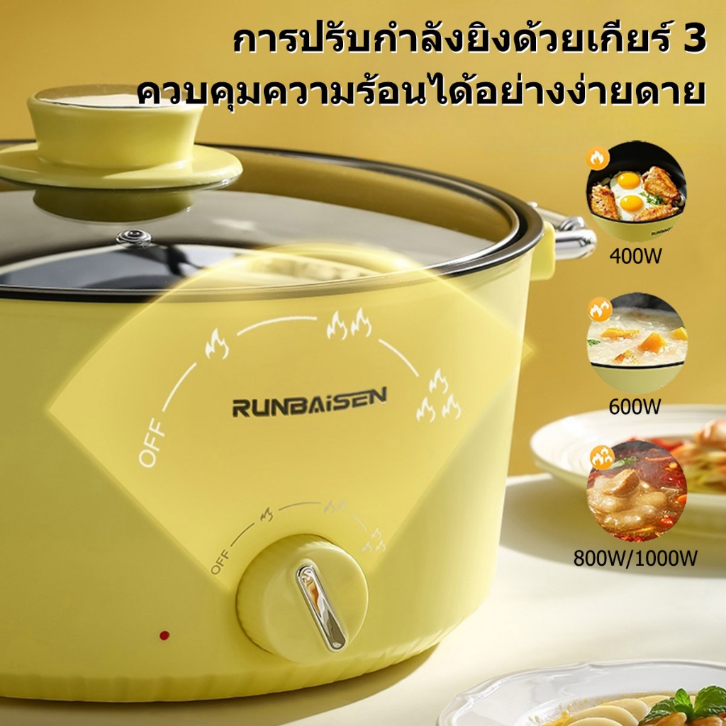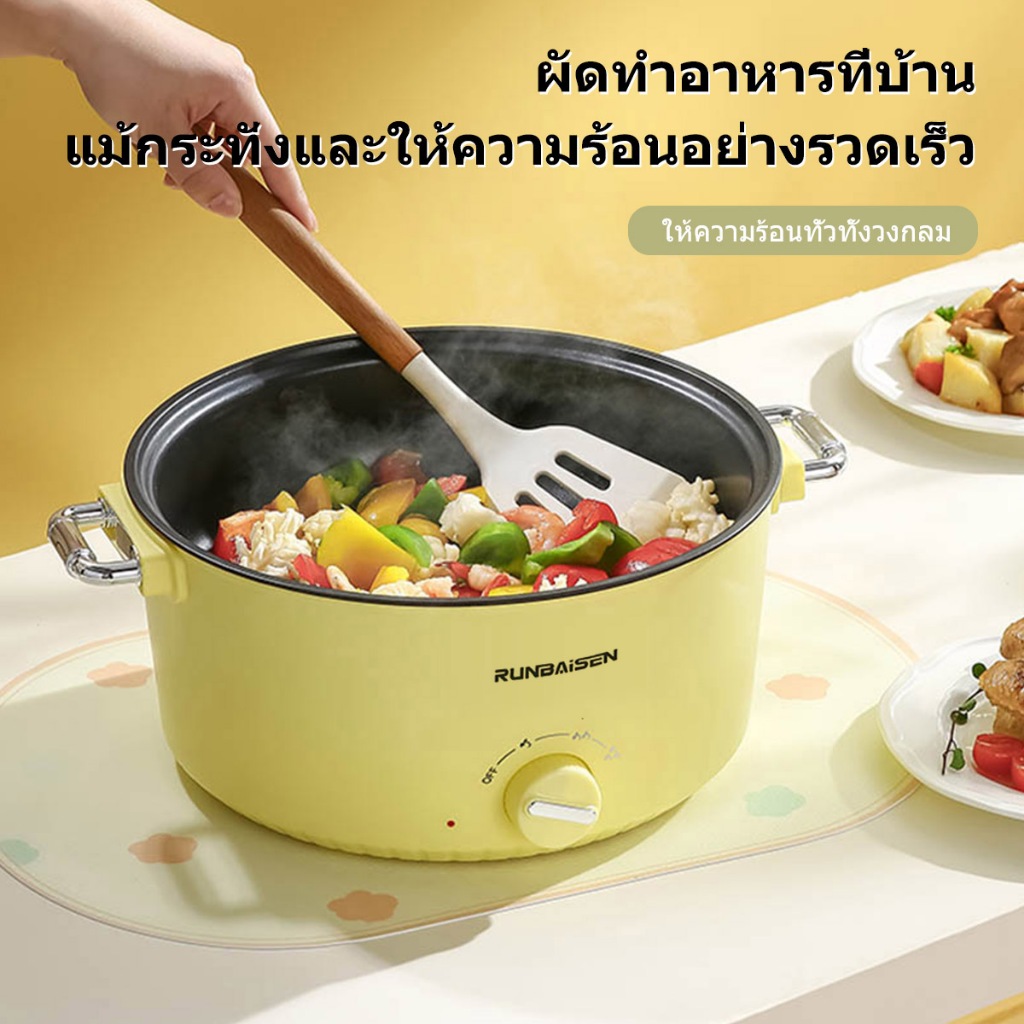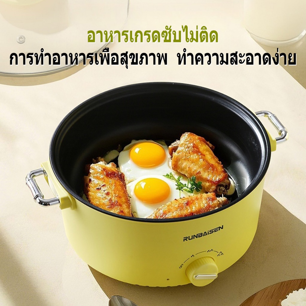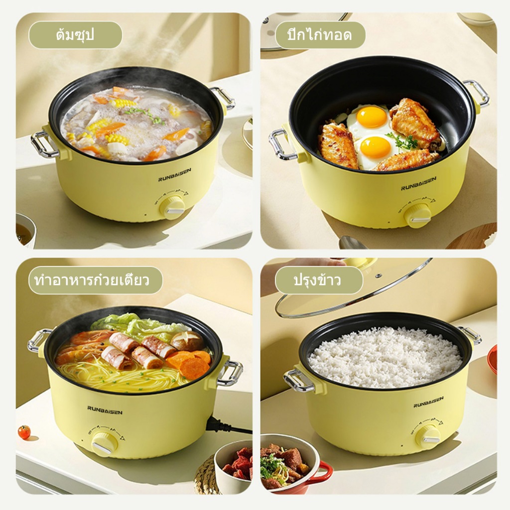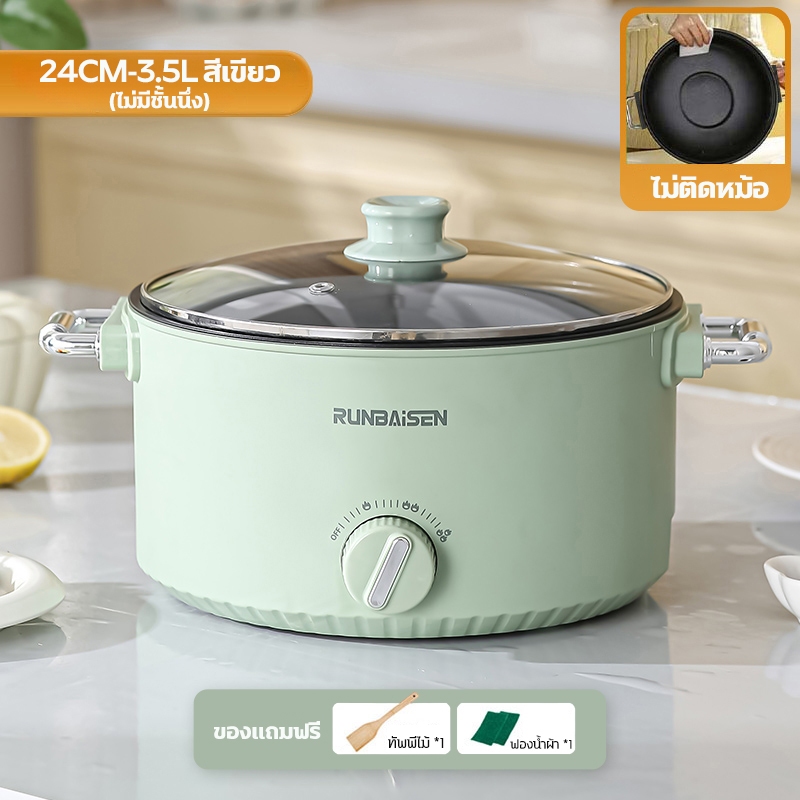 หม้อไฟฟ้า ความจุขนาดใหญ่ 5 ลิตร หม้อไฟฟ้ามัลติฟังก์ชั่น 1000W ไม่ติดหม้อ หม้อนึ่งไฟฟ้า 2 ชั้น หม้อต้มไฟฟ้า 28CM