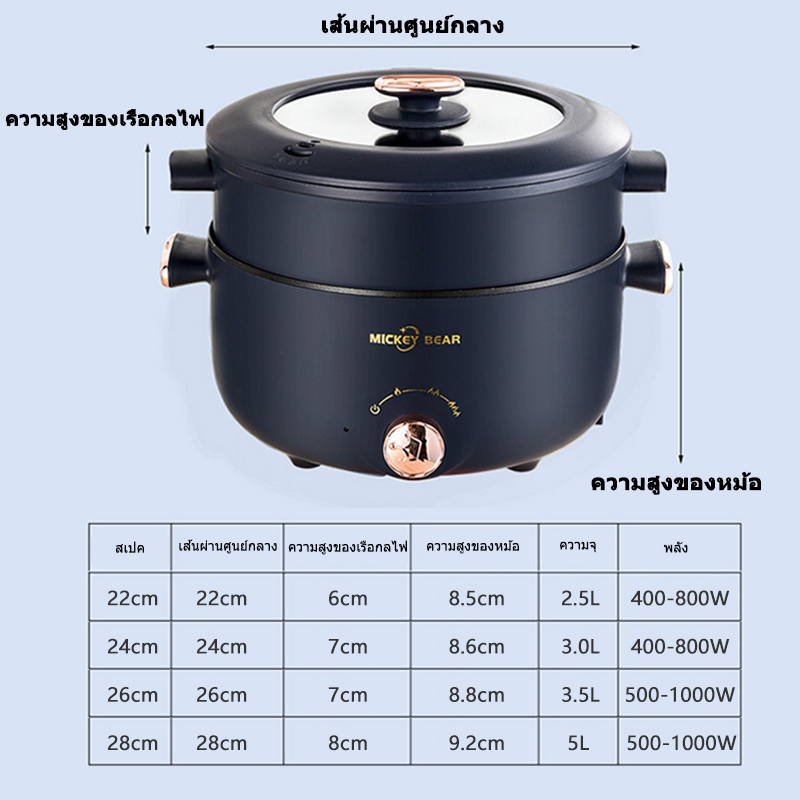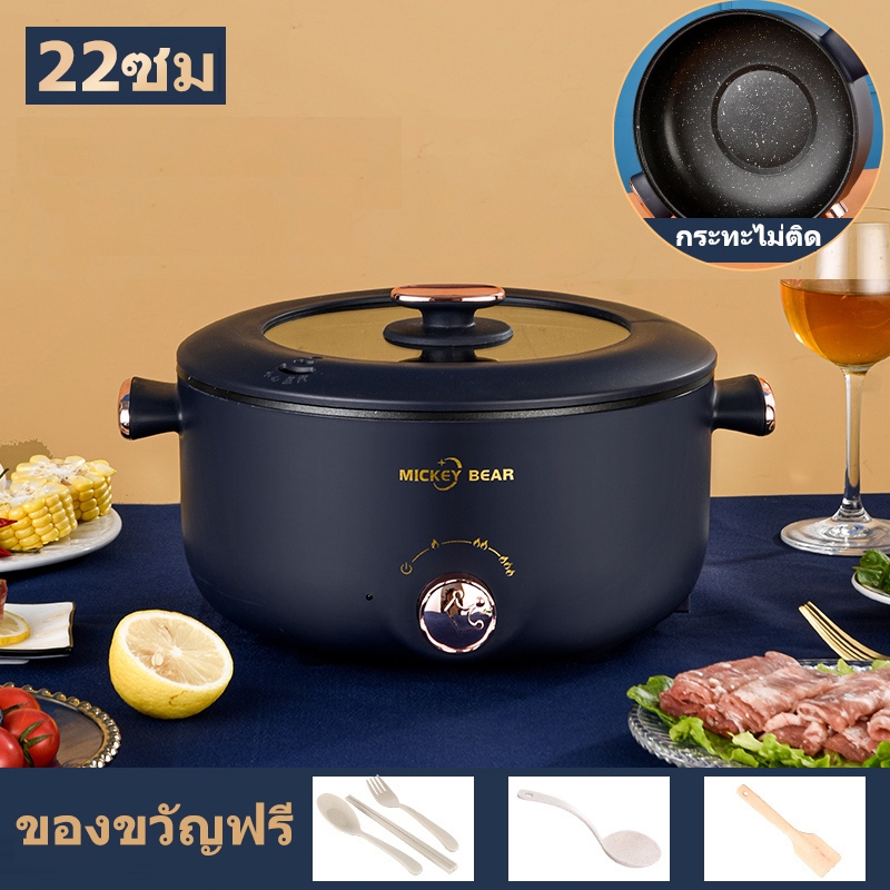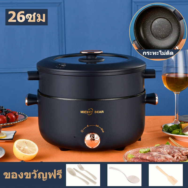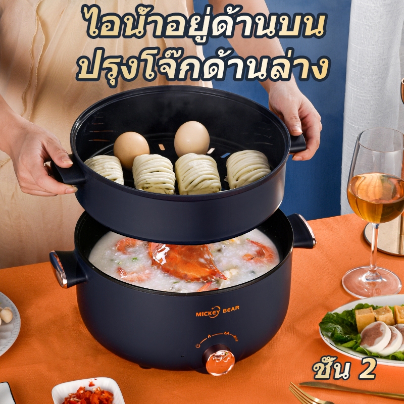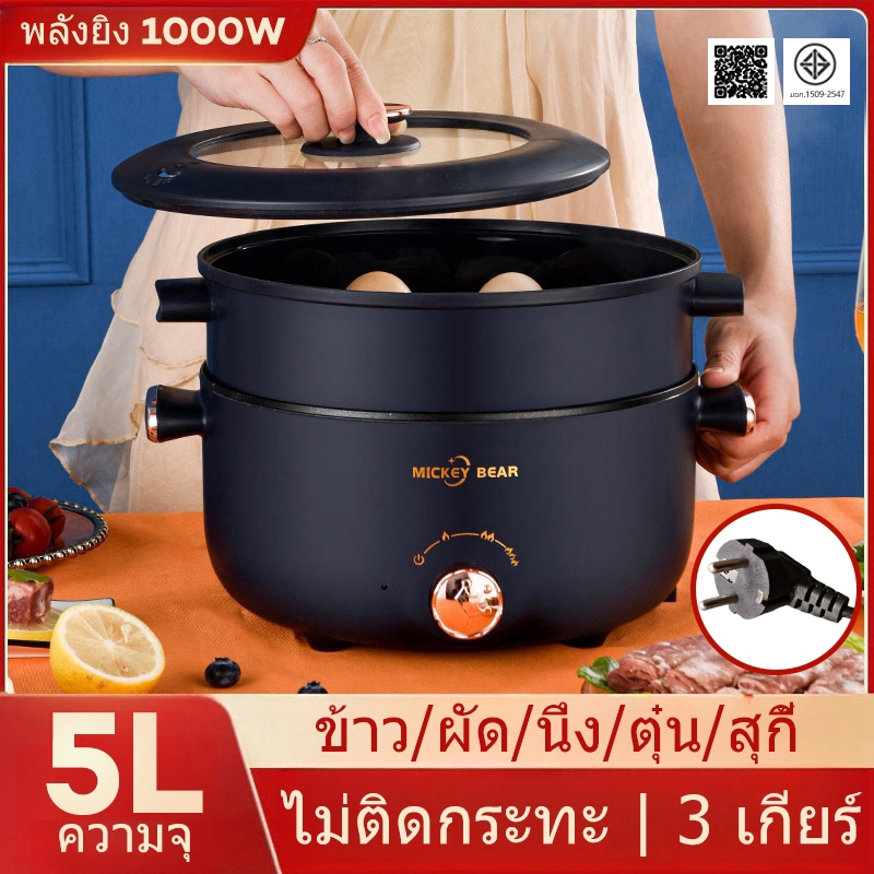 หม้อไฟฟ้ามัลติฟังก์ชั่น ความจุขนาดใหญ่ 5 ลิตร หม้อไฟฟ้า 1000W ไม่ติดหม้อ กระทะไฟฟ้า หม้อนึ่งไฟฟ้า 2 ชั้น หม้อต้มไฟฟ้า