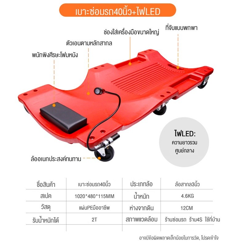 กระดานรองนอนล้อเลื่อน กระดานรองนอนซ่อมเครื่อง กระดานล้อเลื่อนรองนอนซ่อมใต้ท้องรถ รองนอนซ่อมรถ เครื่องมือซ่อมรถ 40 นิ้ว