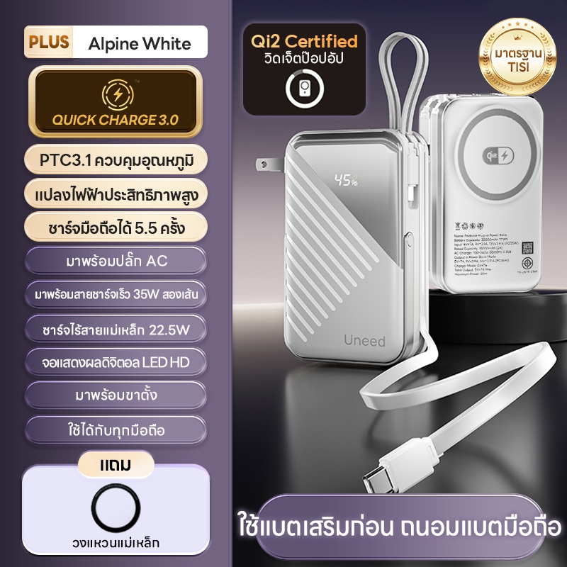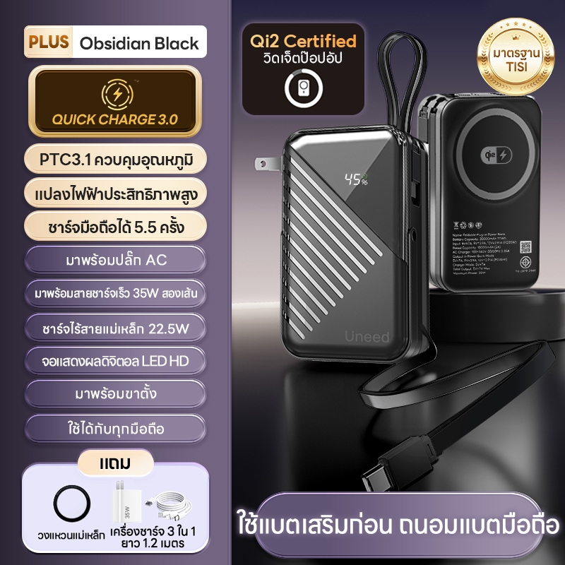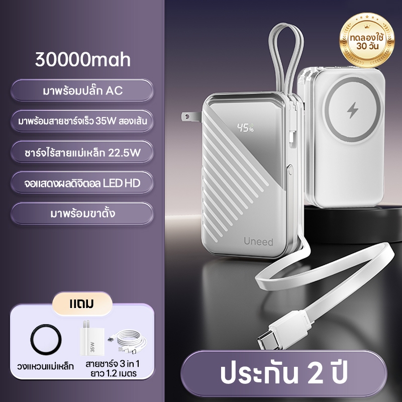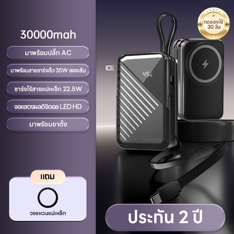 [70% OFF]Uneed powerbank 30000mAh fast charge PD35W, power bank แบตสํารอง type c/magentic/lights powerbank 15000 mah แท้