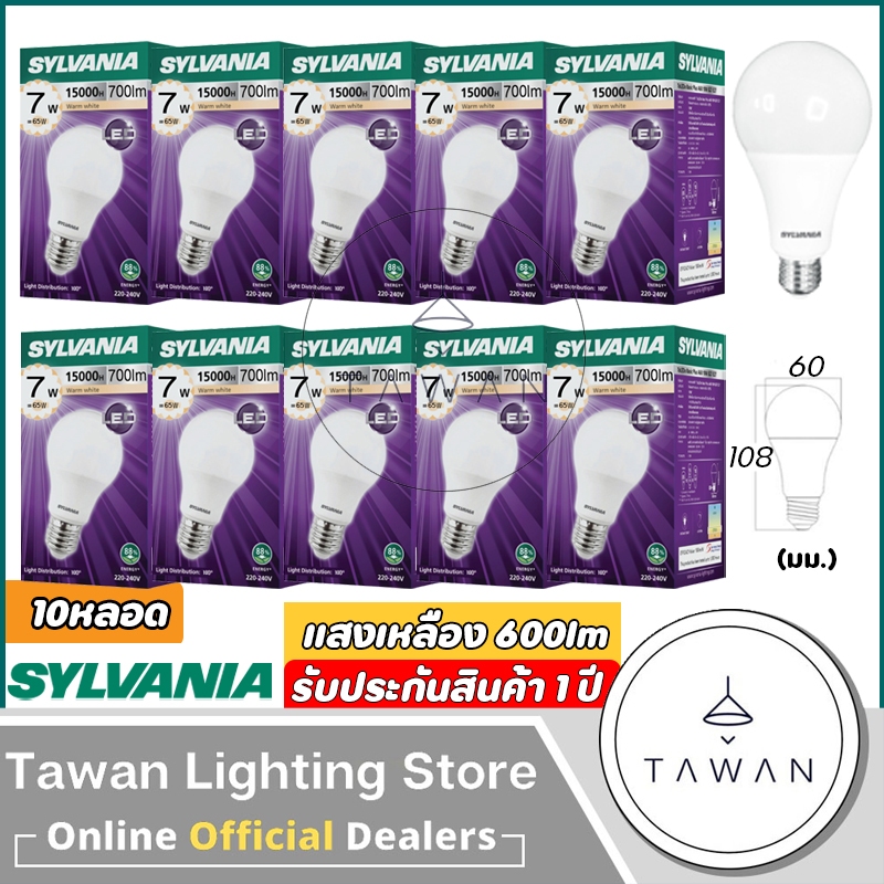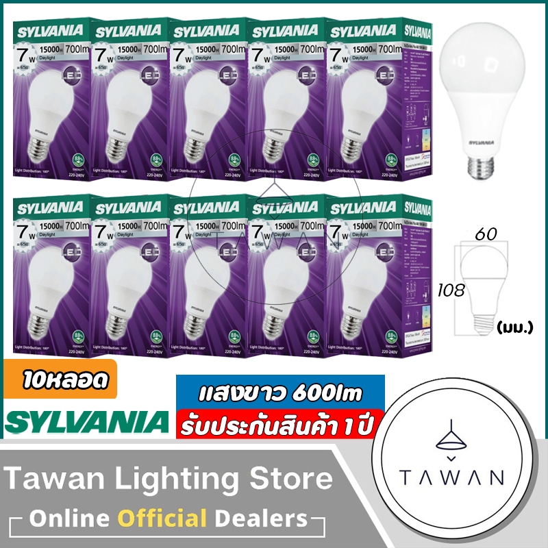 [10 หลอด] Sylvania หลอดไฟแอลอีดี 7วัตต์ LED Bulb 7w รุ่น Basic Plus Daylight แสงขาว Warmwhite แสงเหลือง