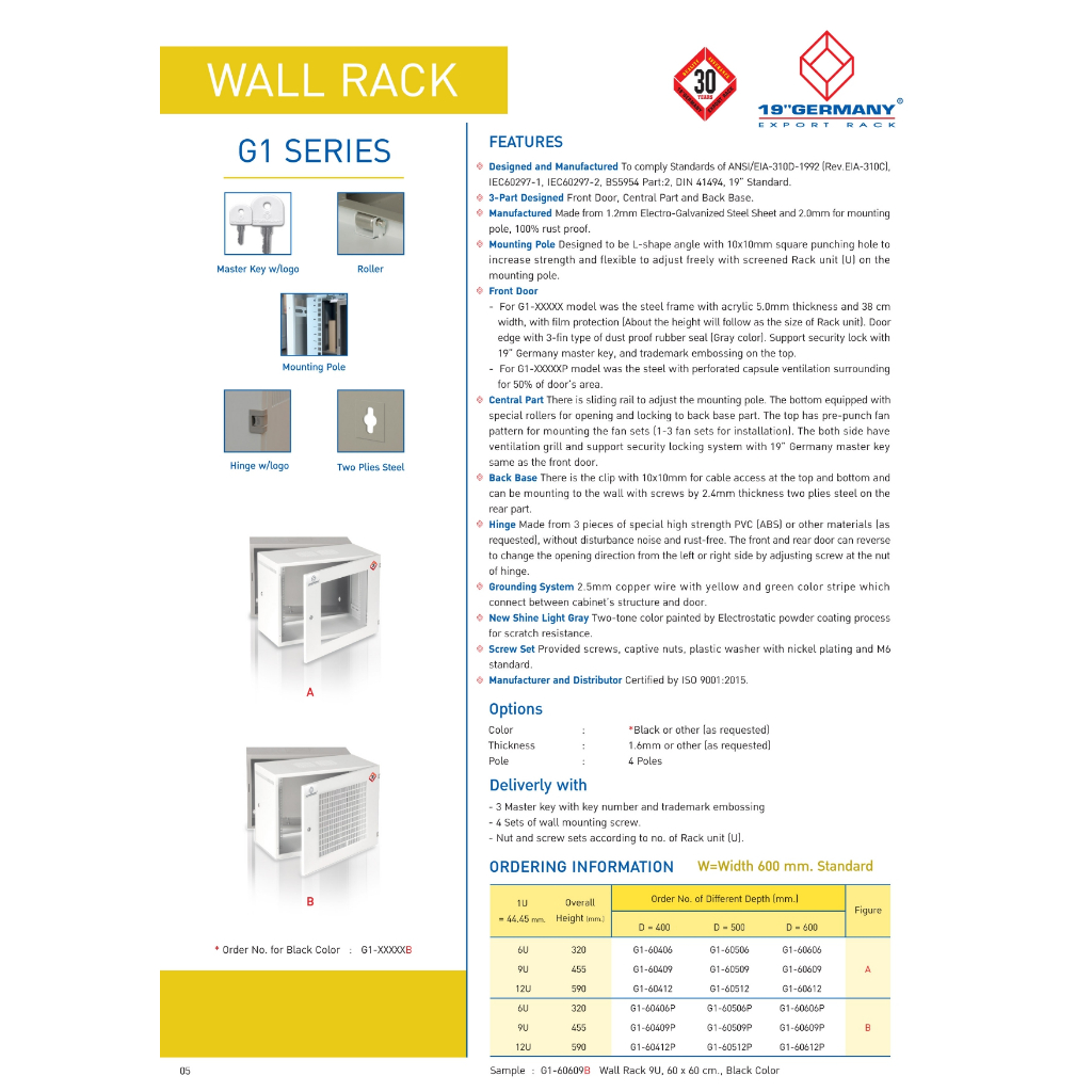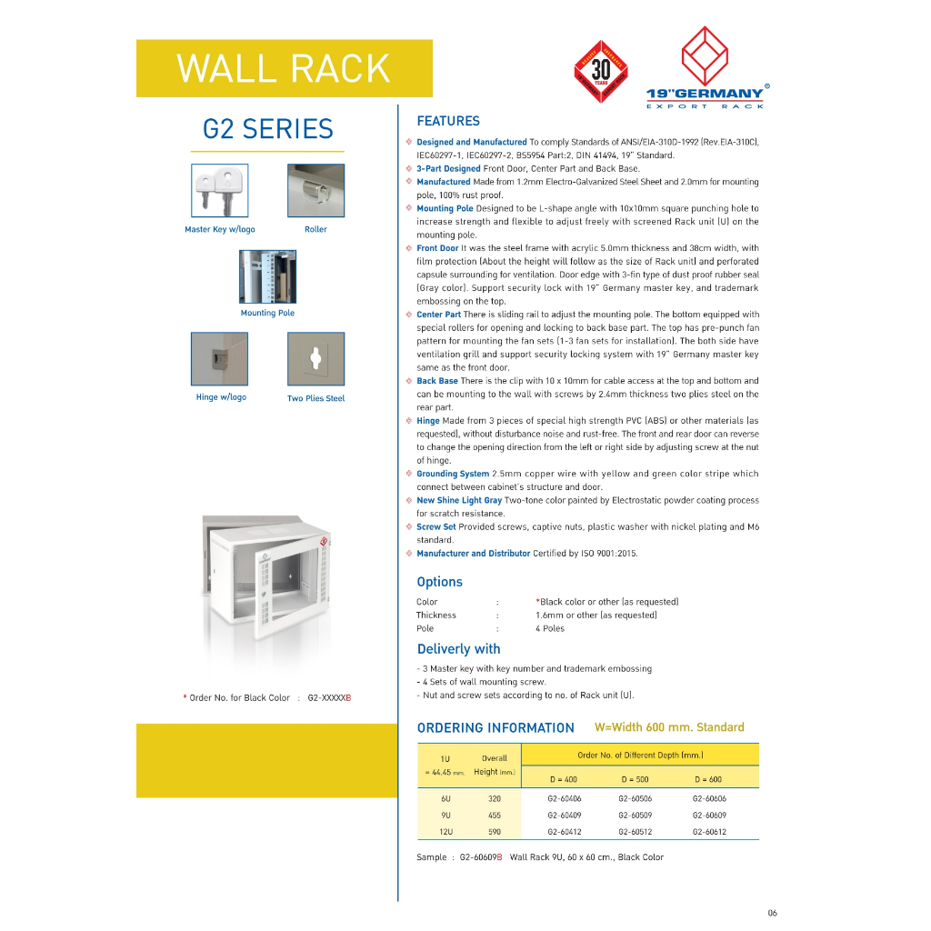 19”GERMANY ตู้แรค Wall Rack 6U รุ่น G1-60406 / G1-60506 - แบบเลือกซื้อ