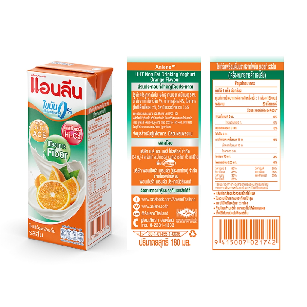(2 ลัง) Anlene แอนลีน โบนซ์แอคทีฟ นมโยเกิร์ตพร้อมดื่ม รสส้ม ยกลัง 12x4x180 มล. (96 กล่อง)