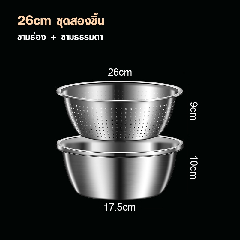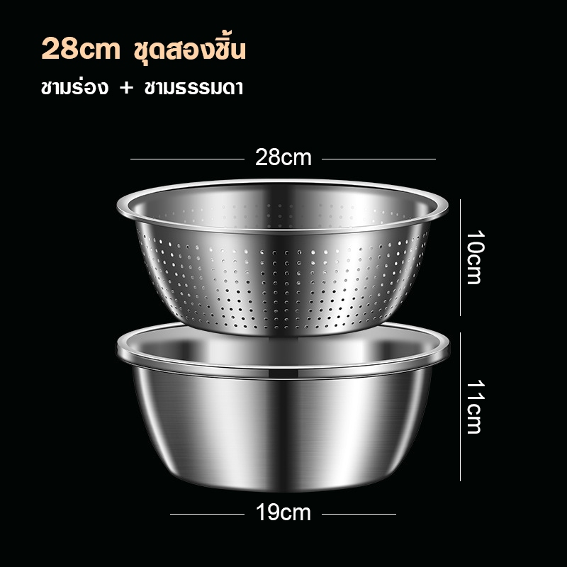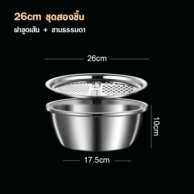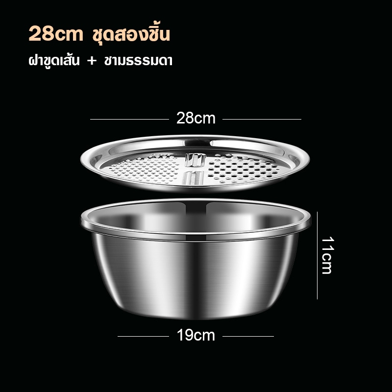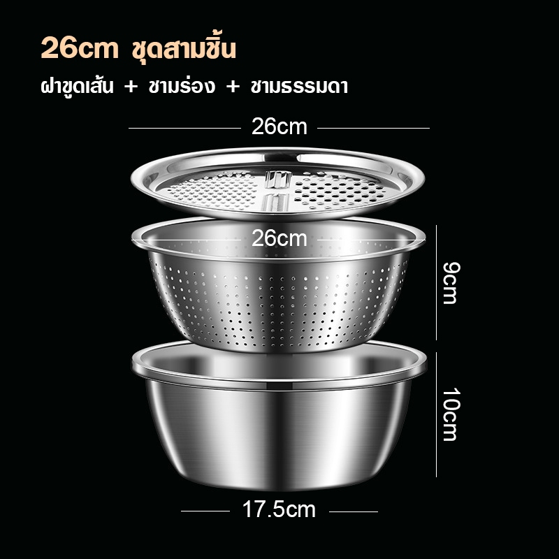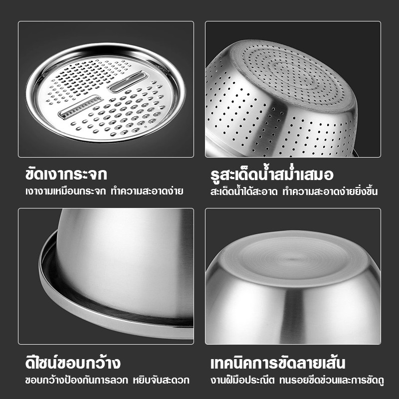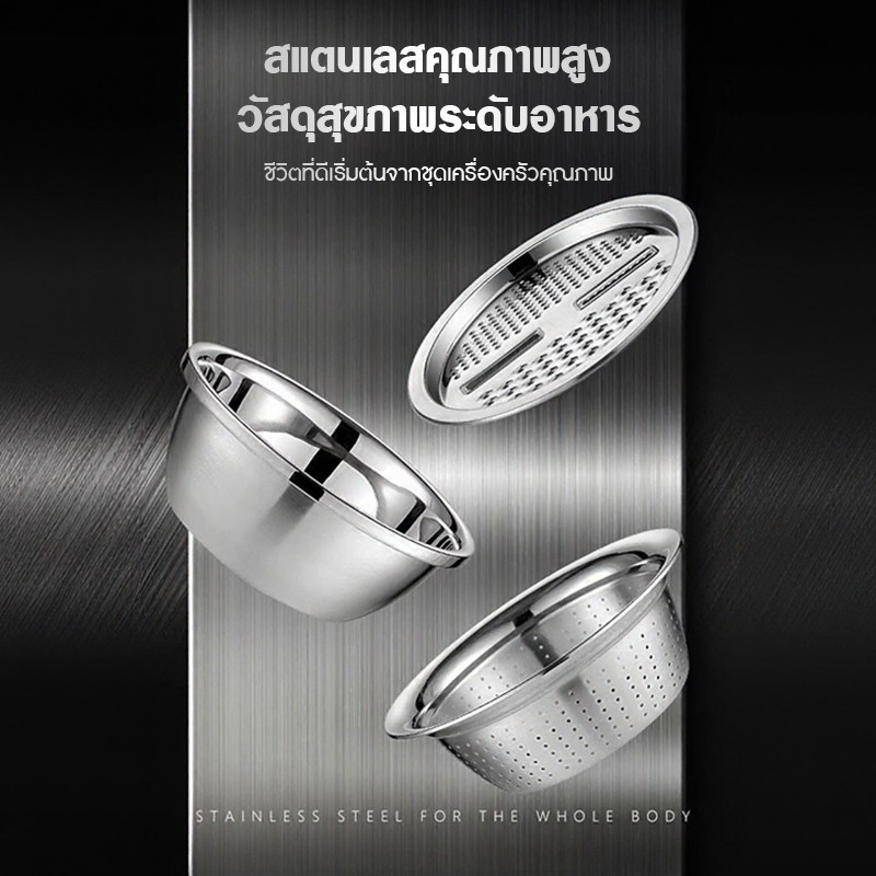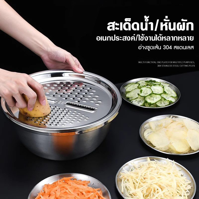 ชามขูดผักผลไม้ ชุดกะละมังขูดผัก ชุดกะละมัง 3in1พร้อมที่สไลด์ผัก สแตนเลสกะละมังล้างผัก304 พร้อมกะละมังรู มีรูระบายน้ำได้
