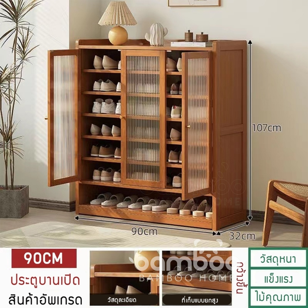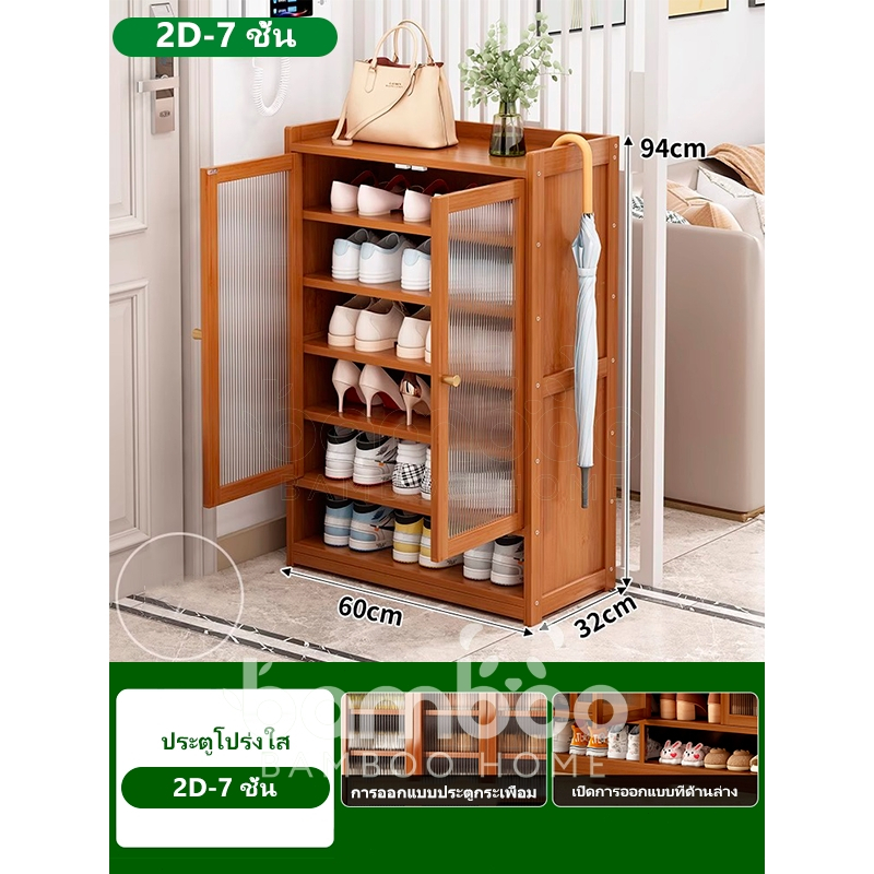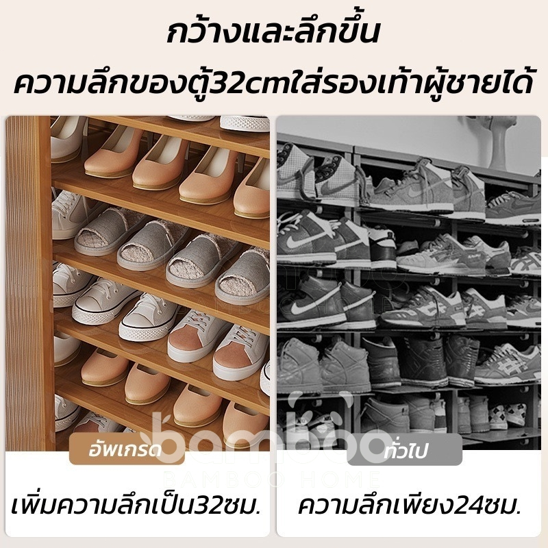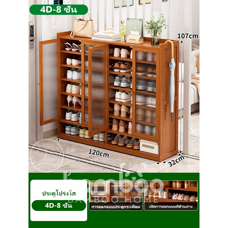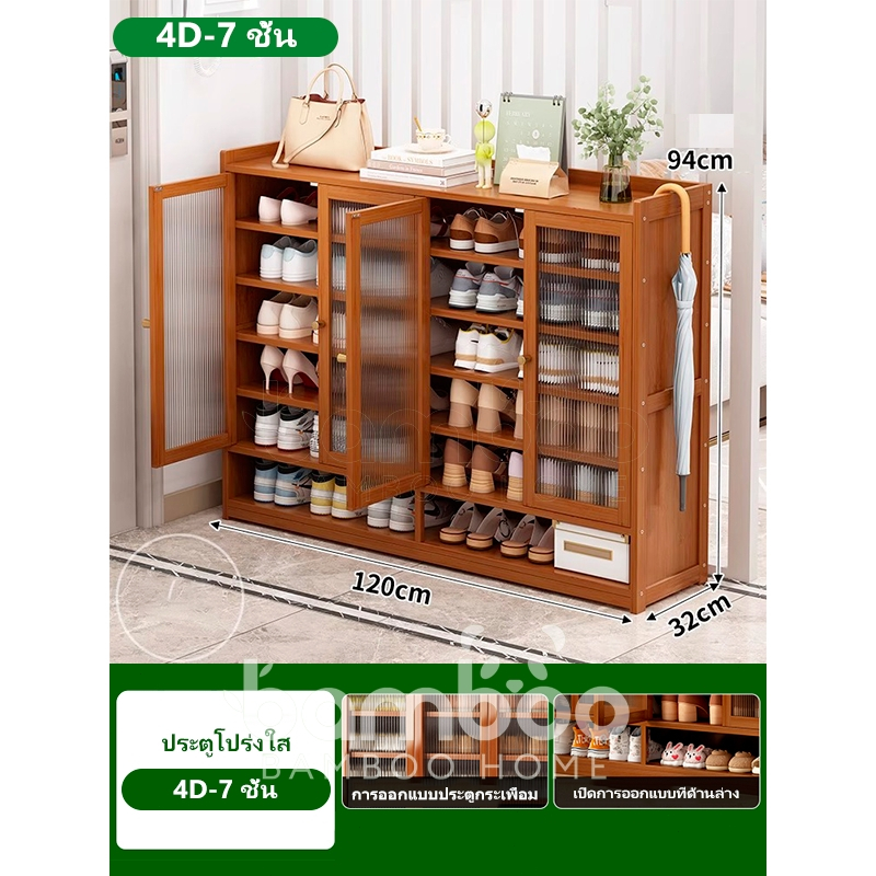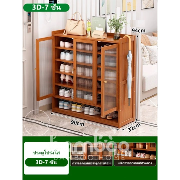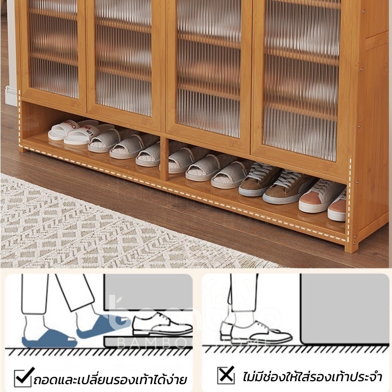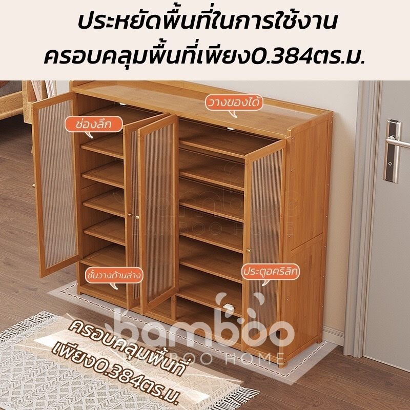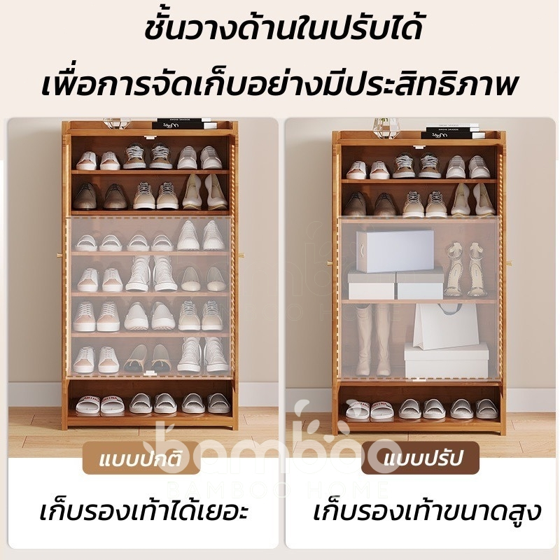 🎋ชั้นวางรองเท้า ประหยัดพื้นที่ ประตูโปร่งใส กันฝุ่น กล่องรองเท้า ตู้รองเท้าไม้ไผ่กันฝุ่น shoes cabinet