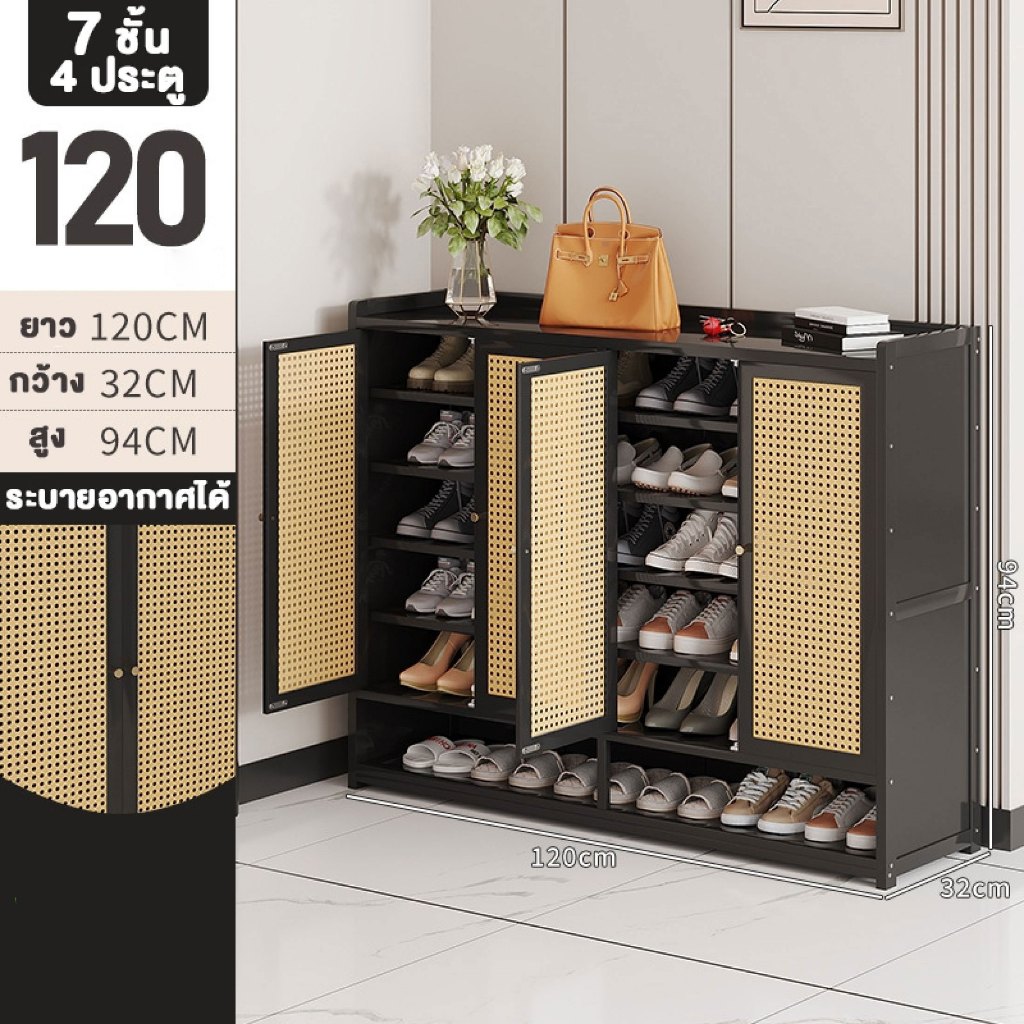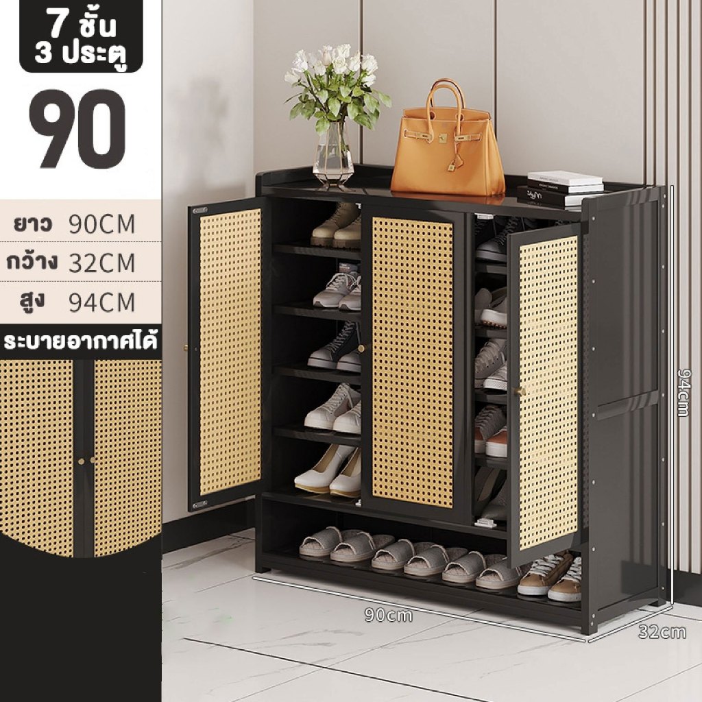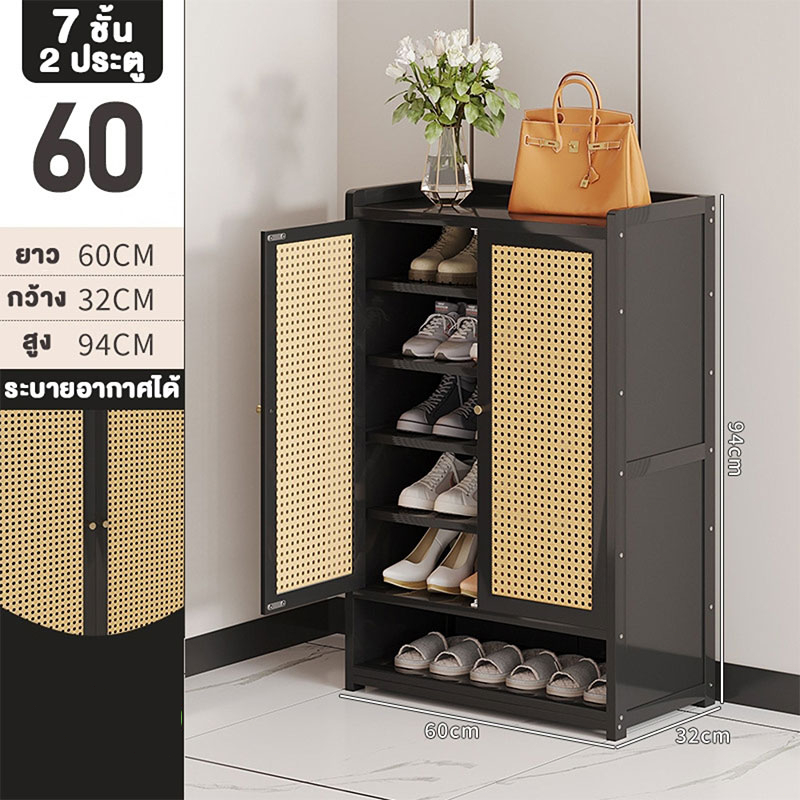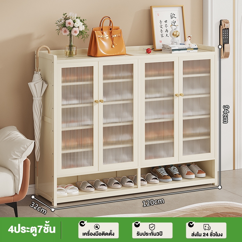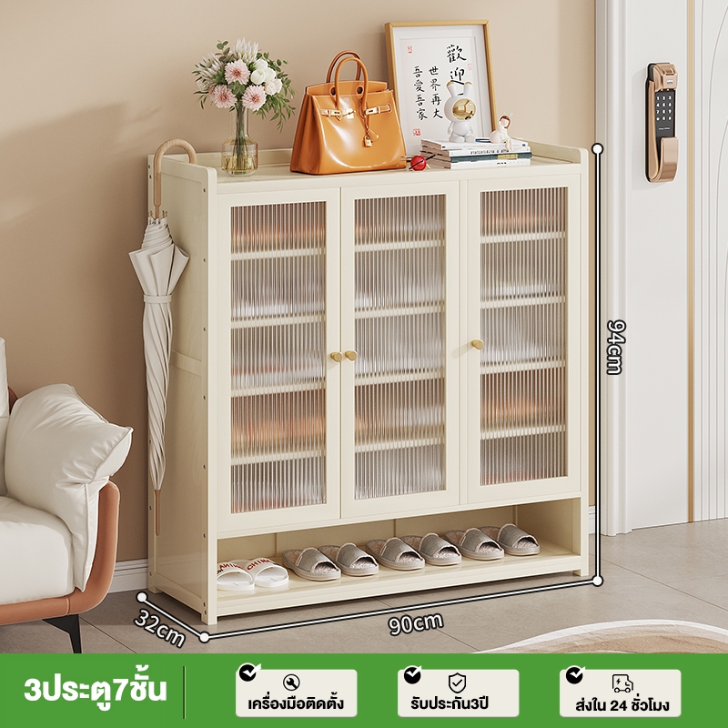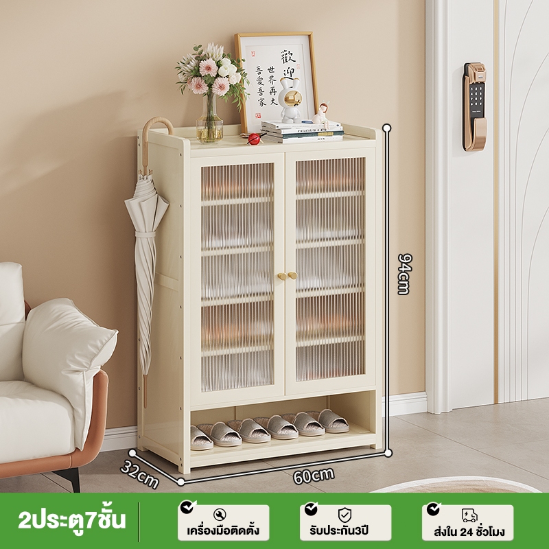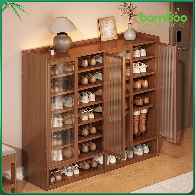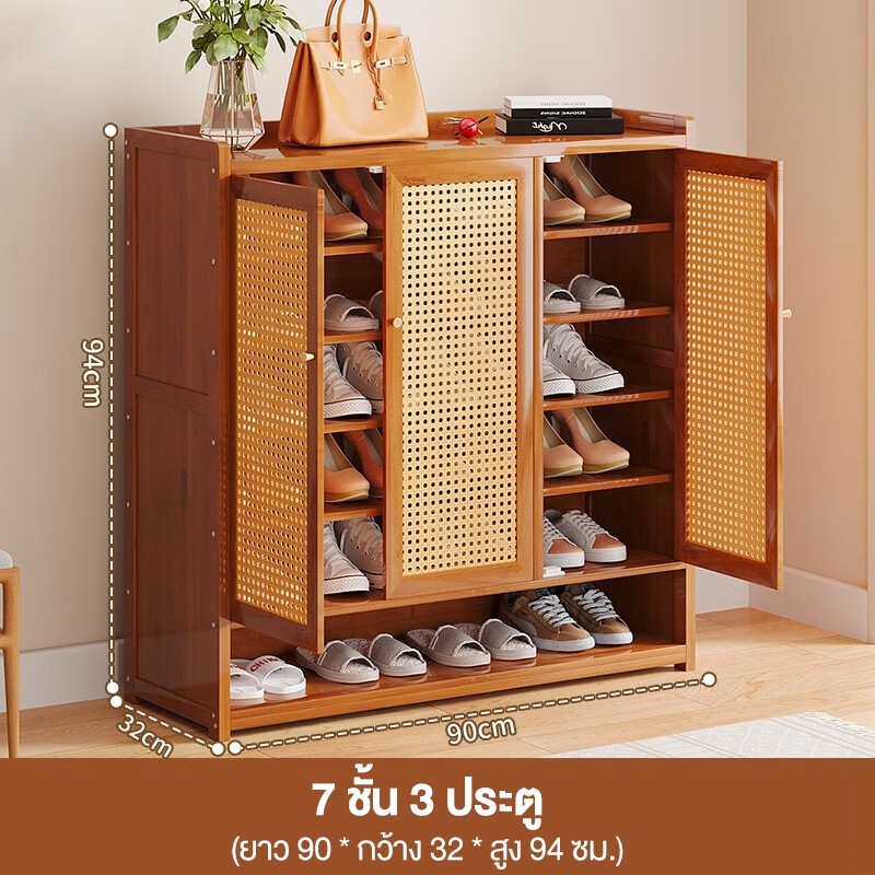 🎋ชั้นวางรองเท้า ประหยัดพื้นที่ ประตูโปร่งใส กันฝุ่น กล่องรองเท้า ตู้รองเท้าไม้ไผ่กันฝุ่น shoes cabinet