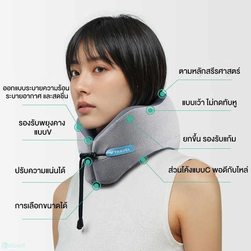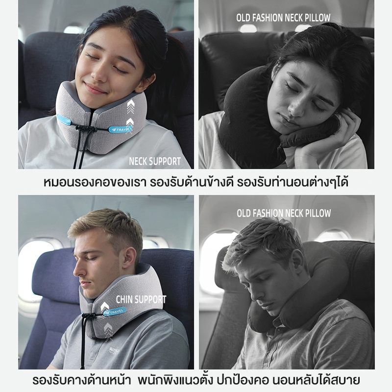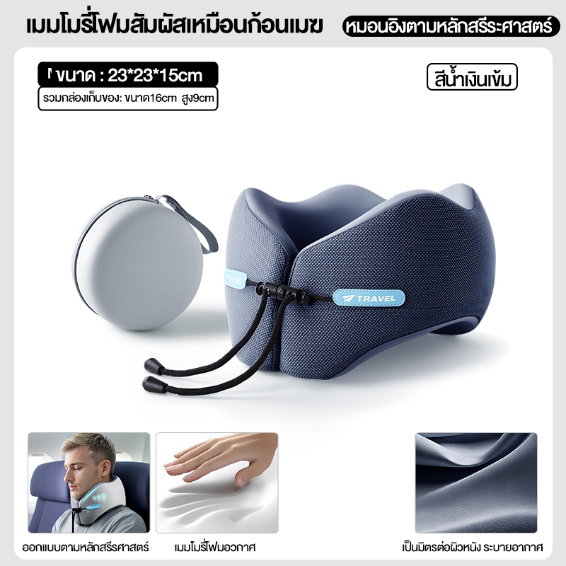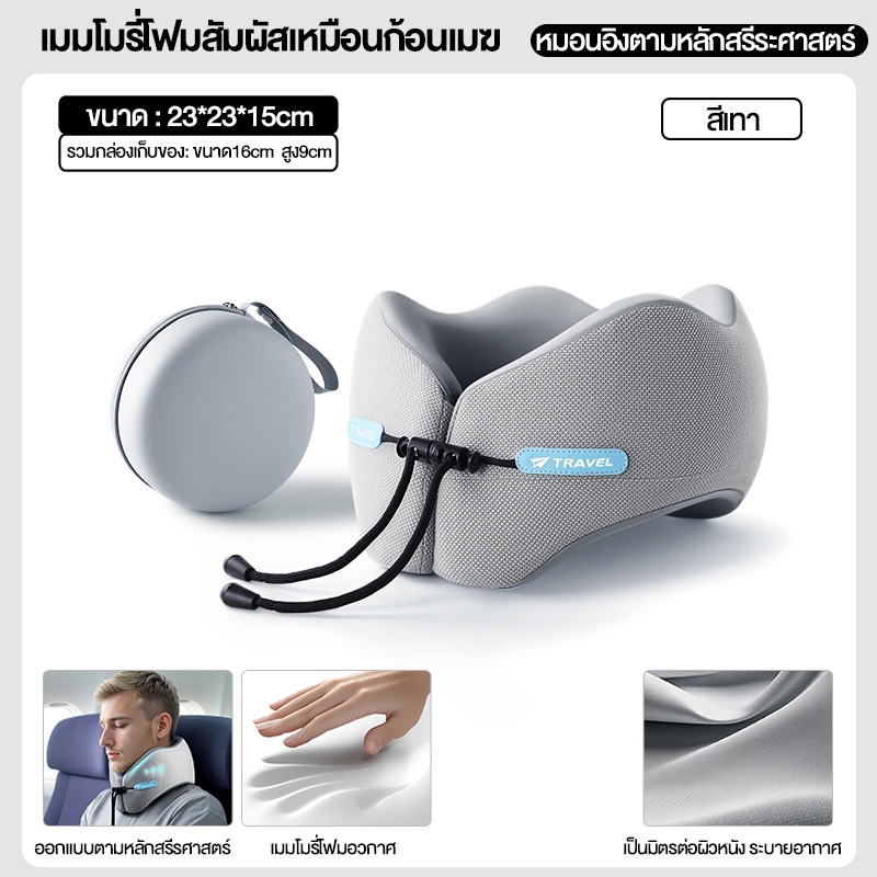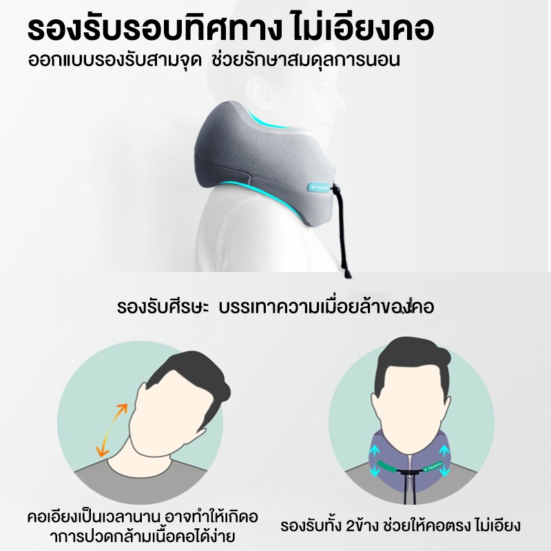 HT หมอนรองคอสําหรับเดินทางแบบพกพารูปตัวยู ที่เก็บของง่ายและพกพาพร้อม ม้วนเก็บได้ ช่วยซับพอร์ต