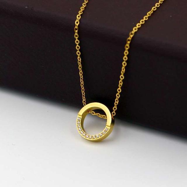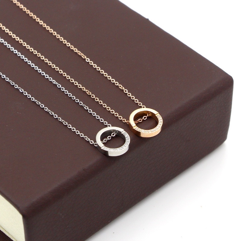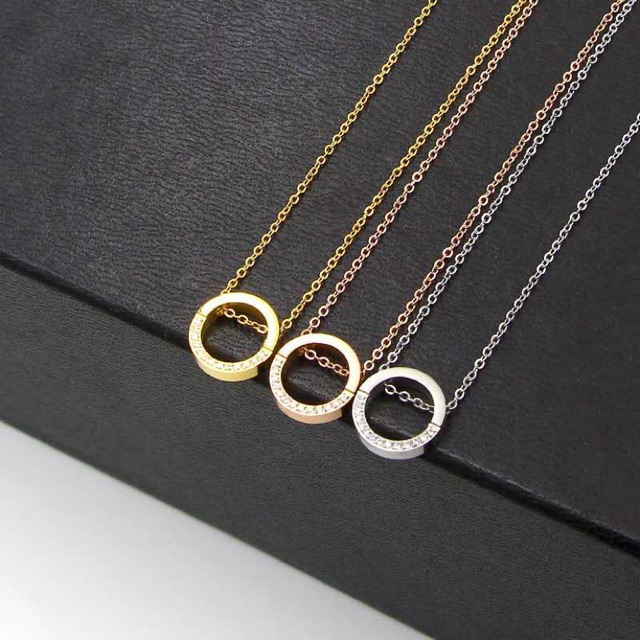 สร้อยคอจี้ สร้อยคอ สร้อยคอแฟชั่น วงกลมเล็กเพชรขึ้นลอบ สแตนเลสแท้ ใส่ไม่แพ้ไม่ดำ