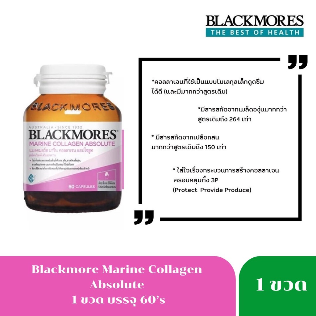 Blackmores Marine Collagen Absolute 60's คอลลาเจนบำรุงผิว ลดริ้วรอย 1 ขวด 2533 Exp.3/27