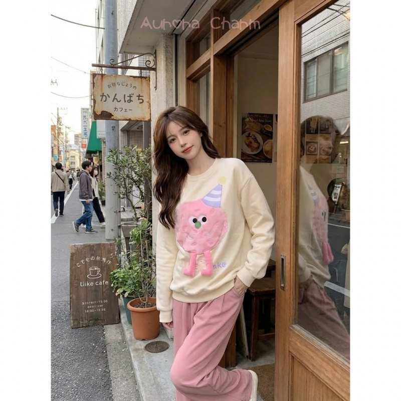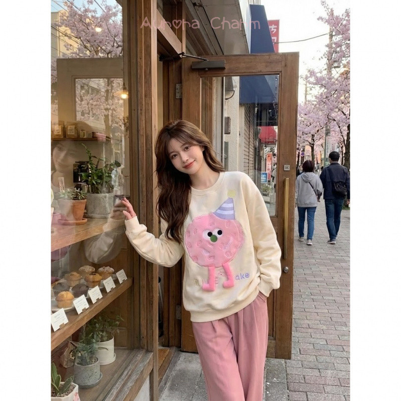 Aurora Charm (พร้อมส่ง) เสื้อสเวตเตอร์ Oversize สไตล์เกาหลี ลายการ์ตูน 3D ขาห้อยน่ารัก ผ้านุ่มนิ่ม Sweater
