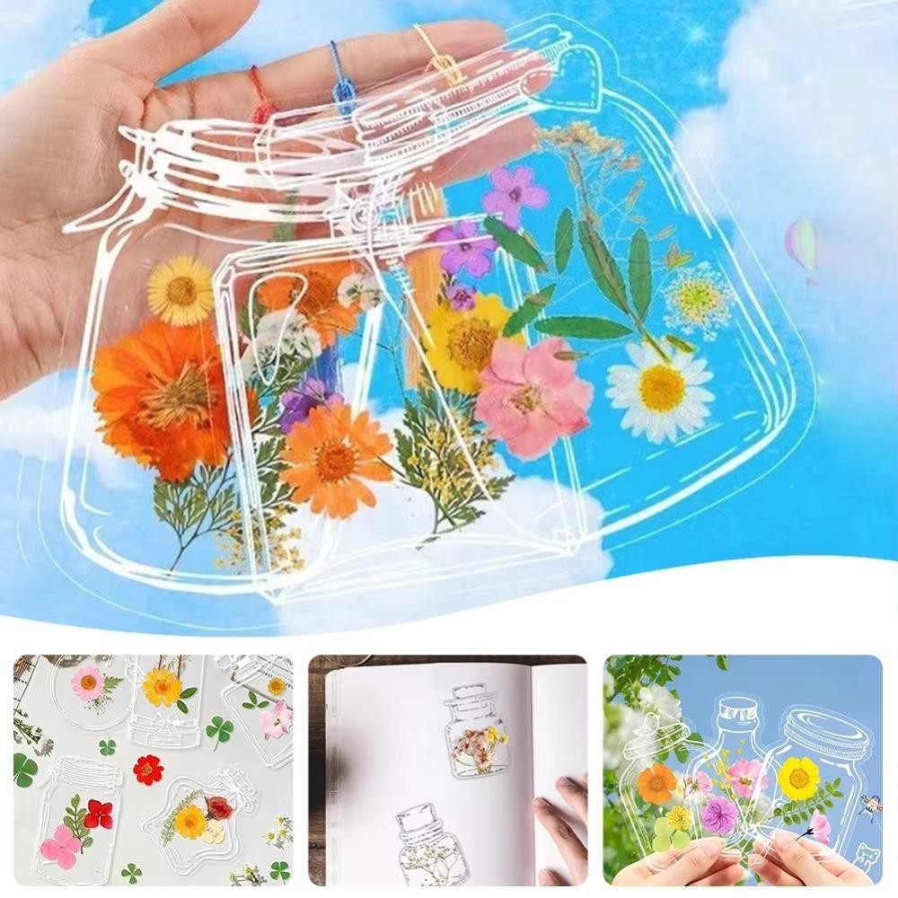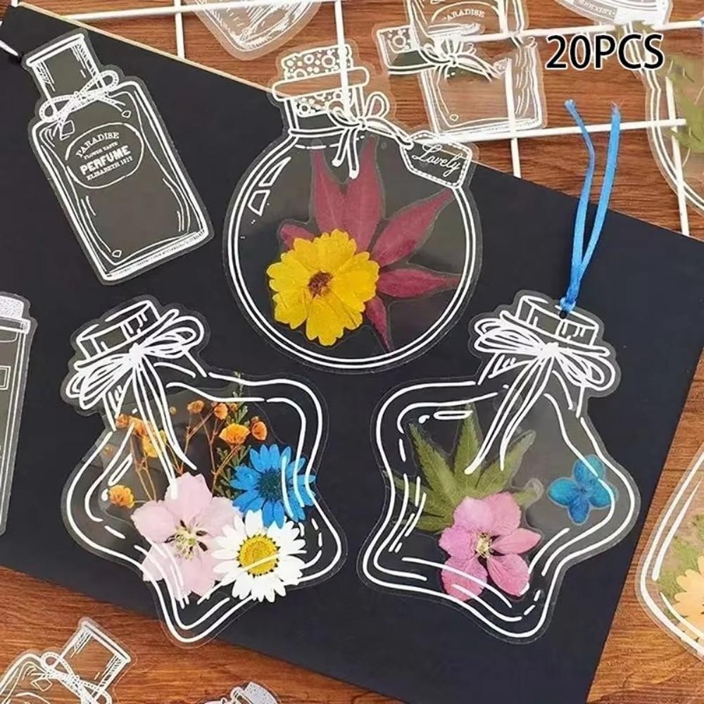 NULLABY 20PCS ขวดรูปร่างบุ๊คมาร์ค, PET DIY หัตถกรรมเครื่องเขียนบุ๊คมาร์ค,ตกแต่งกันน้ําโปร่งใสบุ๊คมาร์คสมุดภาพสติกเกอร์ตัวอย่างพืช