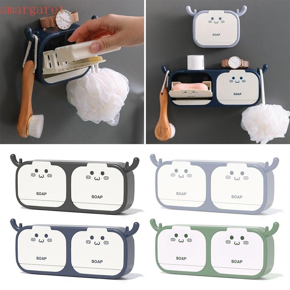 AMAGARET กล่องสบู่จานสบู่สร้างสรรค์อุปกรณ์ห้องน้ําที่วางสบู่ติดผนัง