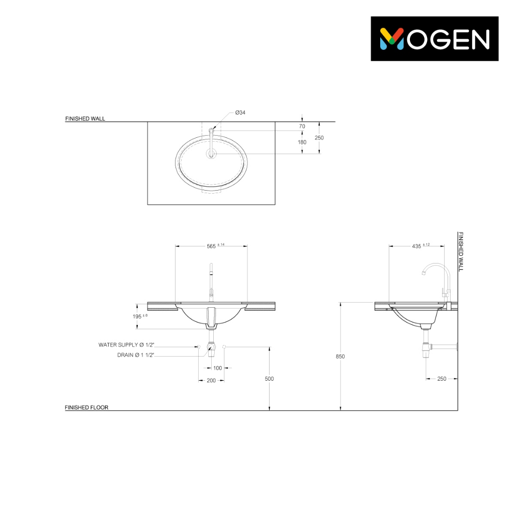 MOGEN MA475 อ่างล้างหน้า ชนิดฝังใต้เคาน์เตอร์ สีขาว