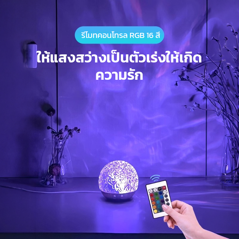 Ofeel แสงไฟระลอกคลื่นออโรร่า16สี แสงโดยรอบทรงกลม ชาร์จไฟได้ 6000mAhLEDหลอดไฟ บรรยากาศโรแมนติกแสงไฟ
