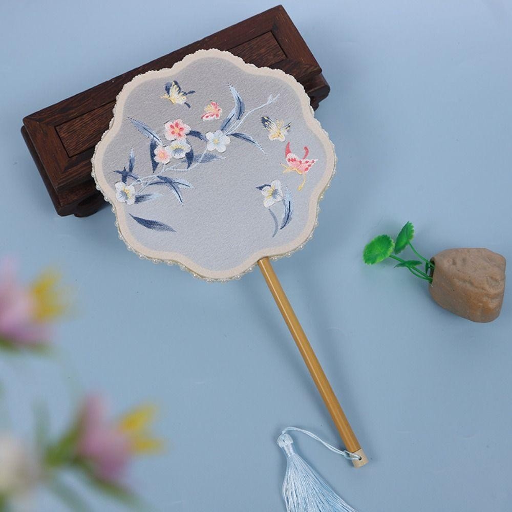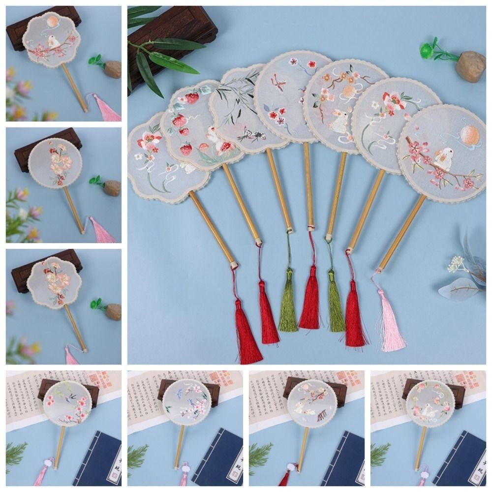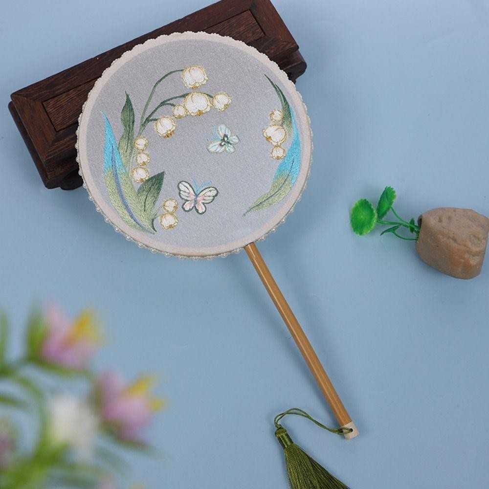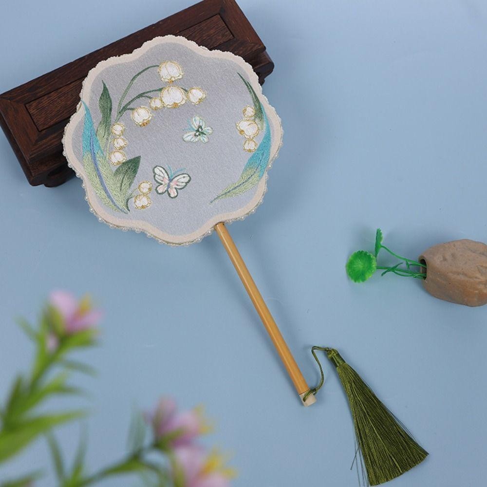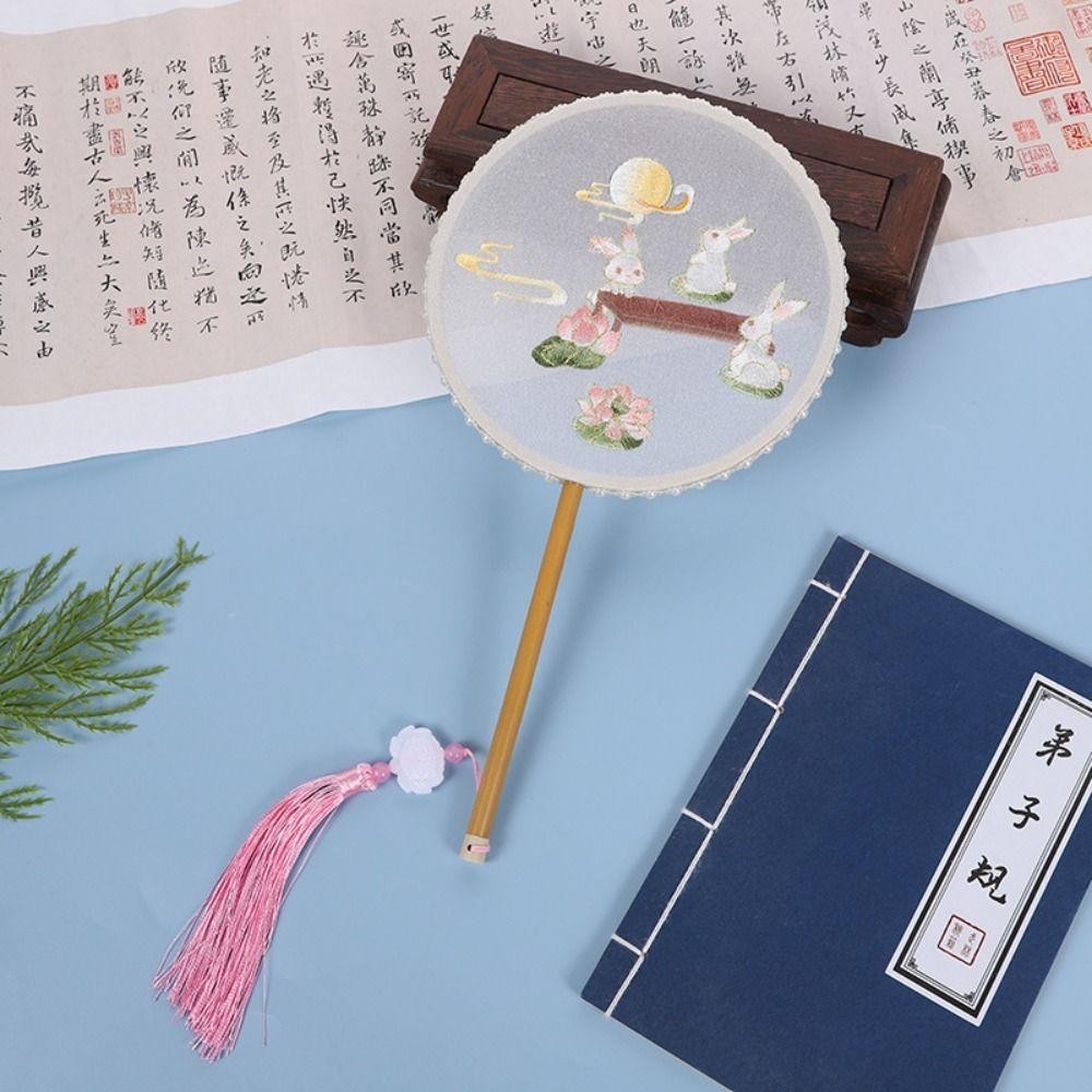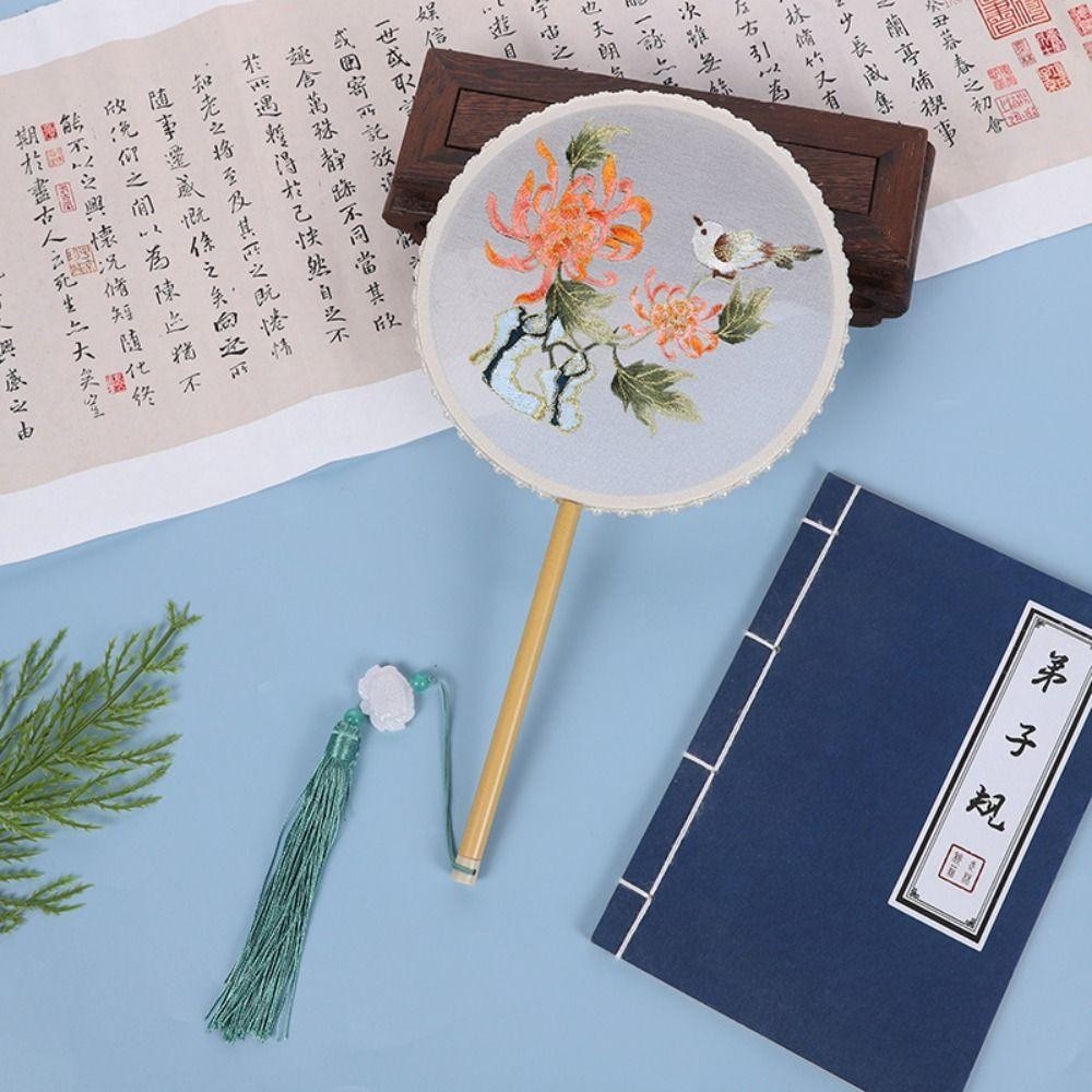 ประกายไฟ พัดลมทรงกลมพัดลมผ้าไหมกึ่งโปร่งใสคลาสสิกสไตล์จีนปักสองด้านด้วยพู่พัดลมมือแต่งงาน