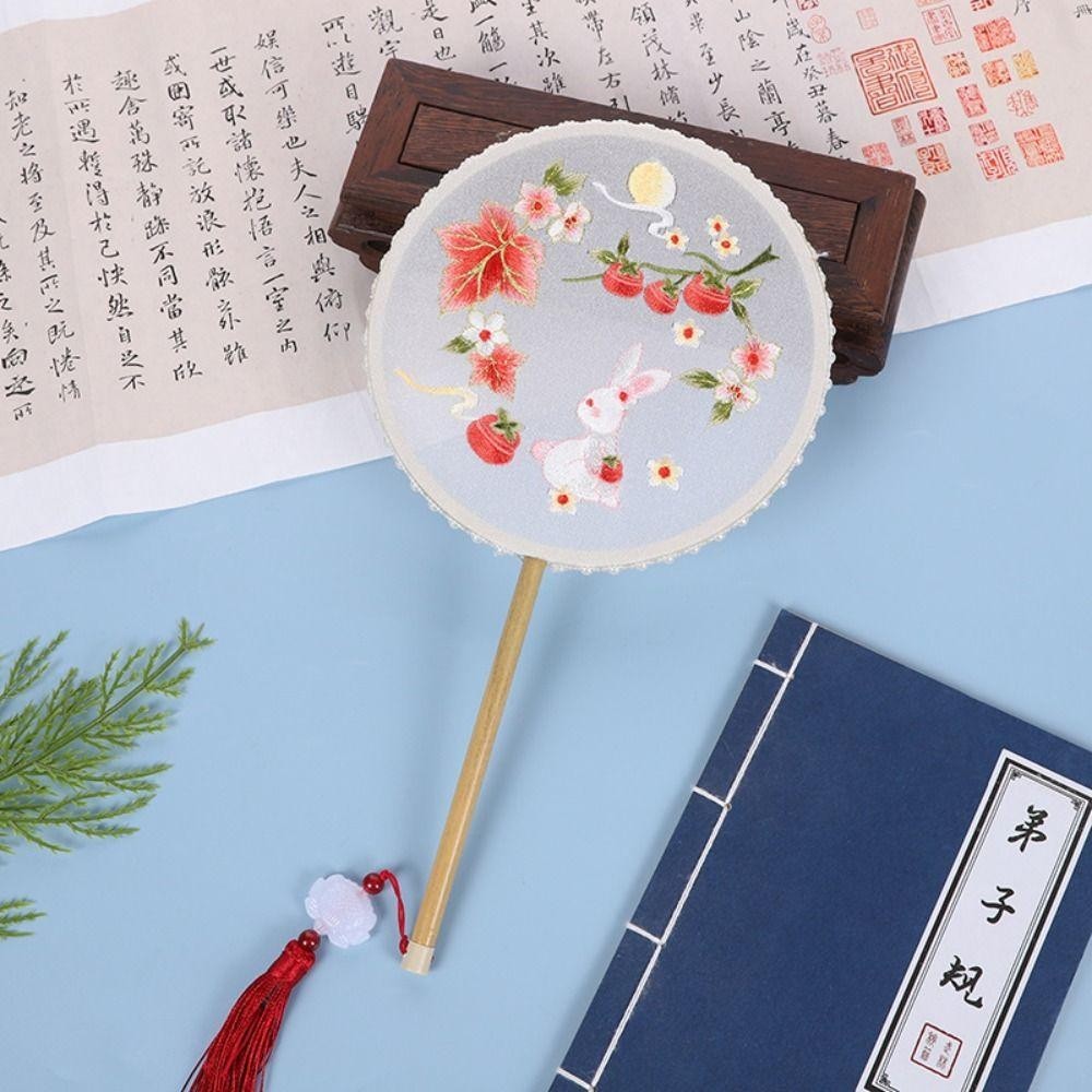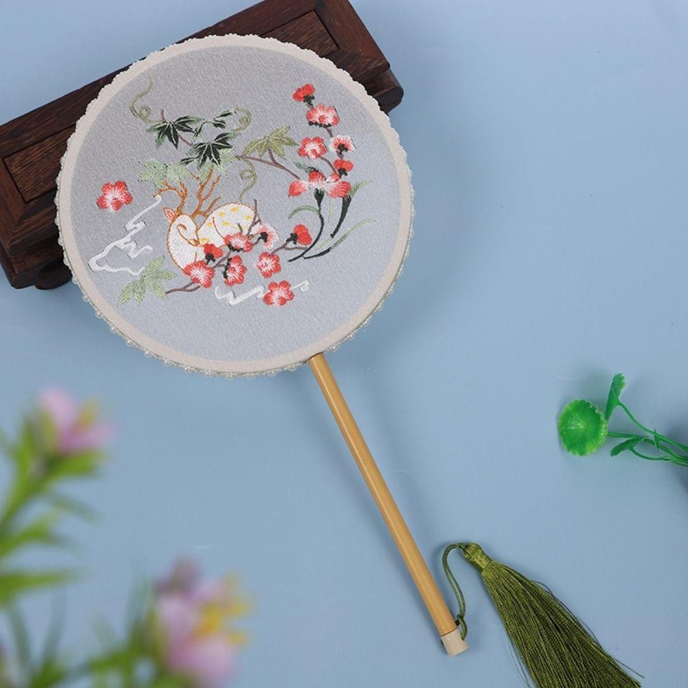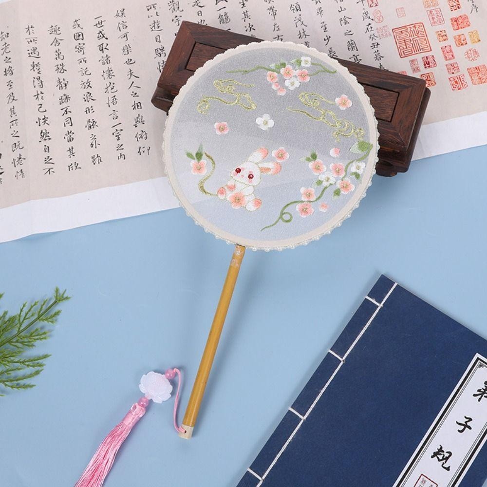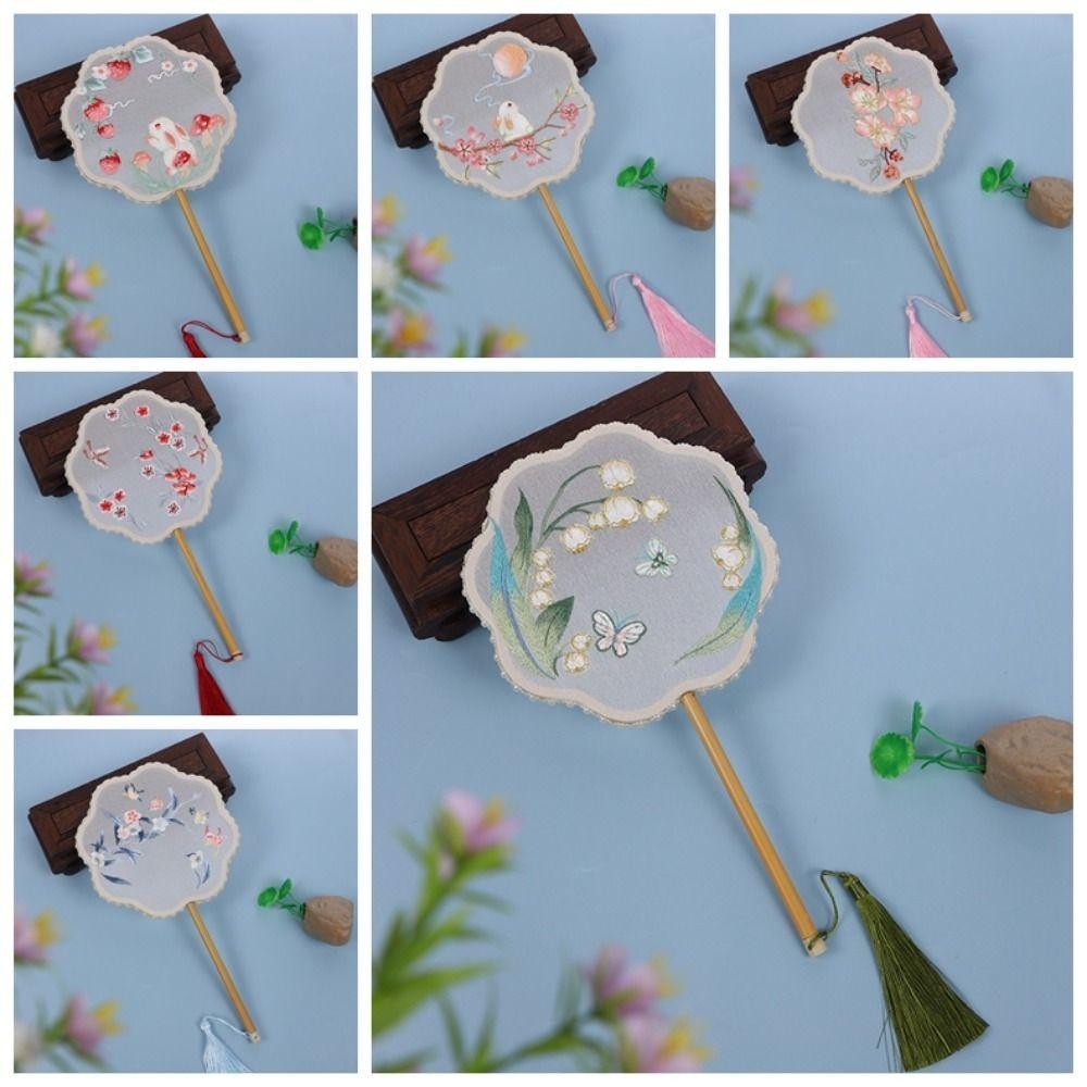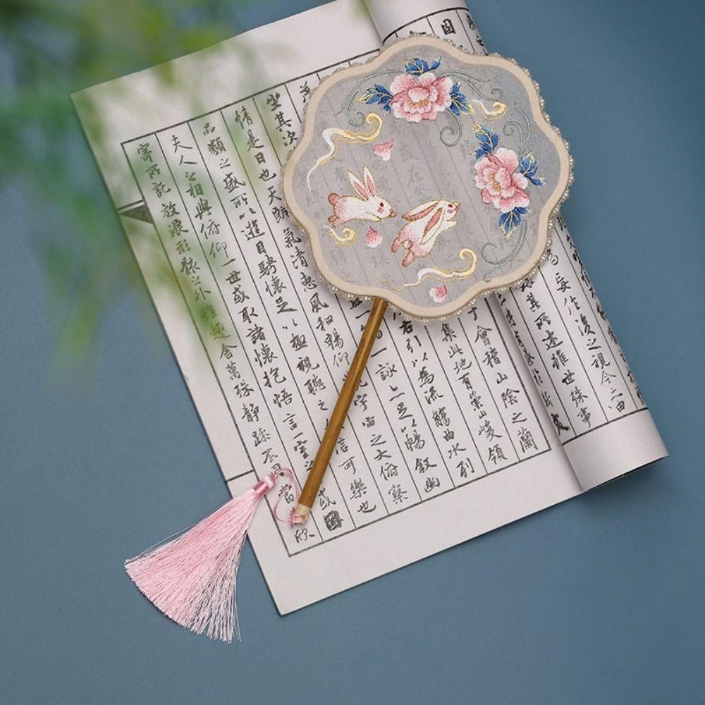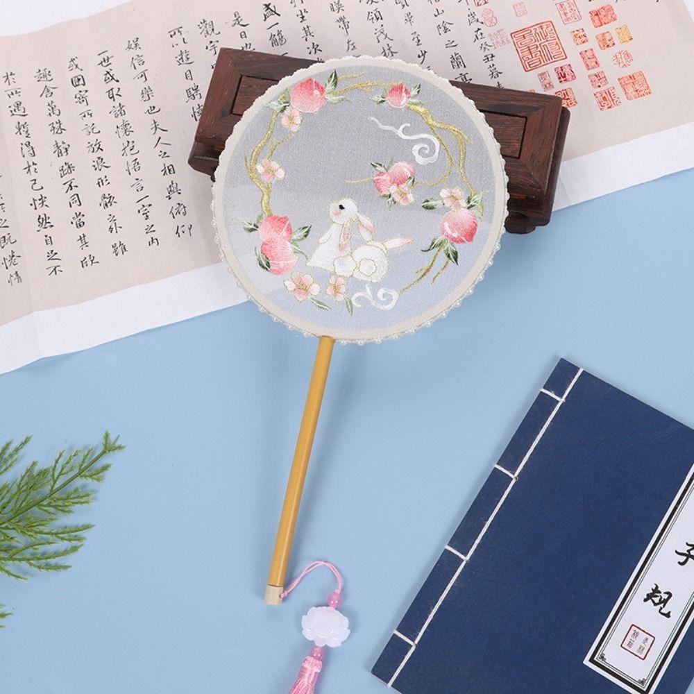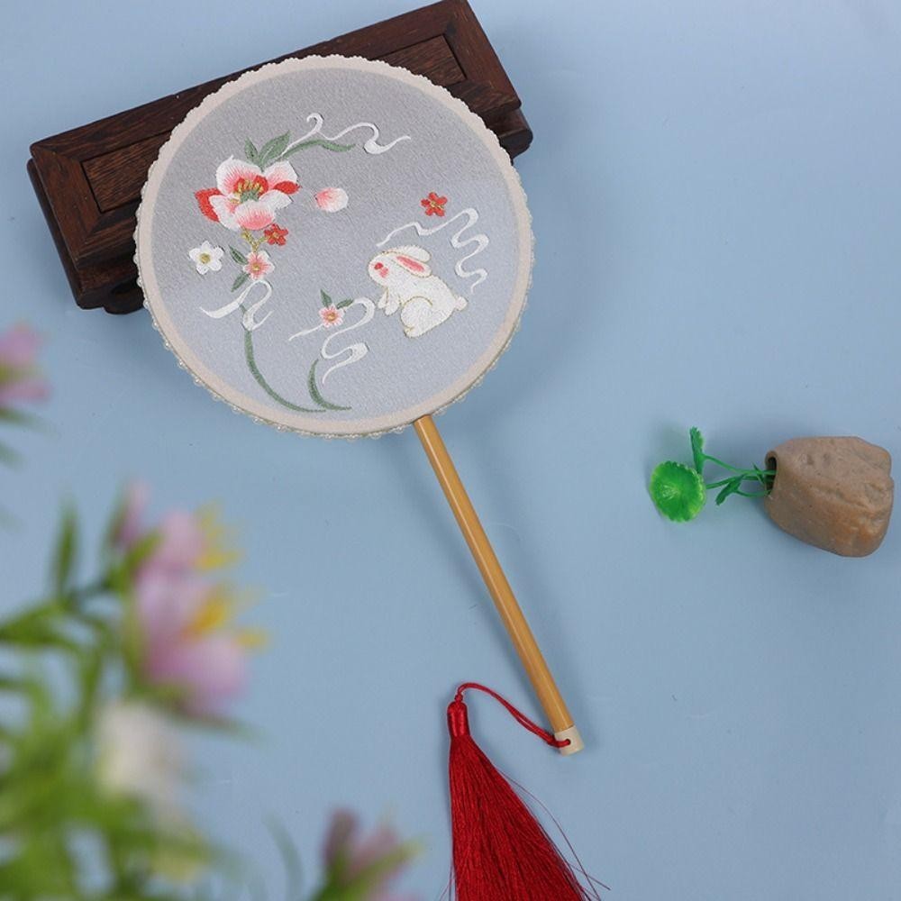 ประกายไฟ พัดลมทรงกลมพัดลมผ้าไหมกึ่งโปร่งใสคลาสสิกสไตล์จีนปักสองด้านด้วยพู่พัดลมมือแต่งงาน