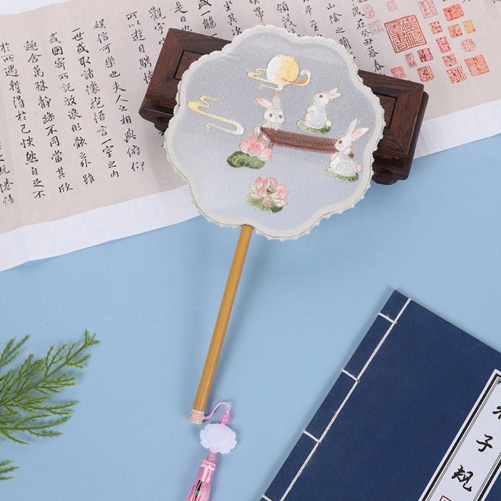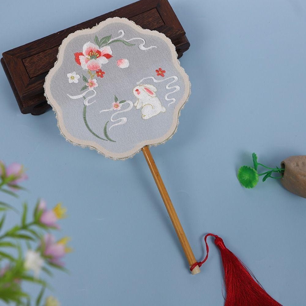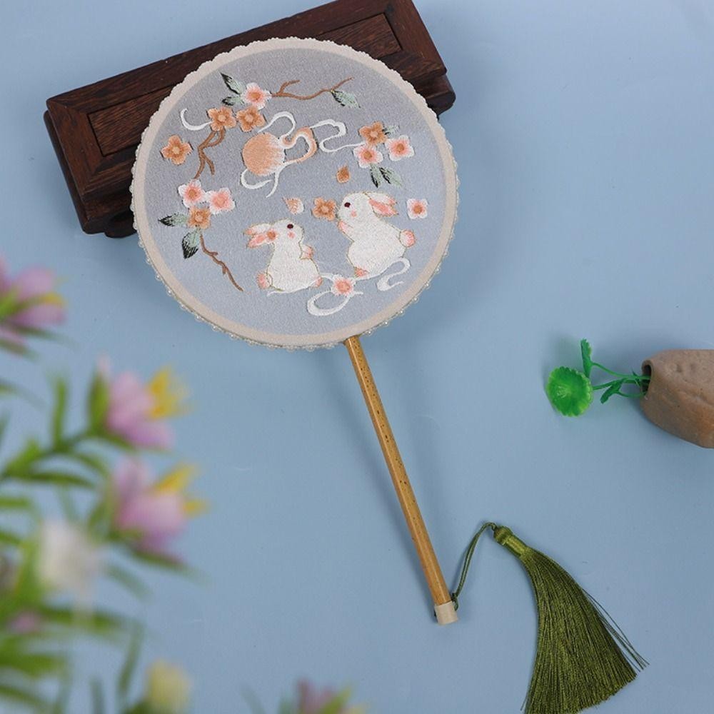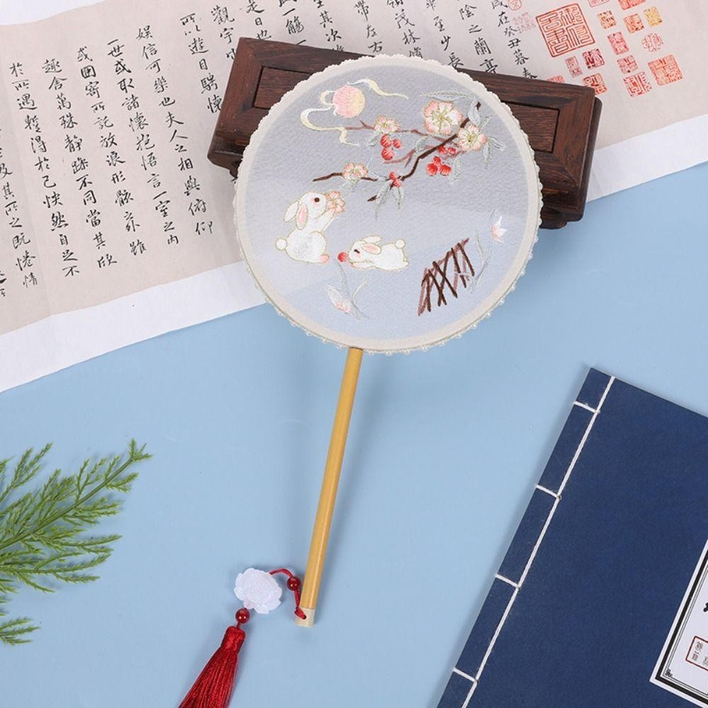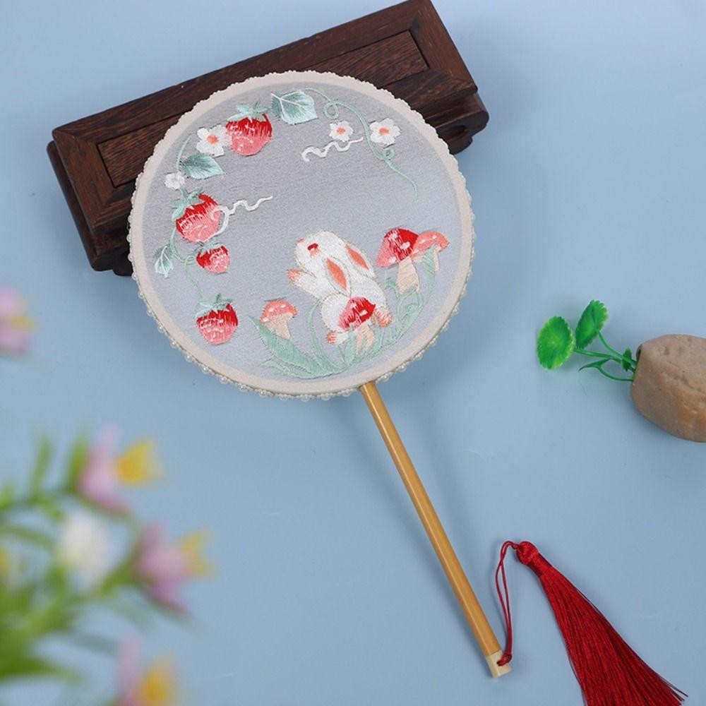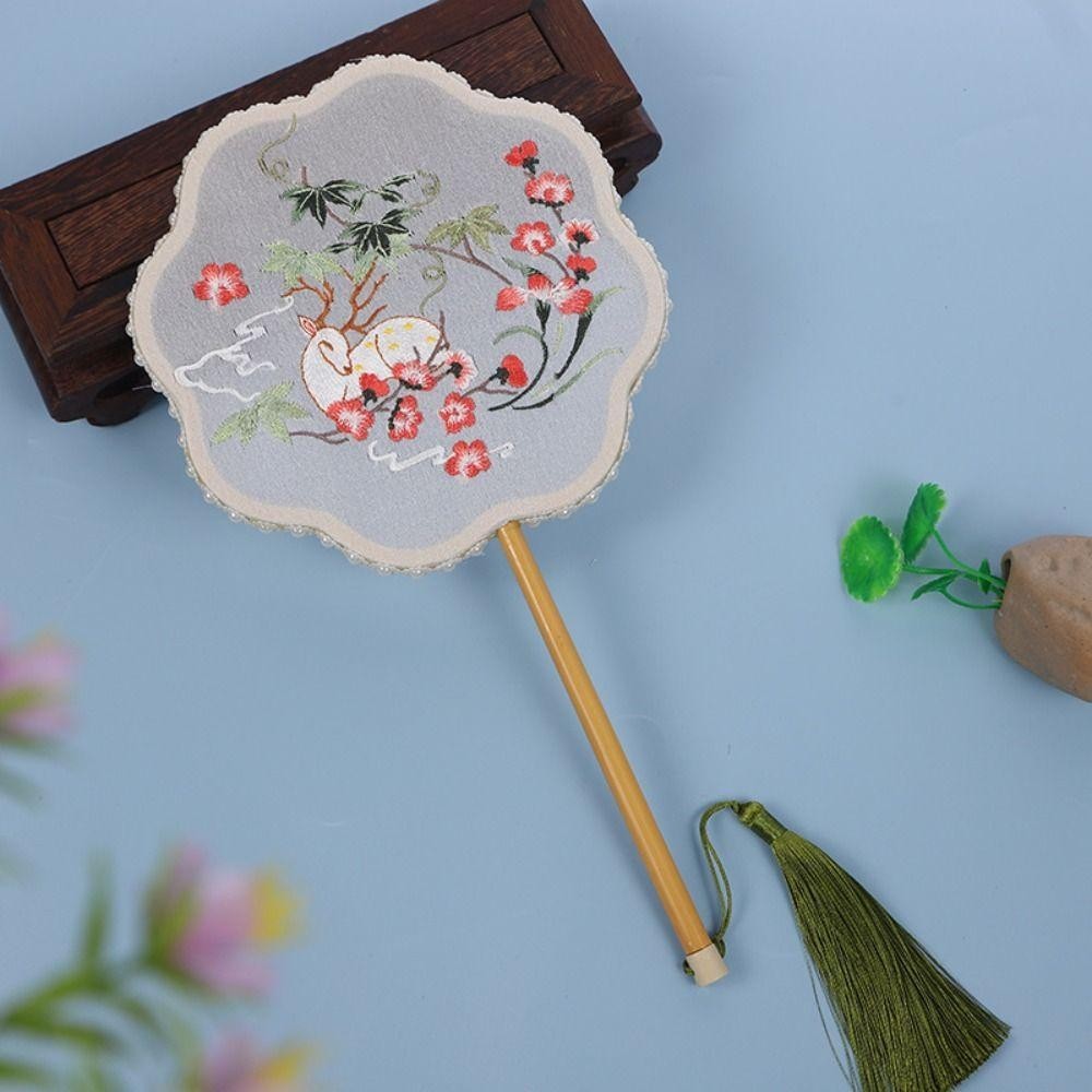 ประกายไฟ พัดลมทรงกลมพัดลมผ้าไหมกึ่งโปร่งใสคลาสสิกสไตล์จีนปักสองด้านด้วยพู่พัดลมมือแต่งงาน