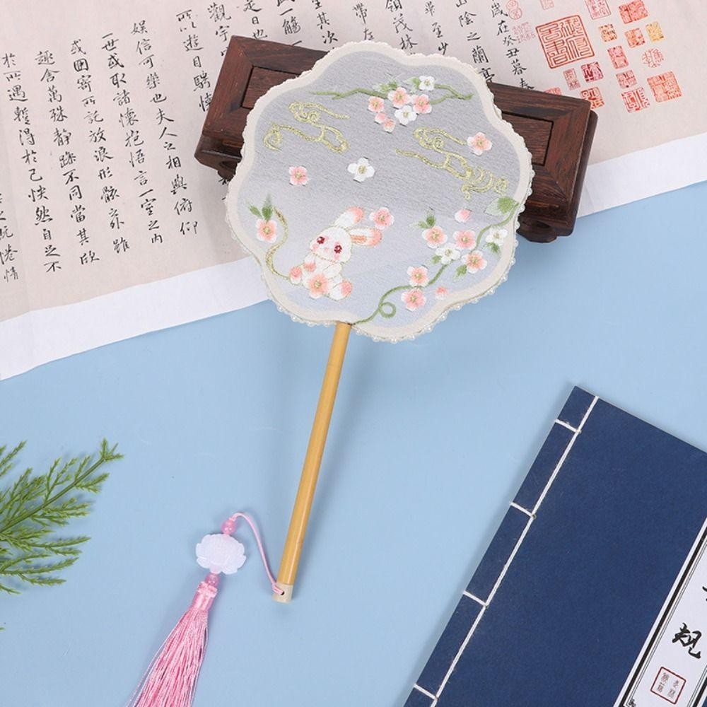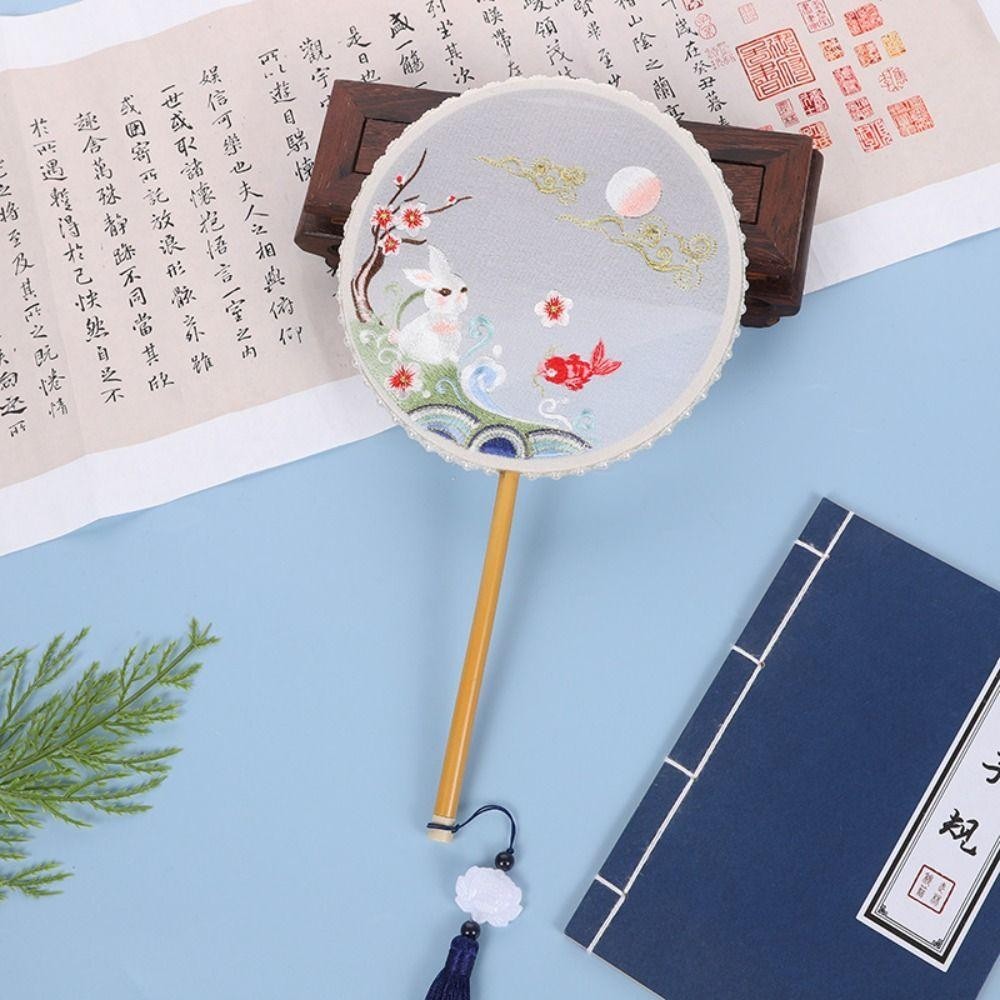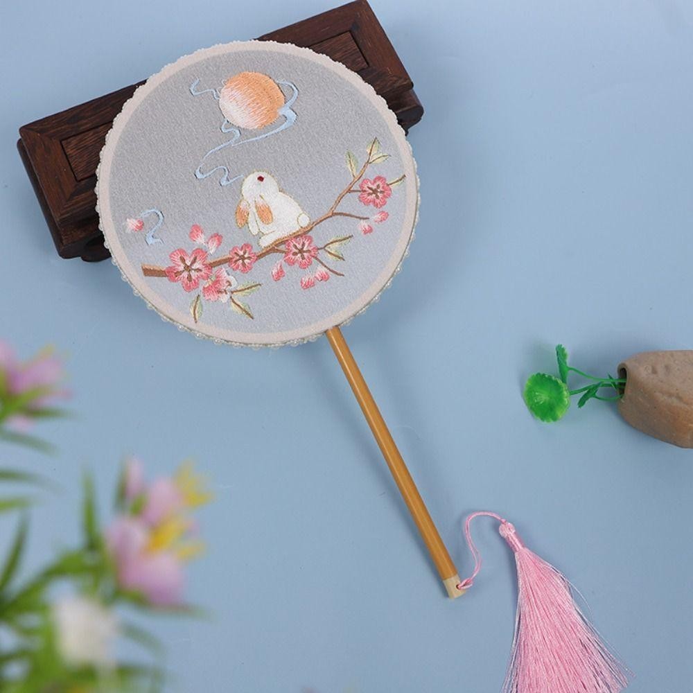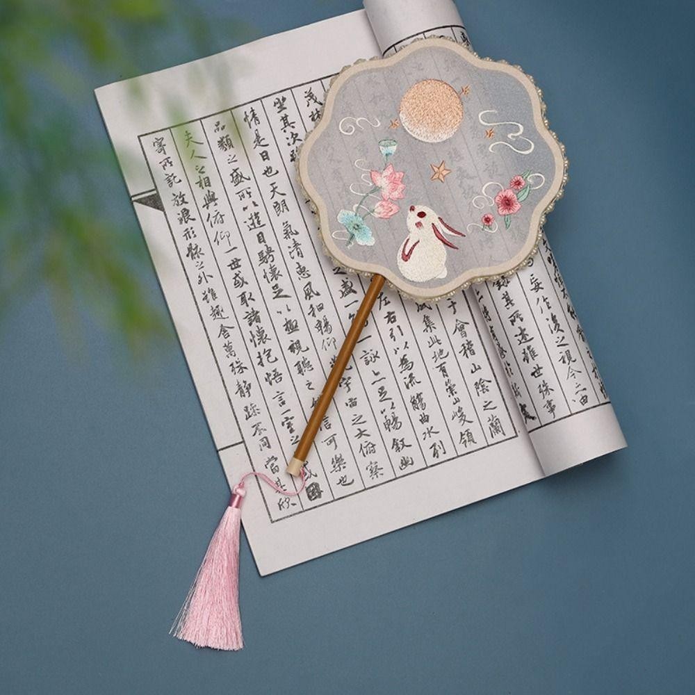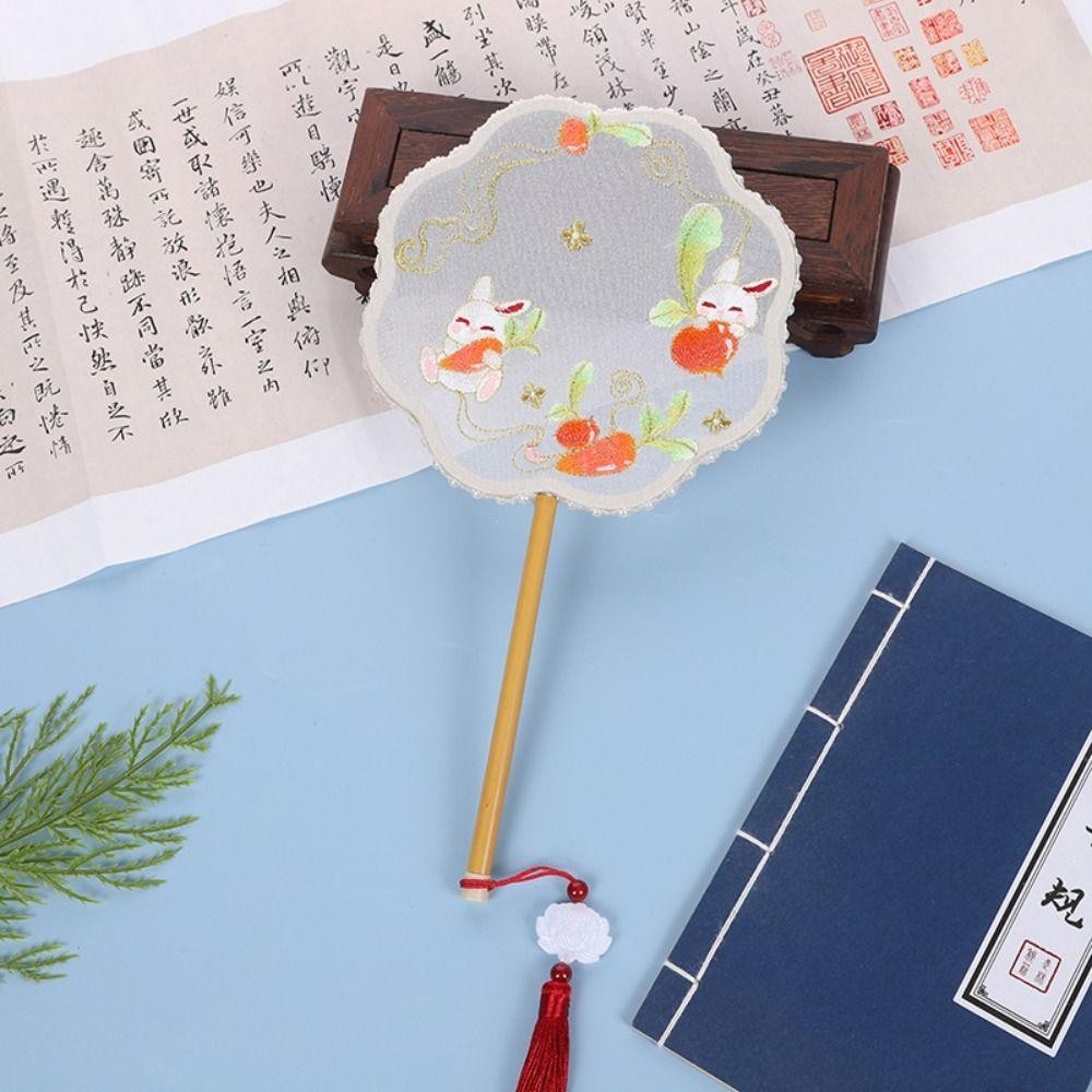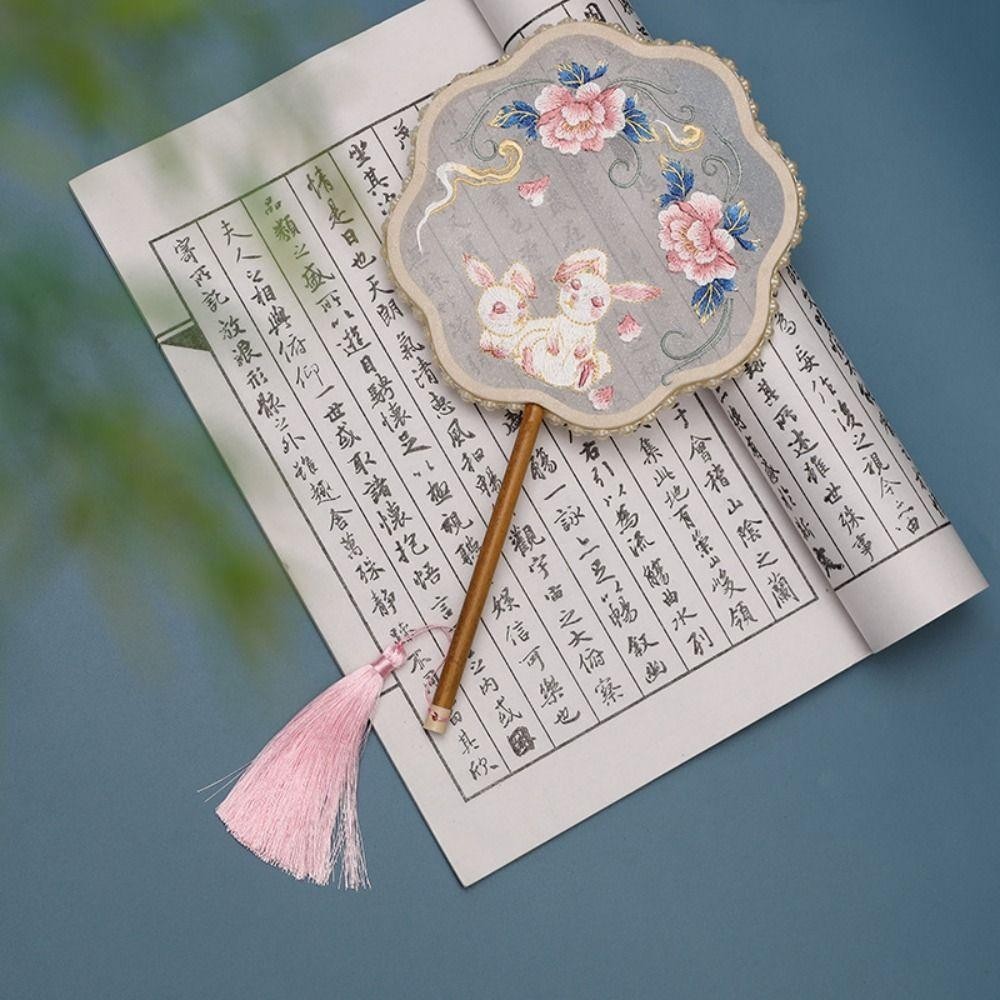 ประกายไฟ พัดลมทรงกลมพัดลมผ้าไหมกึ่งโปร่งใสคลาสสิกสไตล์จีนปักสองด้านด้วยพู่พัดลมมือแต่งงาน