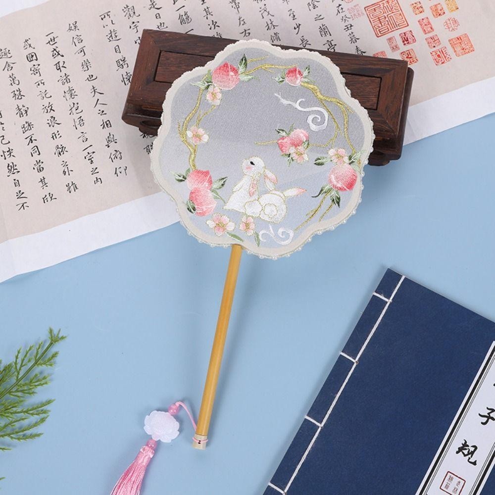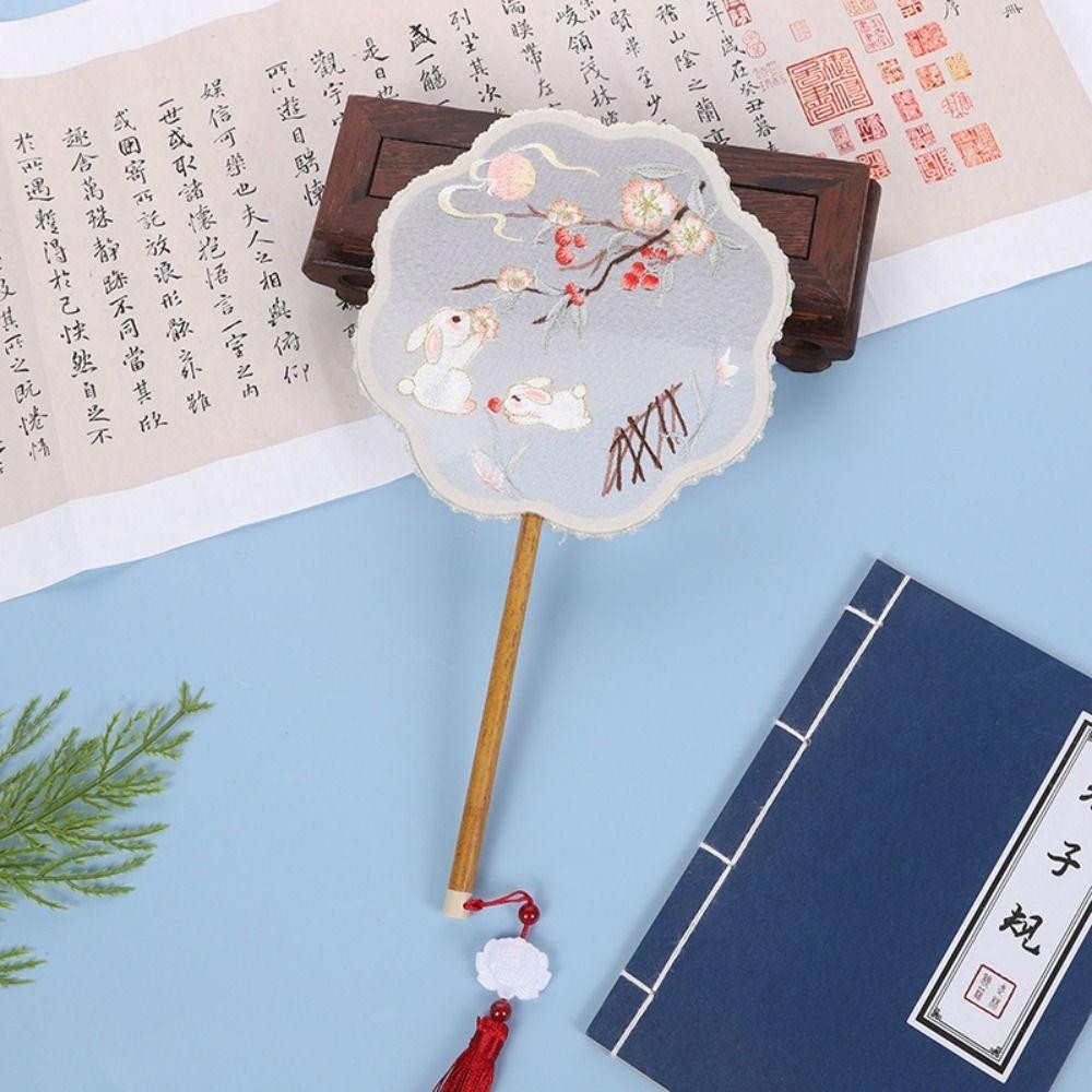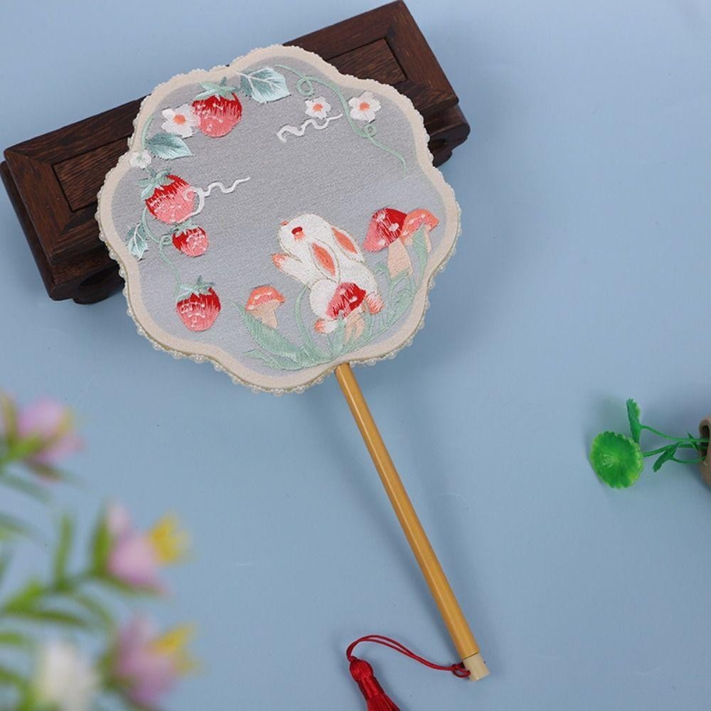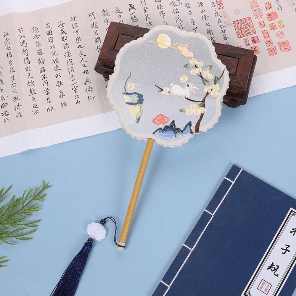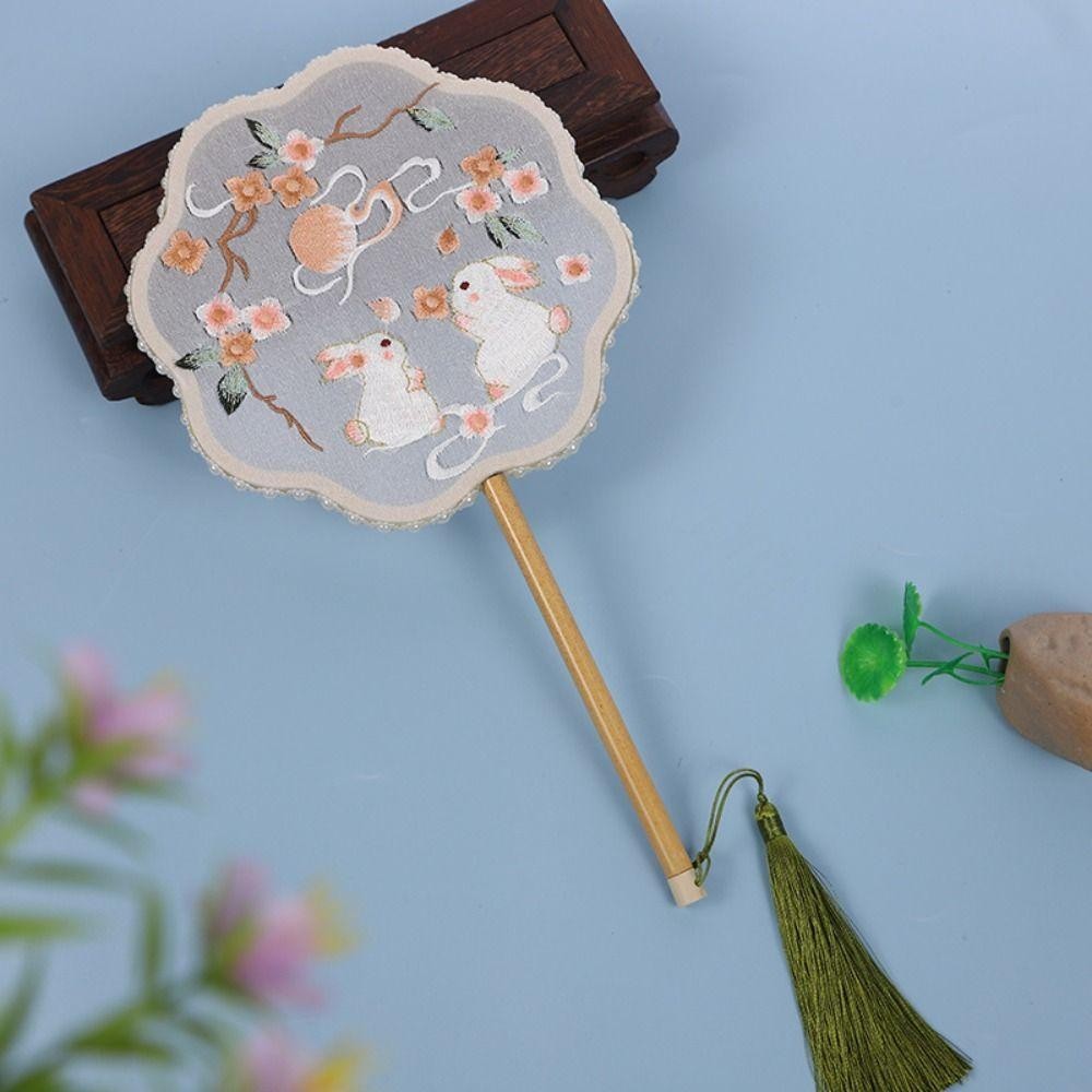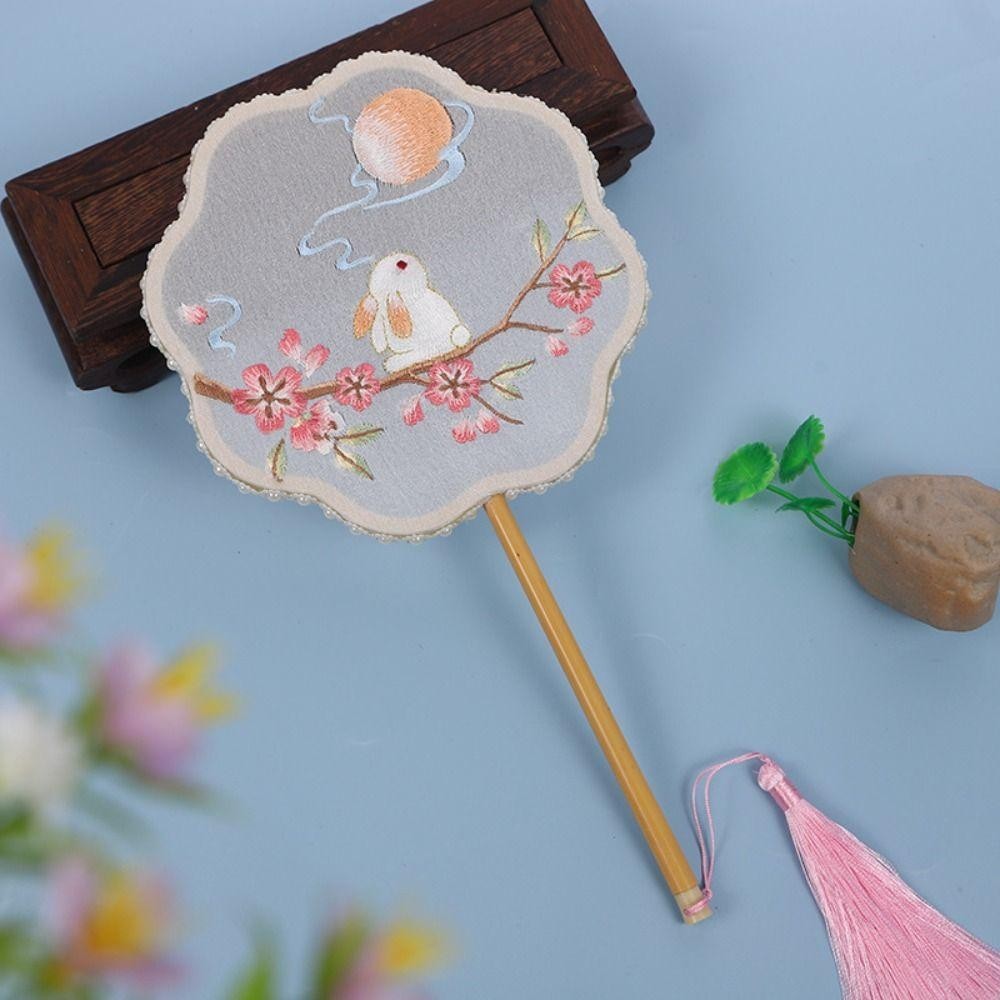 ประกายไฟ พัดลมทรงกลมพัดลมผ้าไหมกึ่งโปร่งใสคลาสสิกสไตล์จีนปักสองด้านด้วยพู่พัดลมมือแต่งงาน