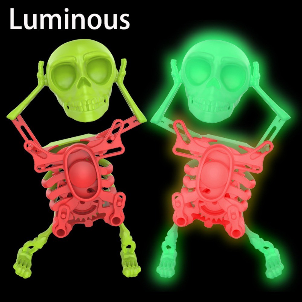 มาสมีโต ของเล่นกะโหลกเต้นและแกว่งมีไฟ โครงกระดูกเต้นรําเรืองแสงบรรเทาความเครียด โครงกระดูกยืดหยุ่นแบบประกบพร้อมดนตรีไขลานโครงกระดูก