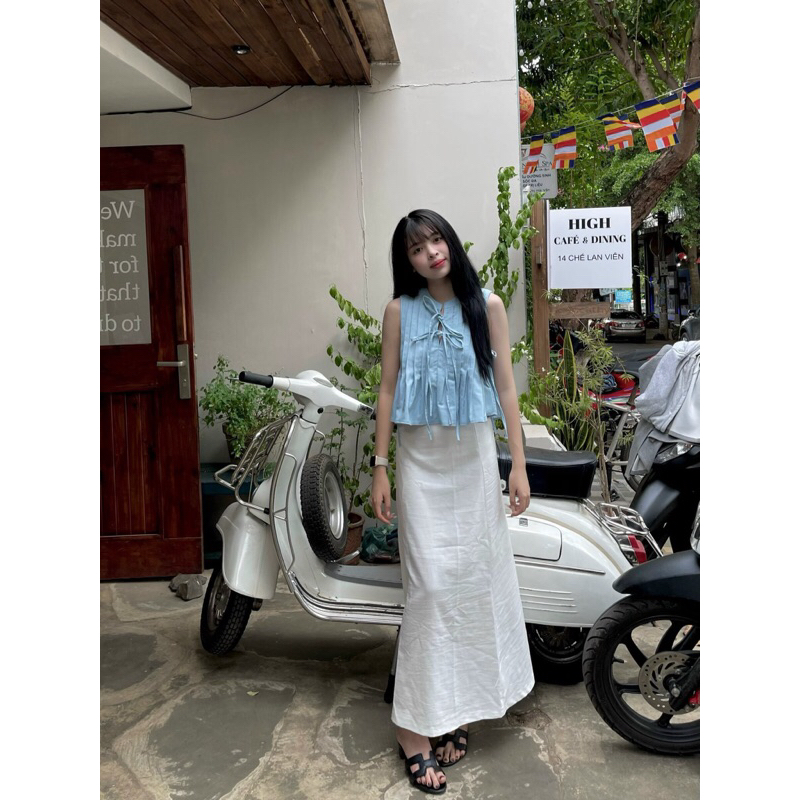 - เสื้อครอปจีบผ้าลินินพร้อมชุดโบว์สําหรับวันซัมเมอร์ - รูปร้านค้า [บ้านวันพีช]