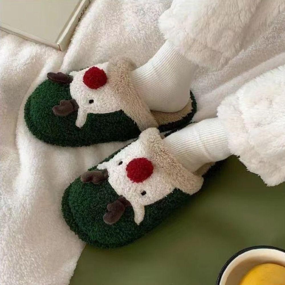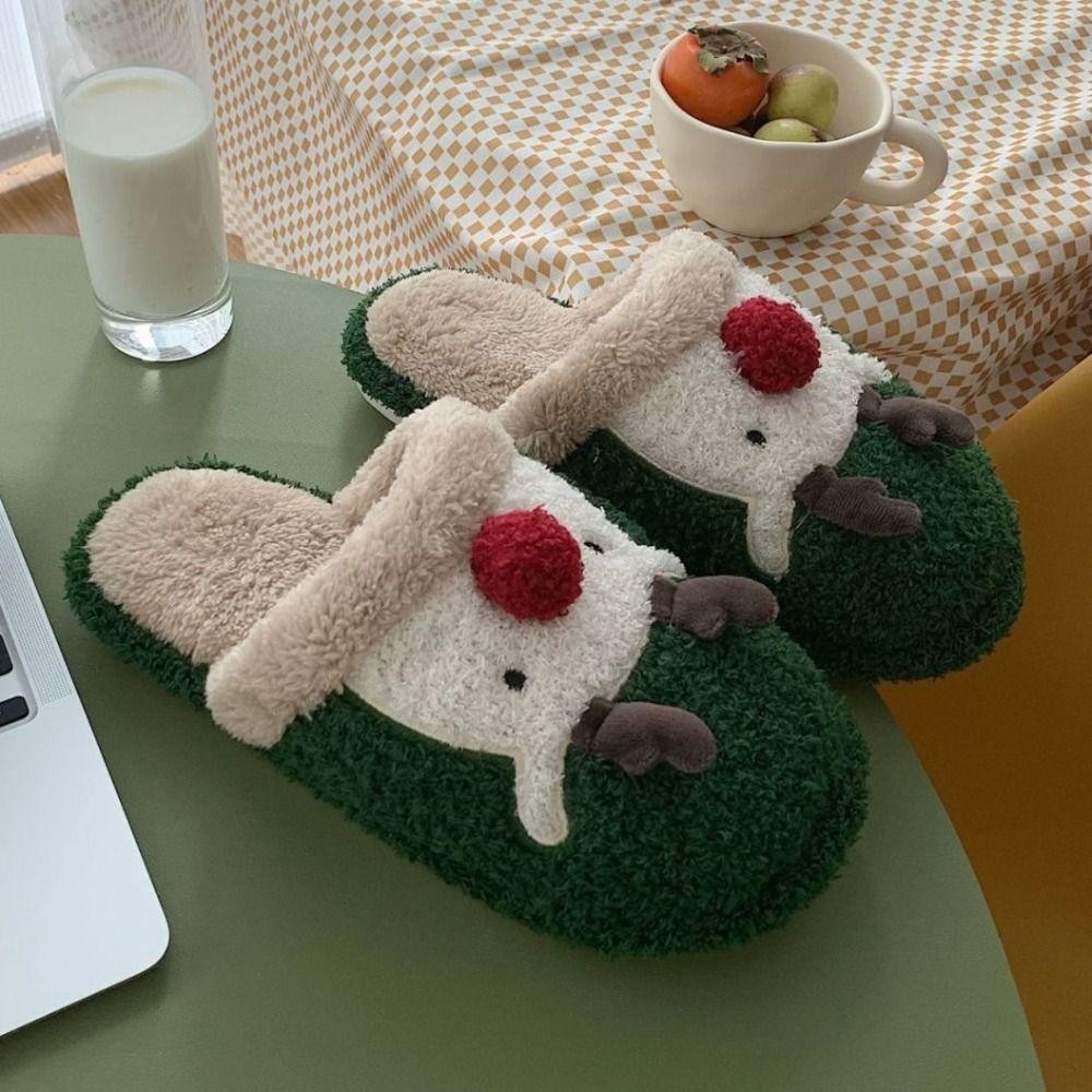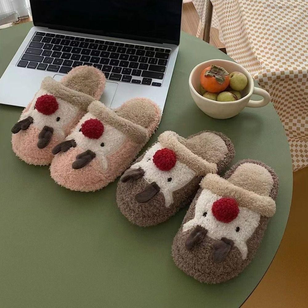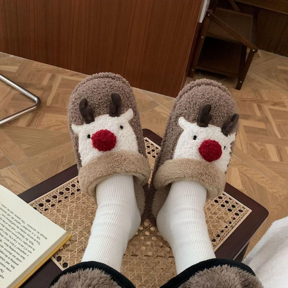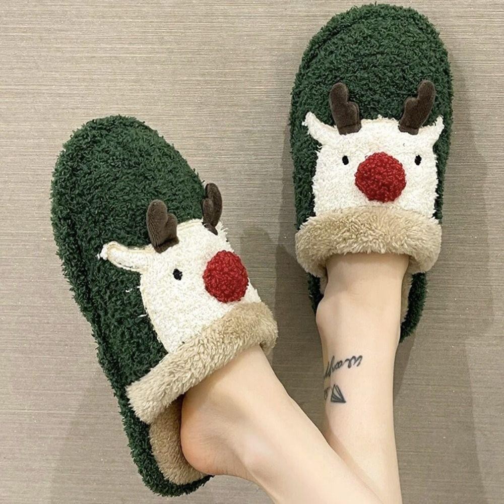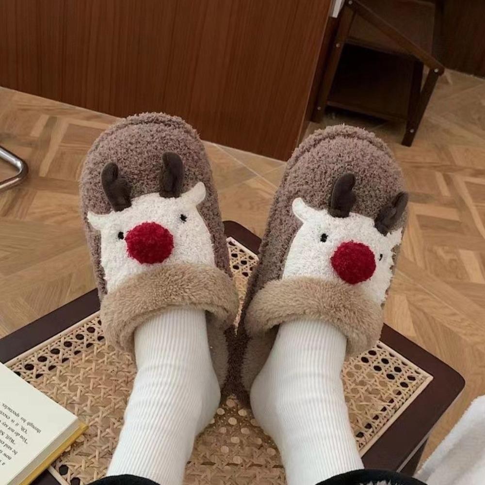 รองเท้าแตะตุ๊กตาคริสต์มาส สไตล์กวางเอลก์ ออกแบบเพื่อให้อบอุ่นและปลอดภัยในการใช้งานภายในบ้าน